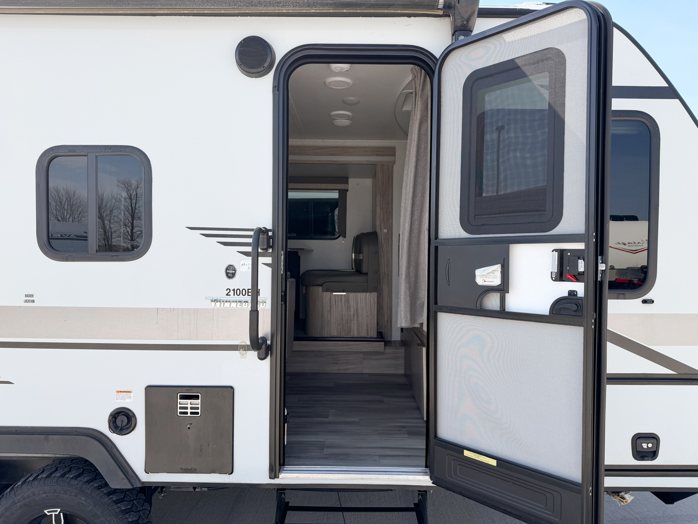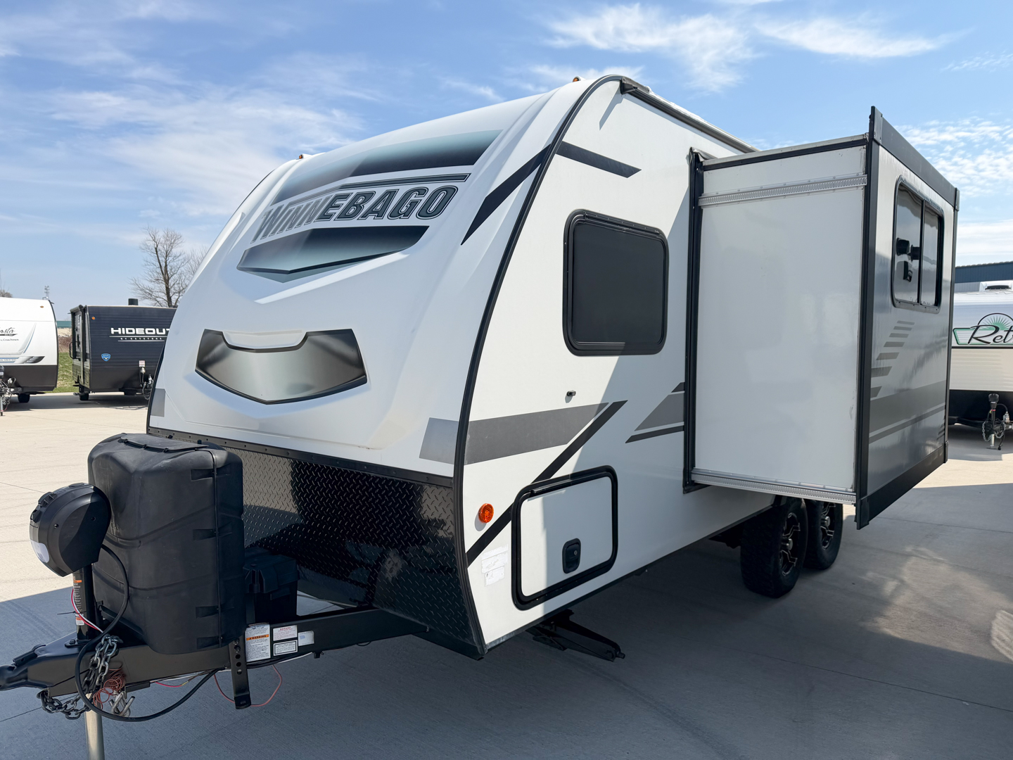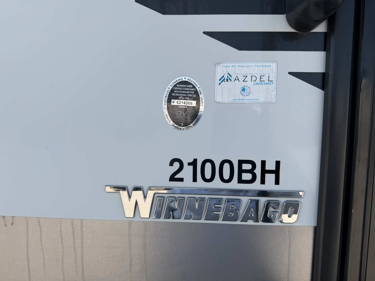 - The 2021 Winnebago Micro Minnie 2100BH is a lightweight, 21-foot 11-inch compact bunkhouse travel trailer designed for families, typically sleeping 5–6 people. It features a dry weight around 3,860–4,300 lbs, a 7-foot width, and a single slide-out, making it easily towable by many SUVs while offering a full rear bath.