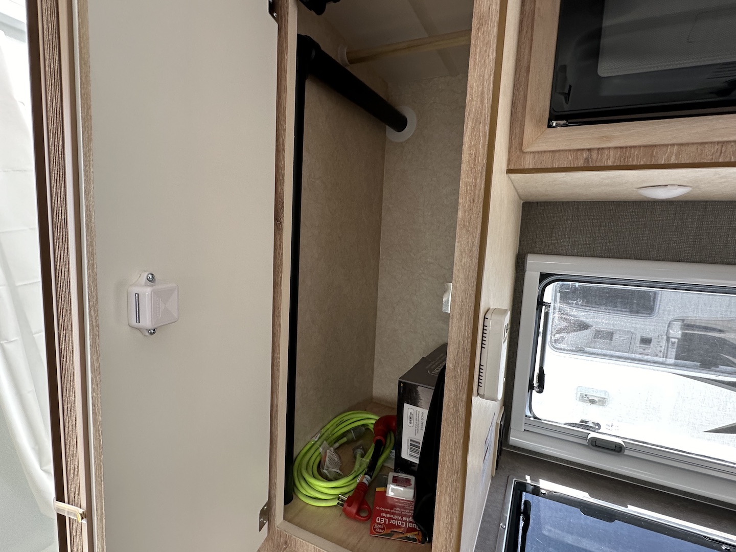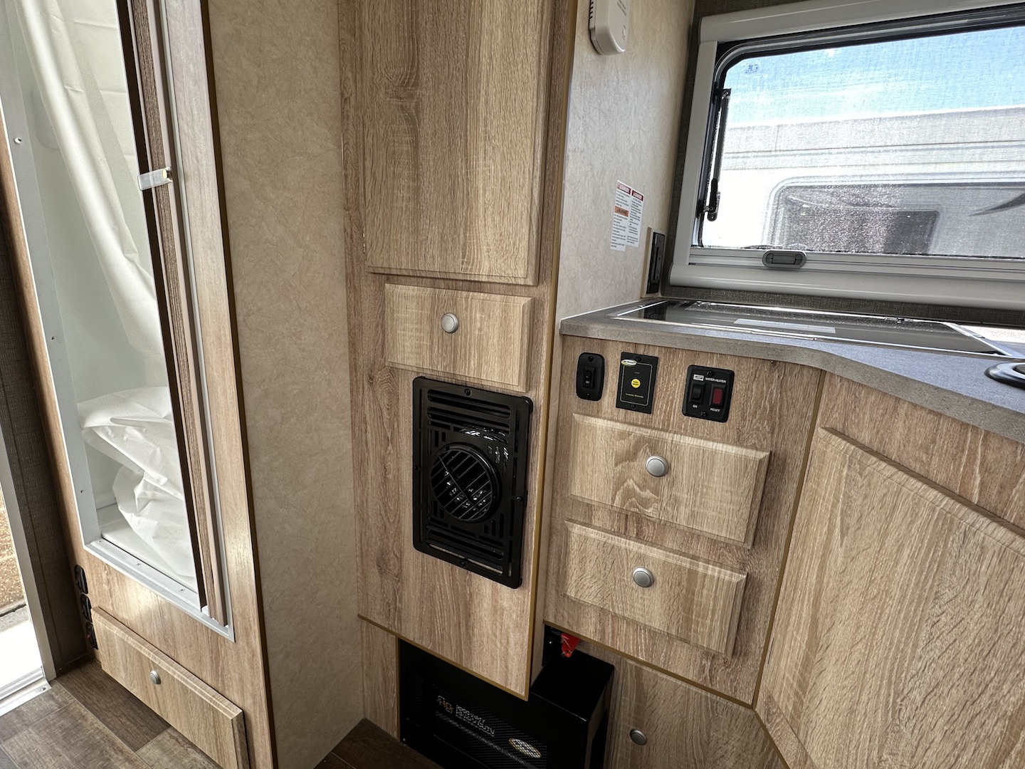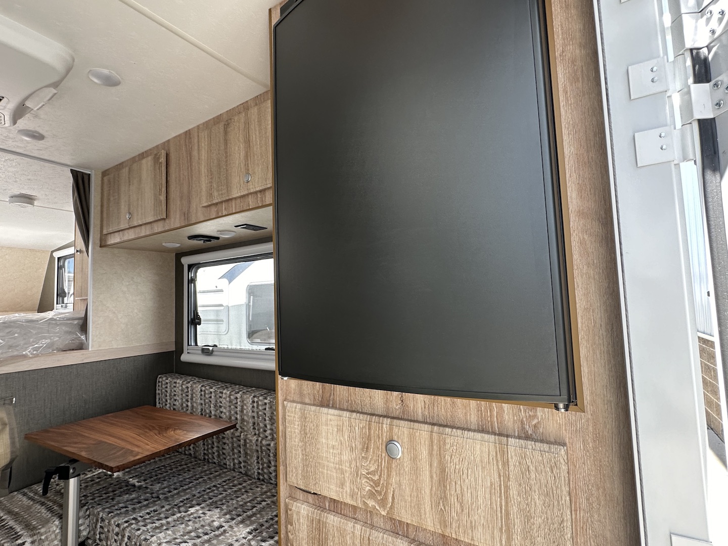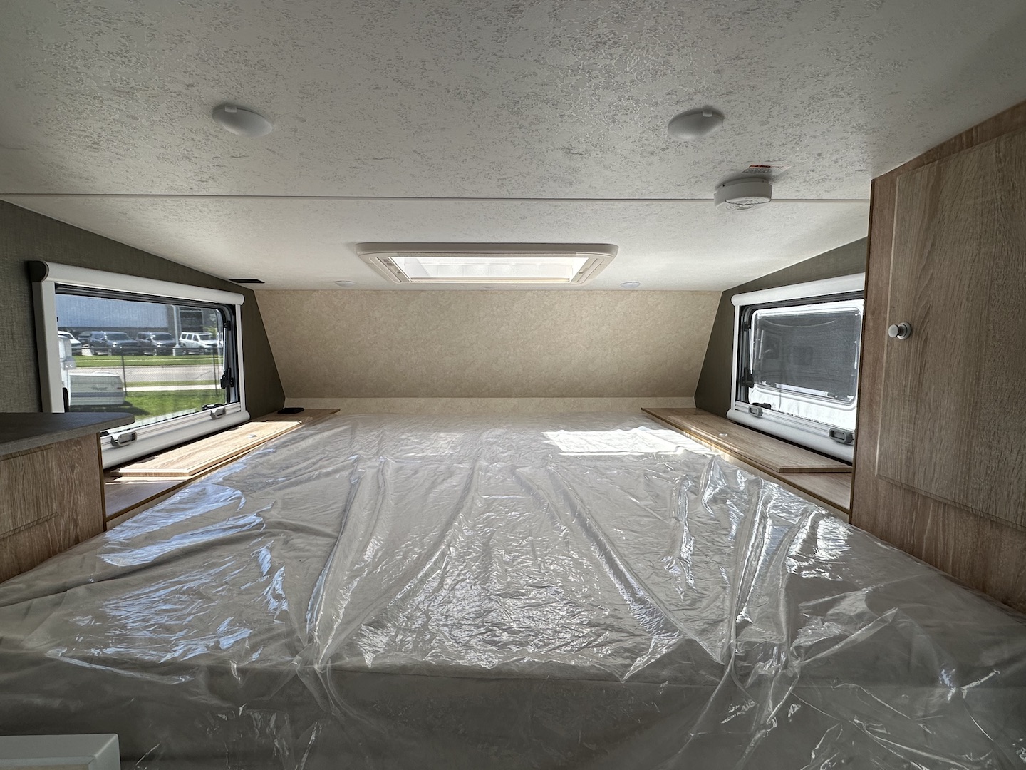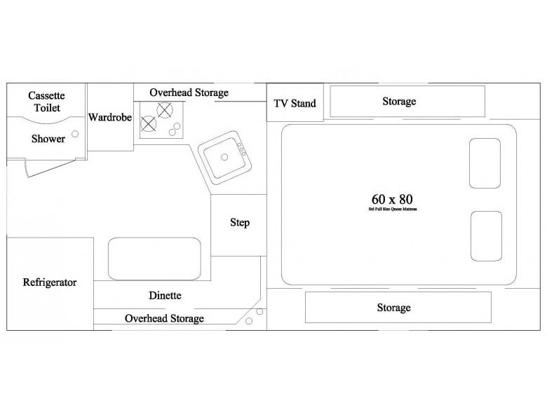 With a dry weight std. build of 1775 lbs. and floor length of 7′ this camper is designed to fit the ultra short beds (5′ 6″ to 5’ 10”) & Standard short beds (6′ 4″ to 6′ 10″) of 1/2 ton and larger full size trucks. Despite its compact size it still has many of the standard features of the larger Laredo SC & Wind Bandit, including extended cabover with a Queen sized 60” x 80” bed, insulated windows, auto ignition water heater, cassette toilet, interior/exterior shower and LED lighting to name but a few.