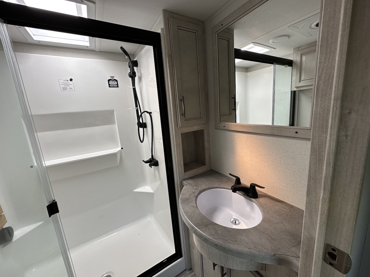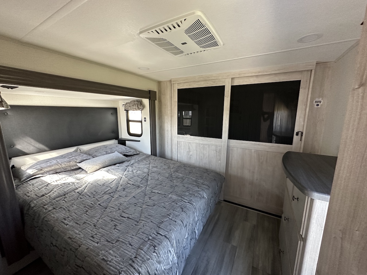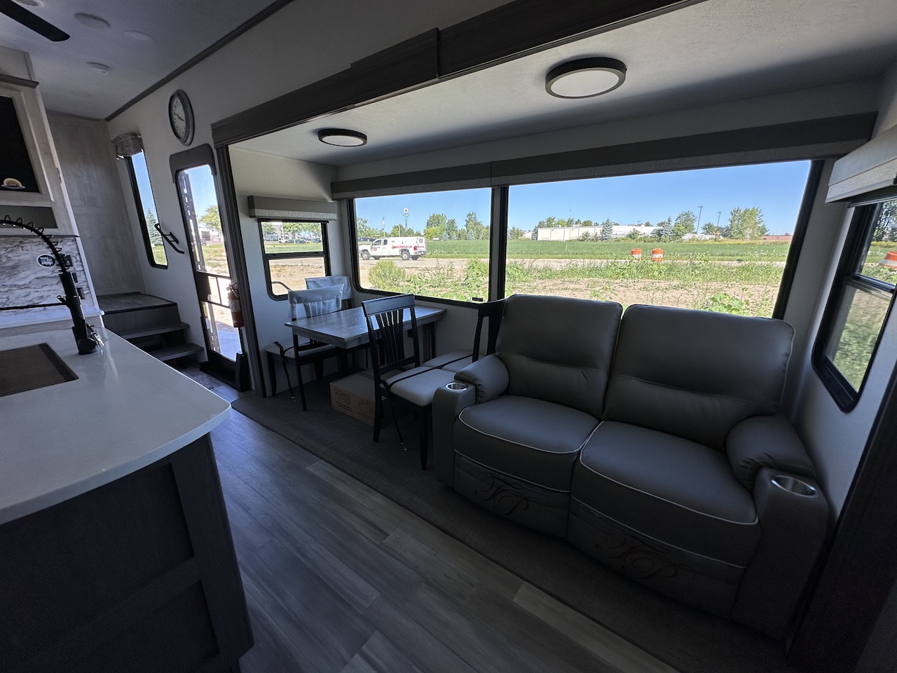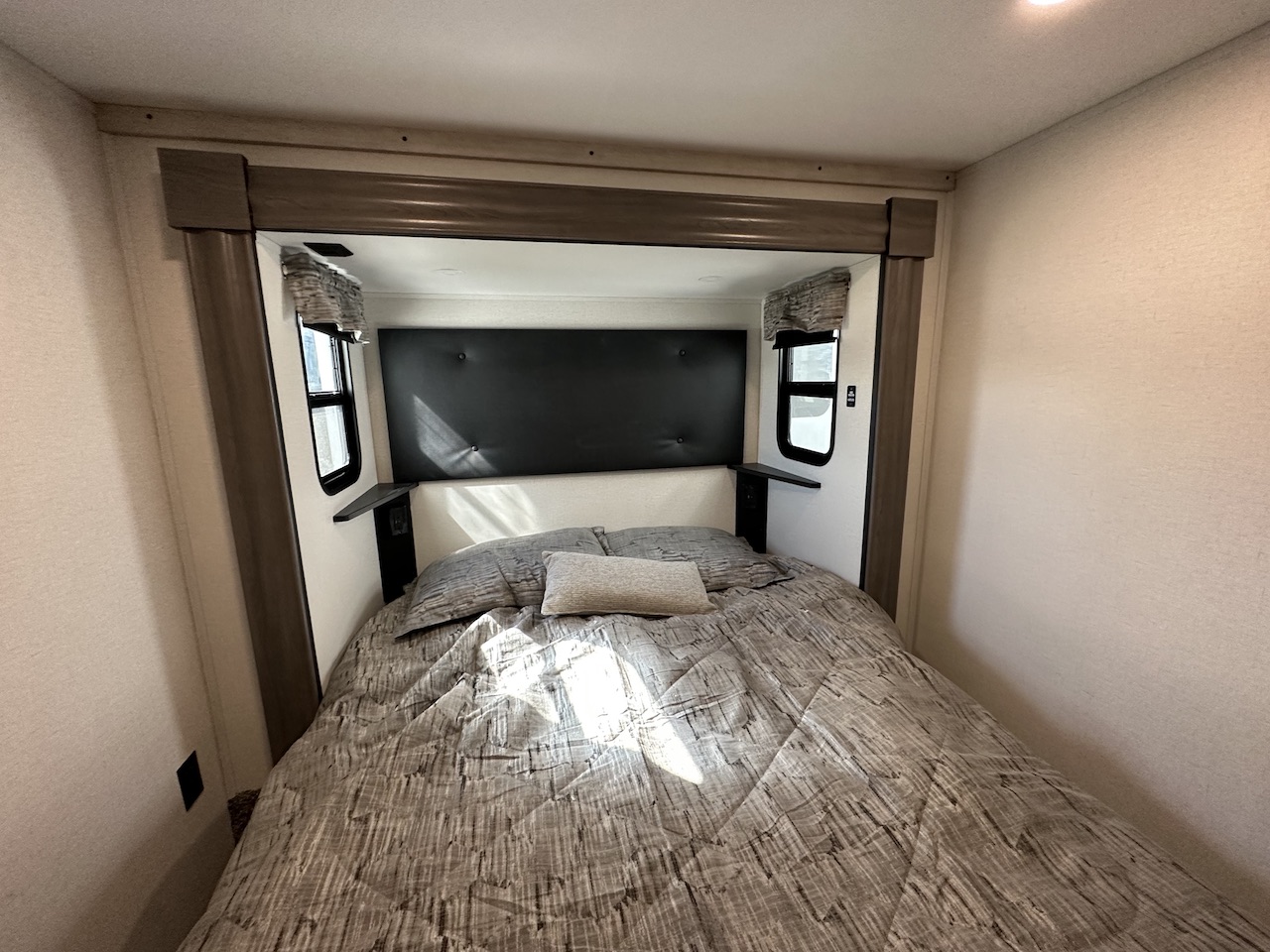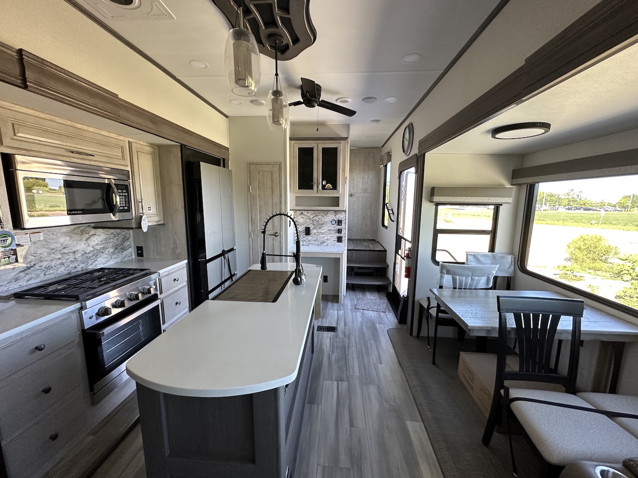 The 4002FB is a double queen bed and loft coach. With 4 slideouts and a double bunk loft, this floorplan has enough sleeping space for whoever wants to tag along. Rear entry into the 2nd full bath will offer full amenities without cluttering or using the master bath. The island kitchen and theater seating provide a great space to entertain and unwind. The 4002FB is extremely versatile, utilizing the extra bedroom or loft for storage when the sleeping space isn’t needed.