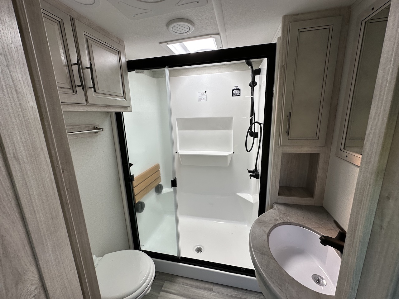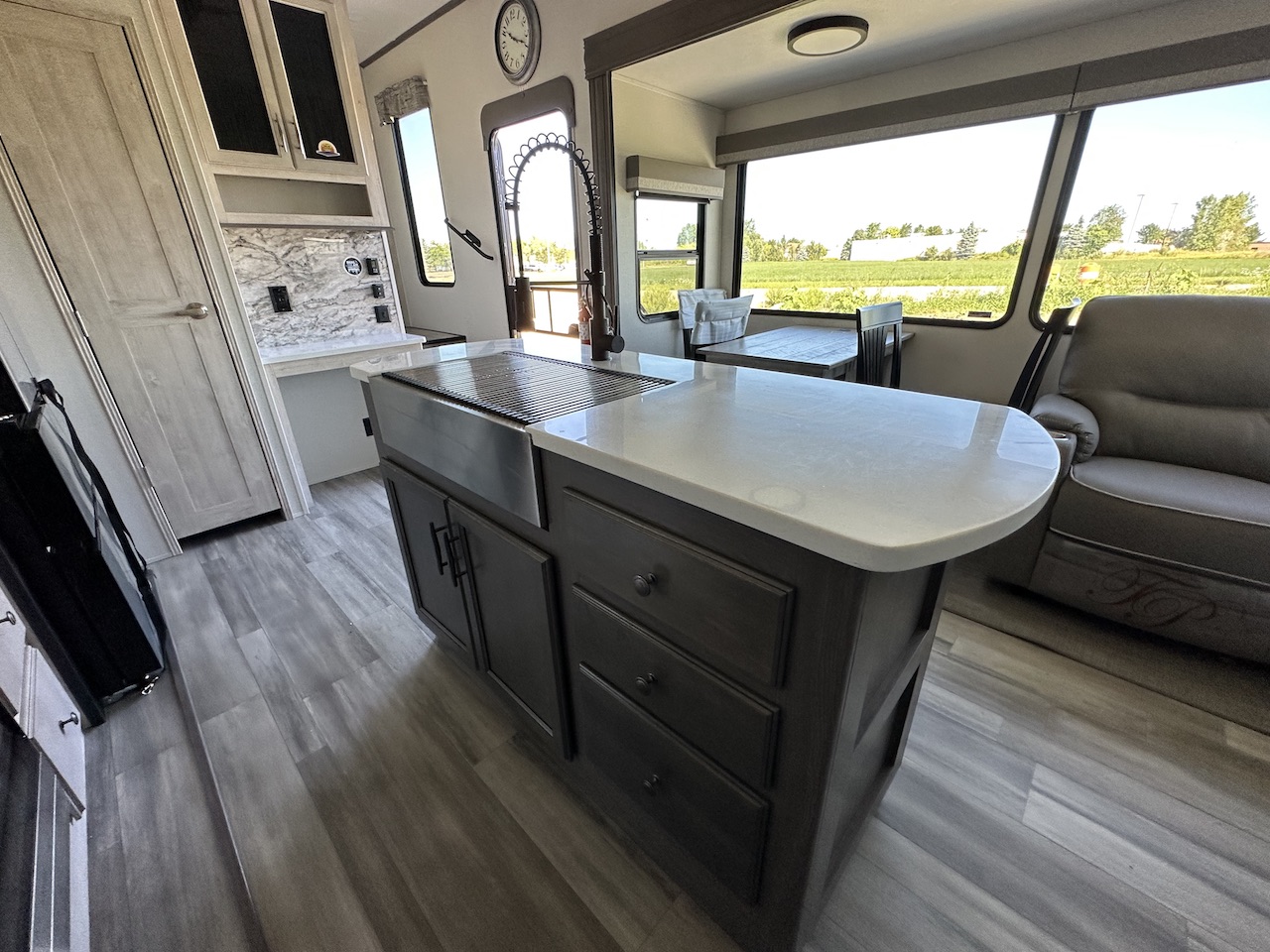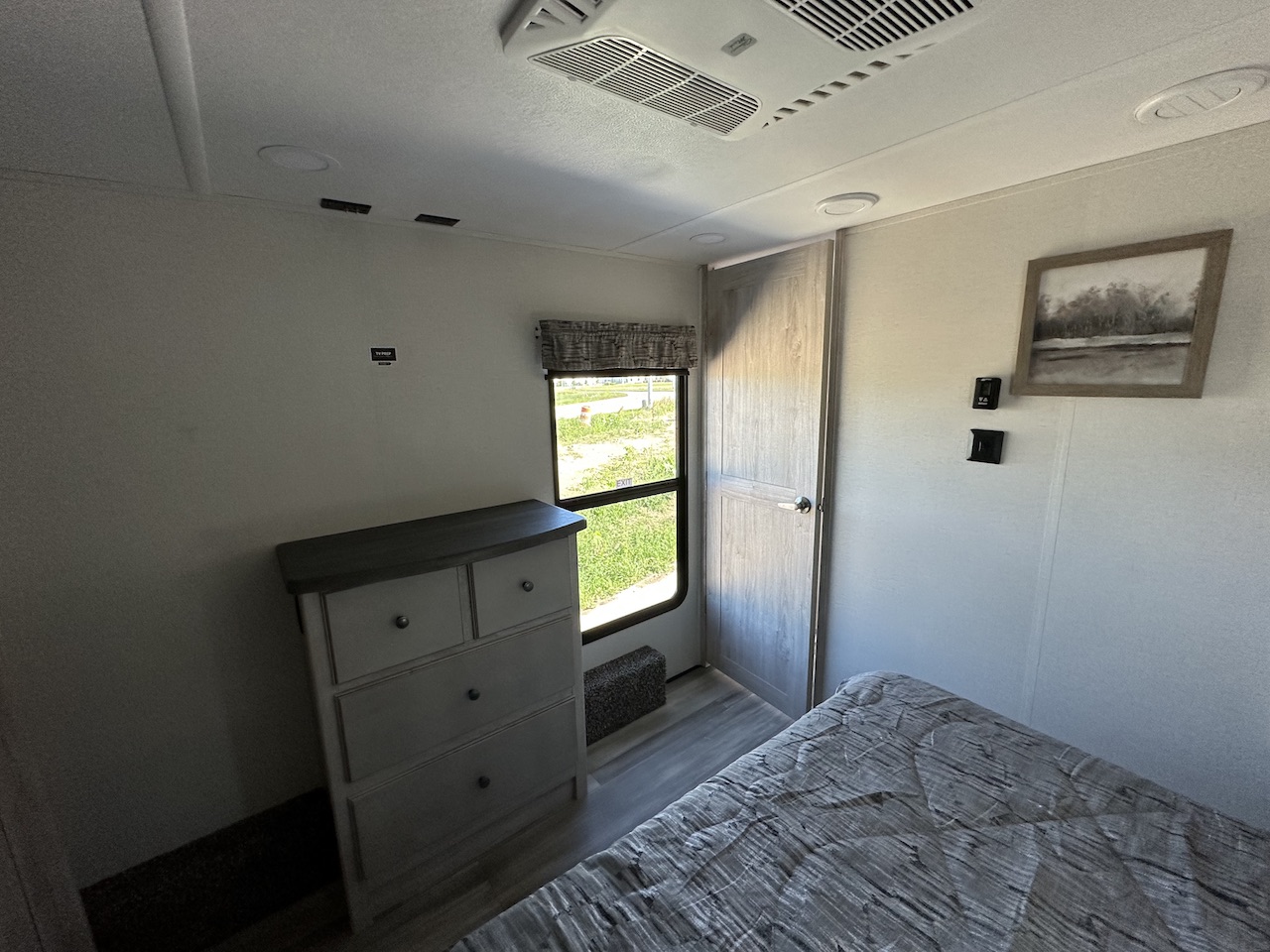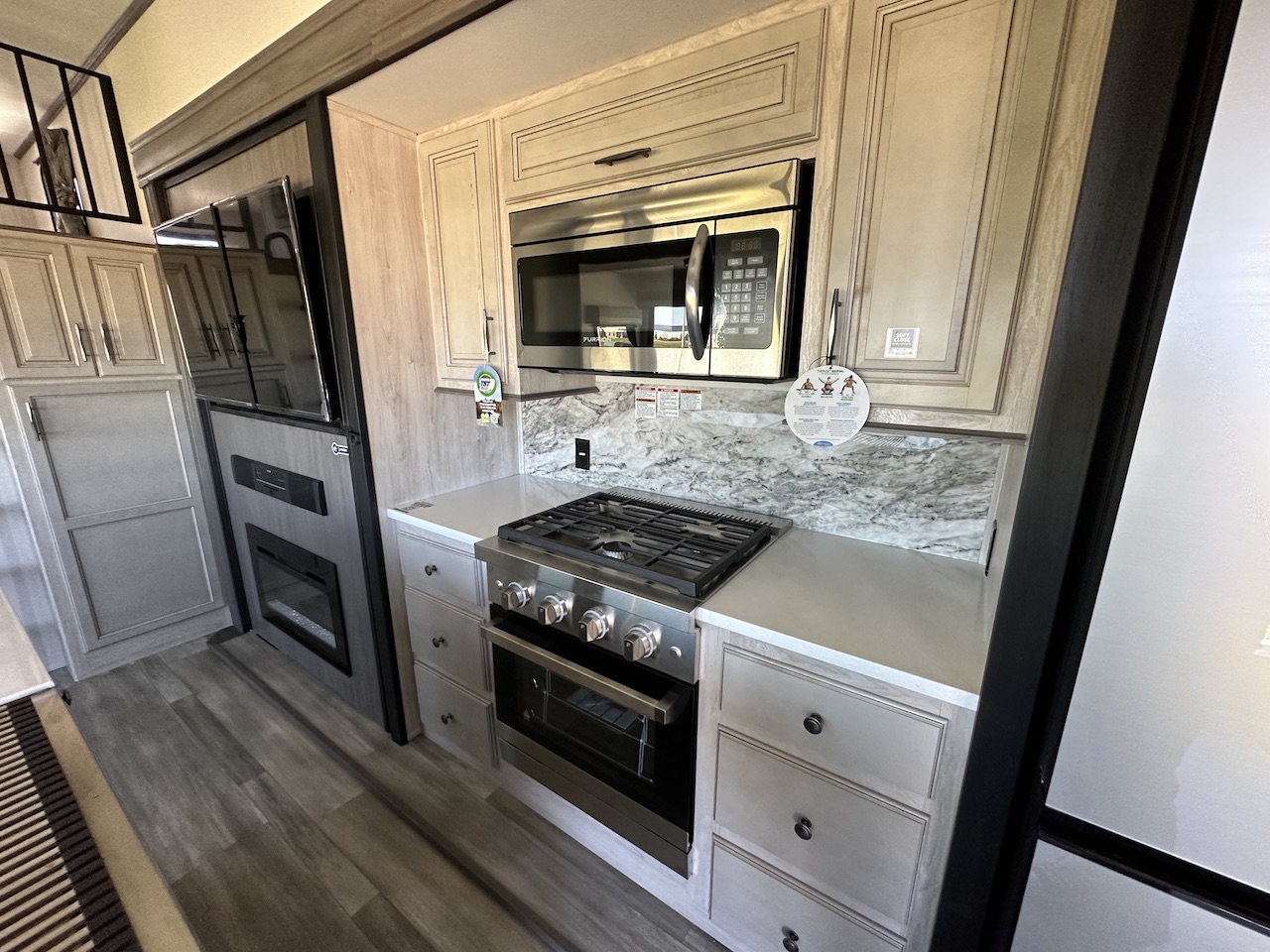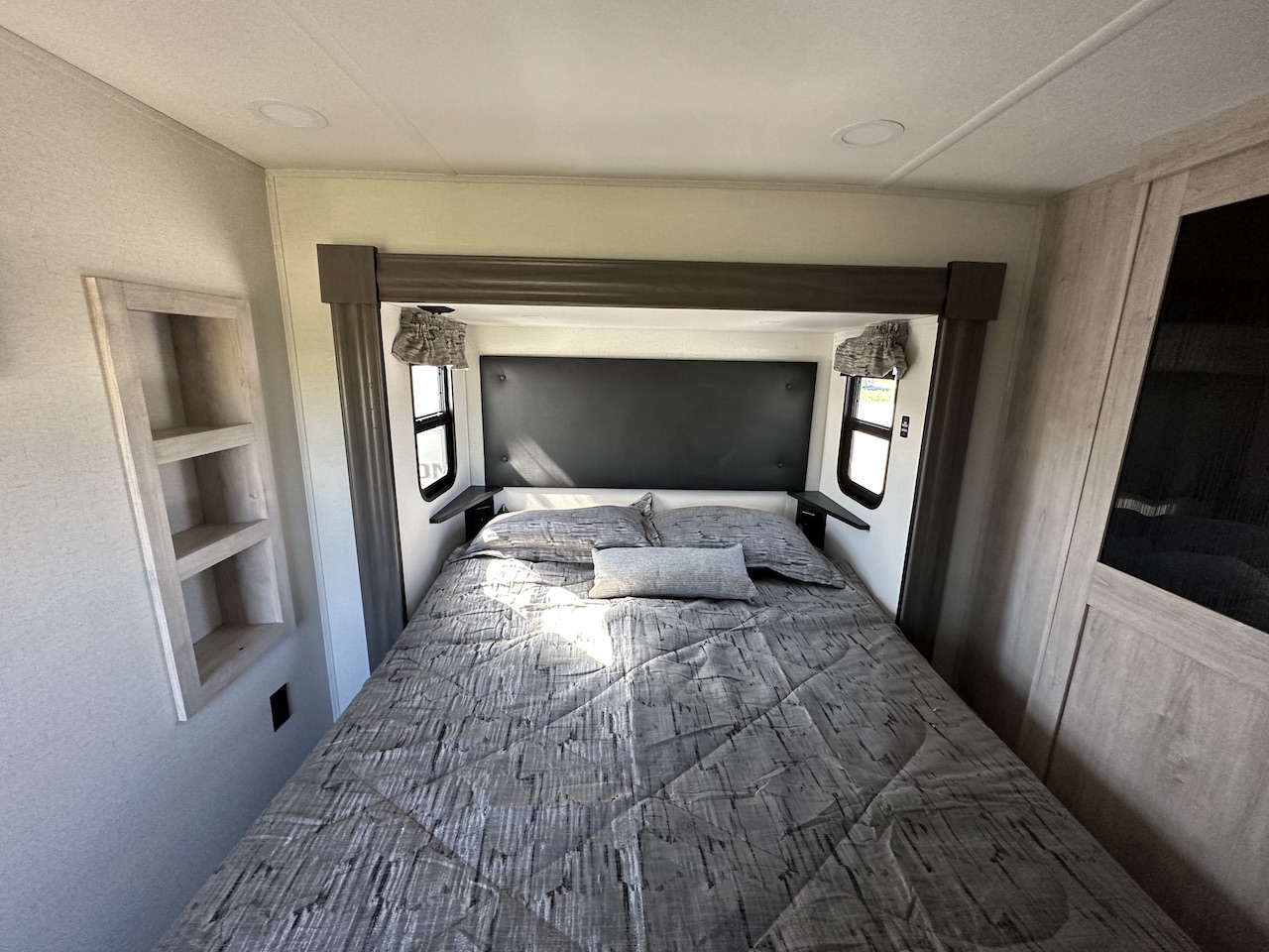 The 4002FB is a double queen bed and loft coach. With 4 slideouts and a double bunk loft, this floorplan has enough sleeping space for whoever wants to tag along. Rear entry into the 2nd full bath will offer full amenities without cluttering or using the master bath. The island kitchen and theater seating provide a great space to entertain and unwind. The 4002FB is extremely versatile, utilizing the extra bedroom or loft for storage when the sleeping space isn’t needed.