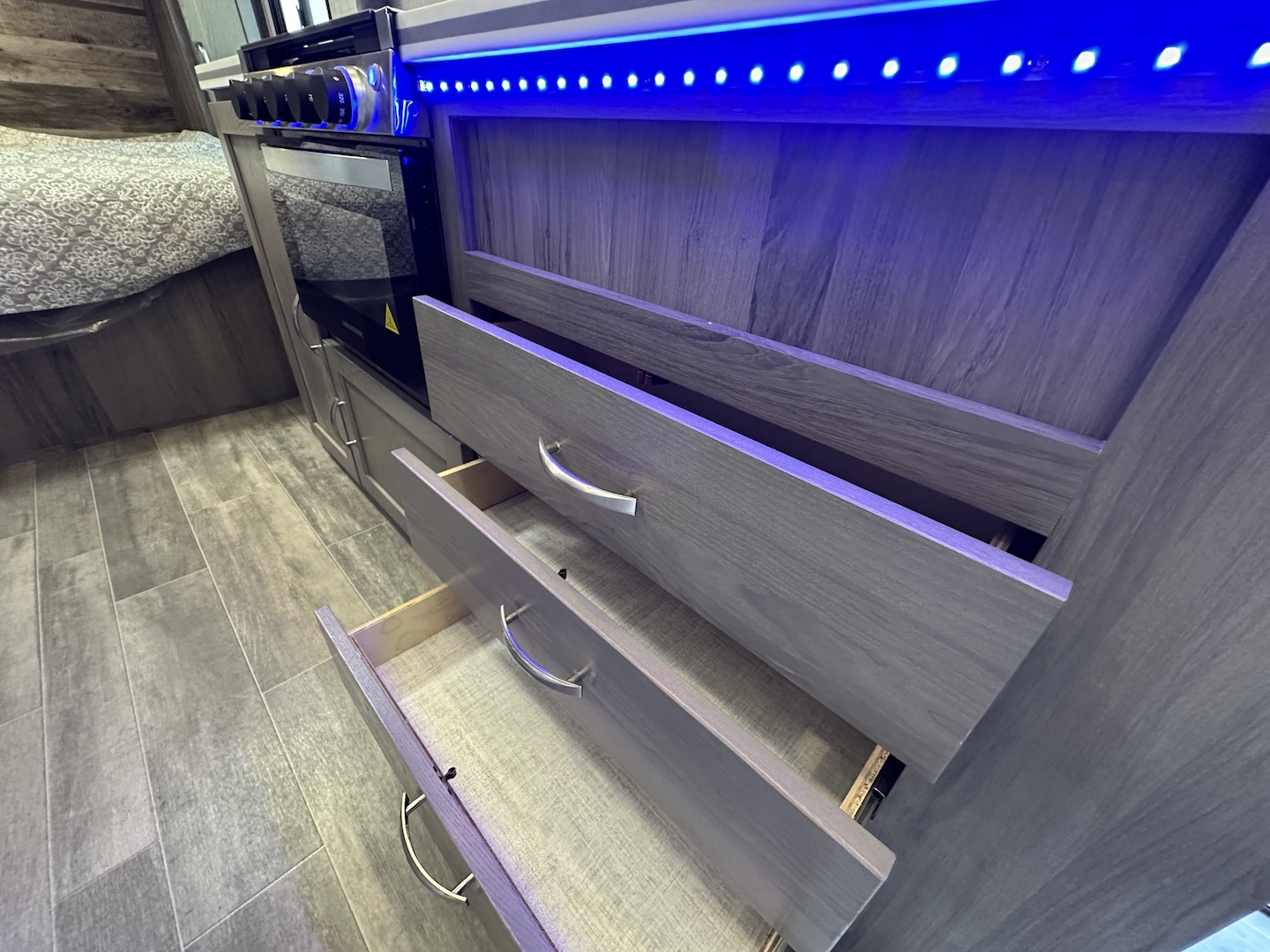- Exterior Pass-Thru Storage w/LED Light & Switch