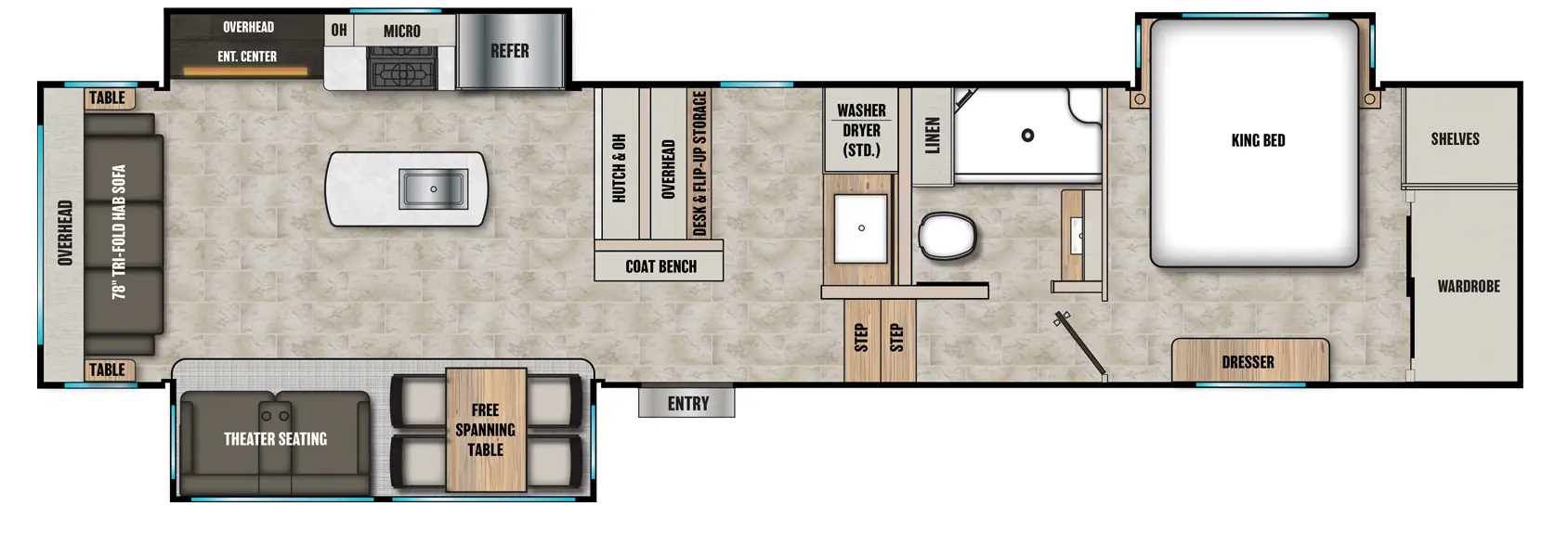 With Brookstone, our product team has been deliberate in our design to build the most user-friendly and functional luxury fifth wheel available. We’ve combined best in class towing for long journeys with well thought out storage solutions for all of your belongings. Our attention to detail will make you want to call Brookstone “home” and when you do, Brookstone will strengthen your passion for the great outdoors.