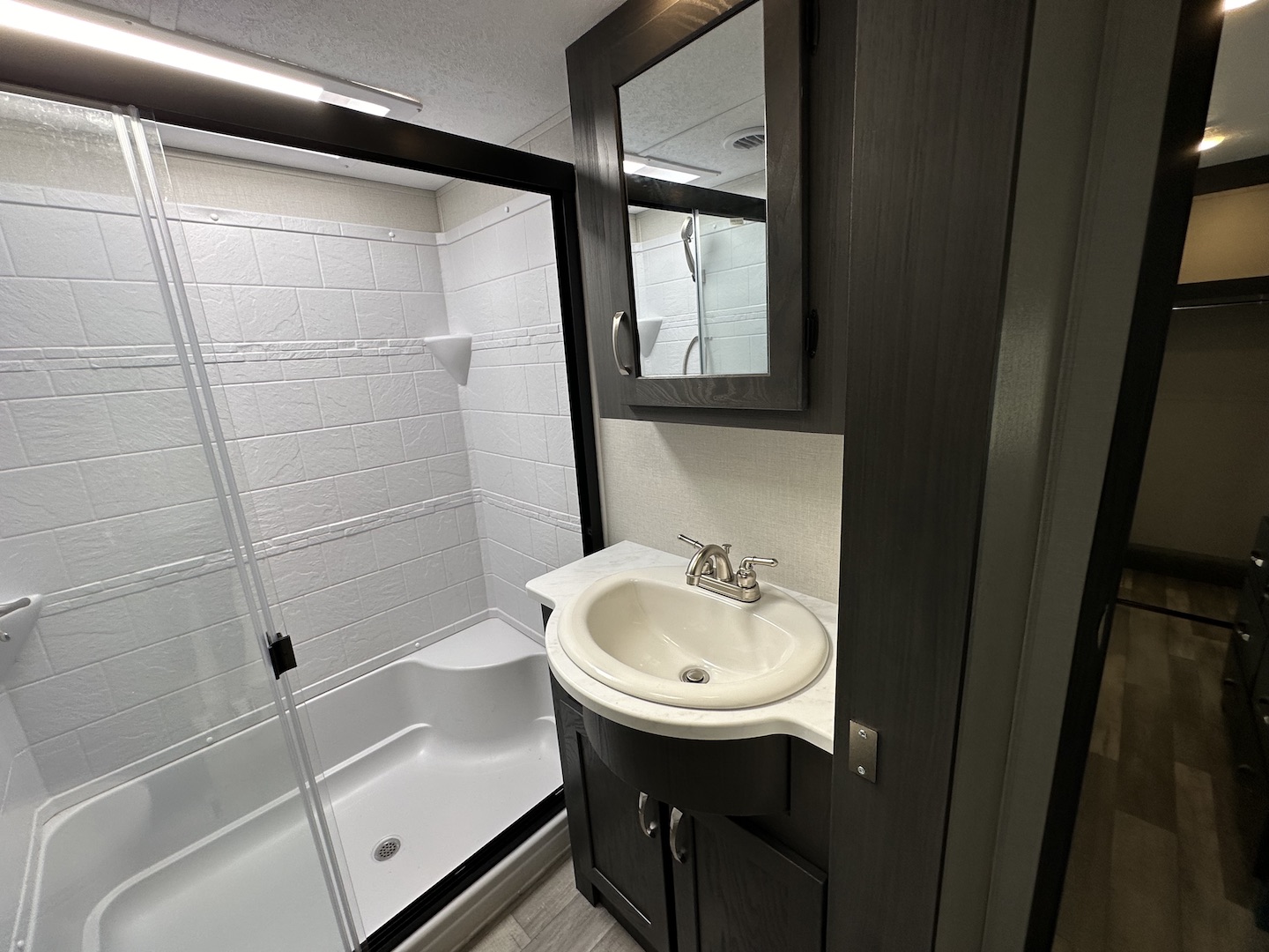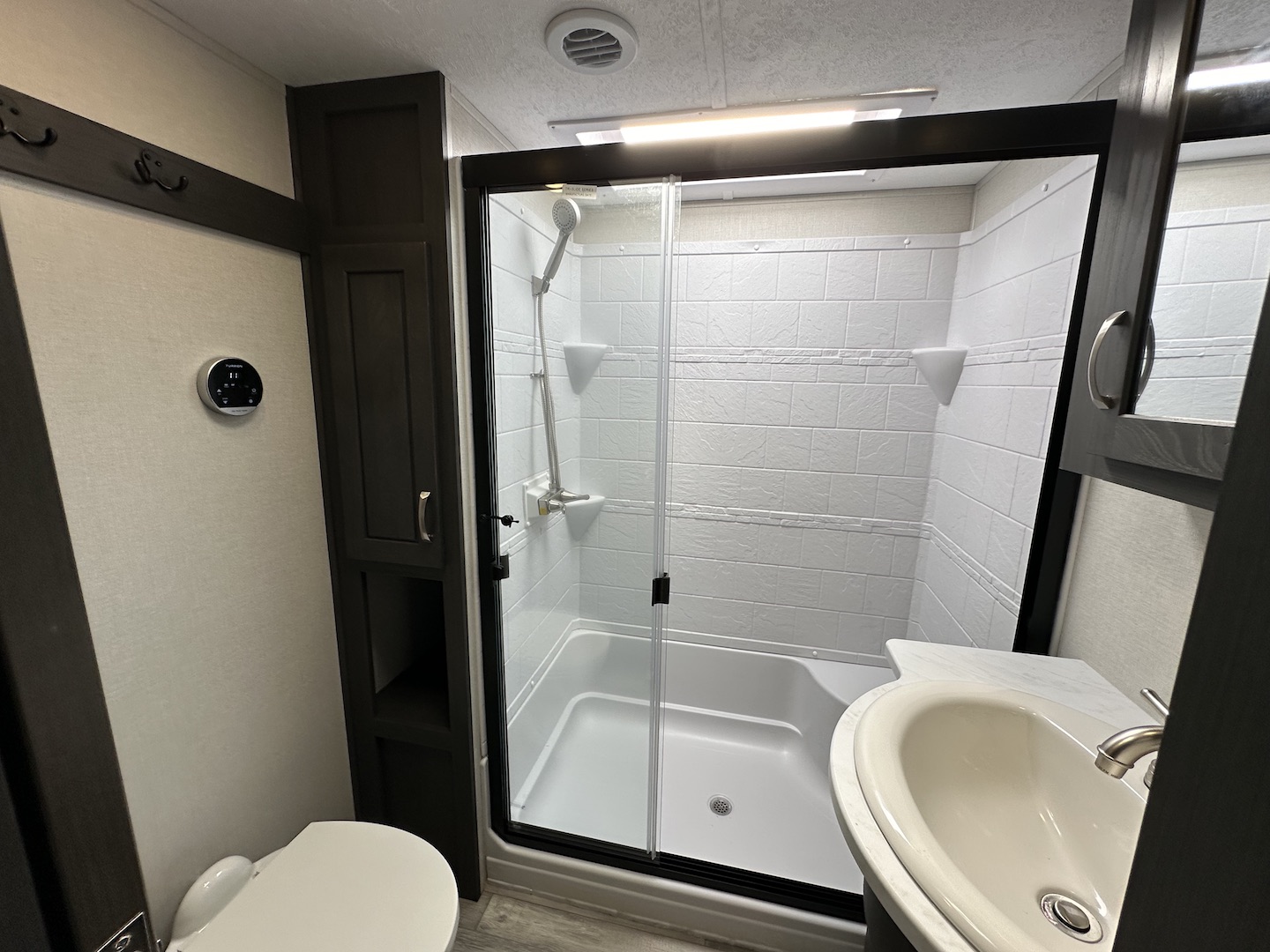 - Full Size Shower W/ Sliding Glass Doors & Seat (Select Models)