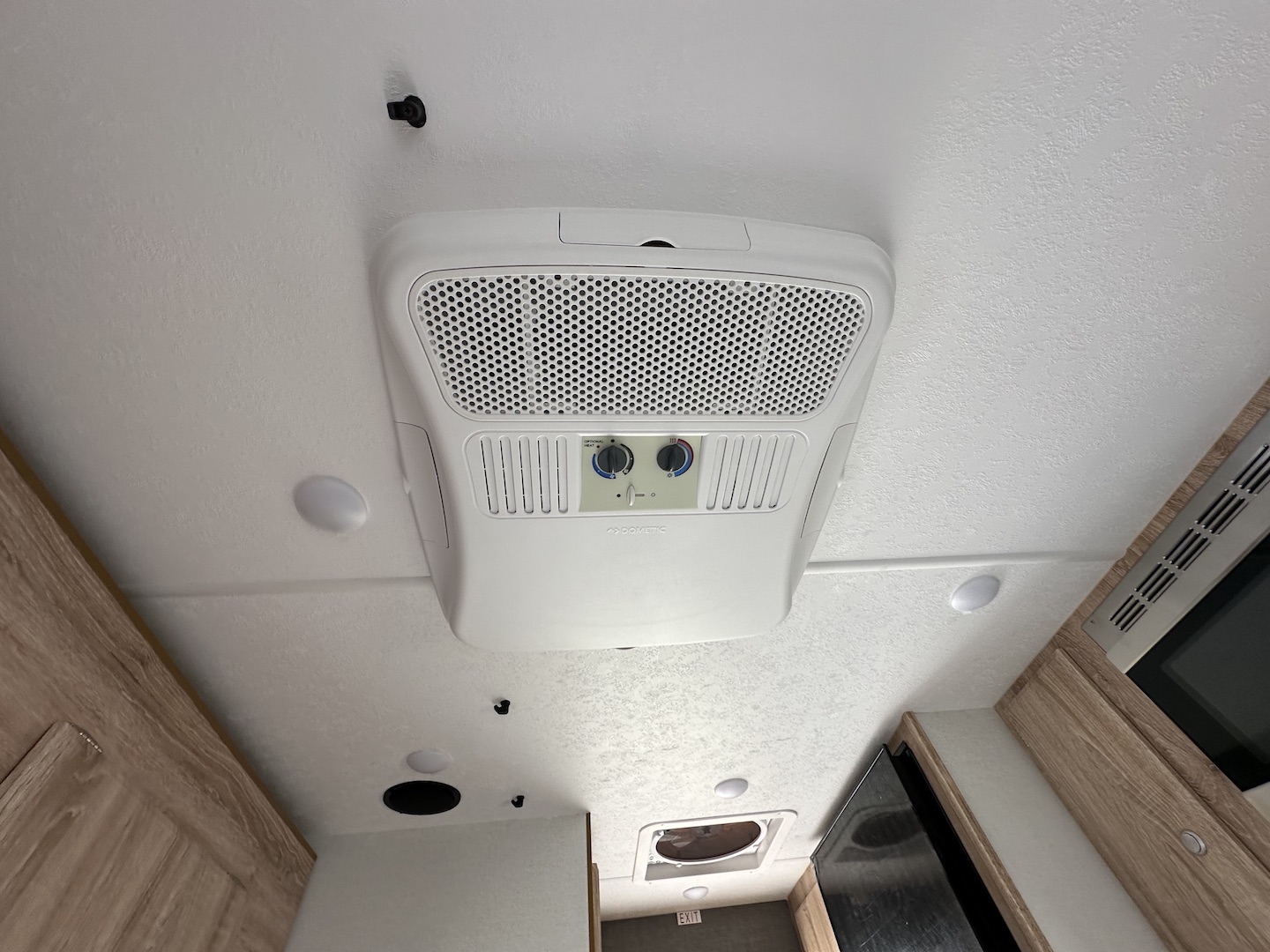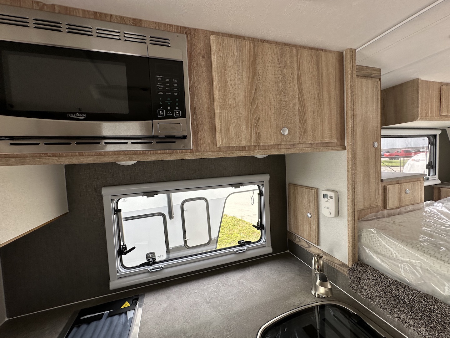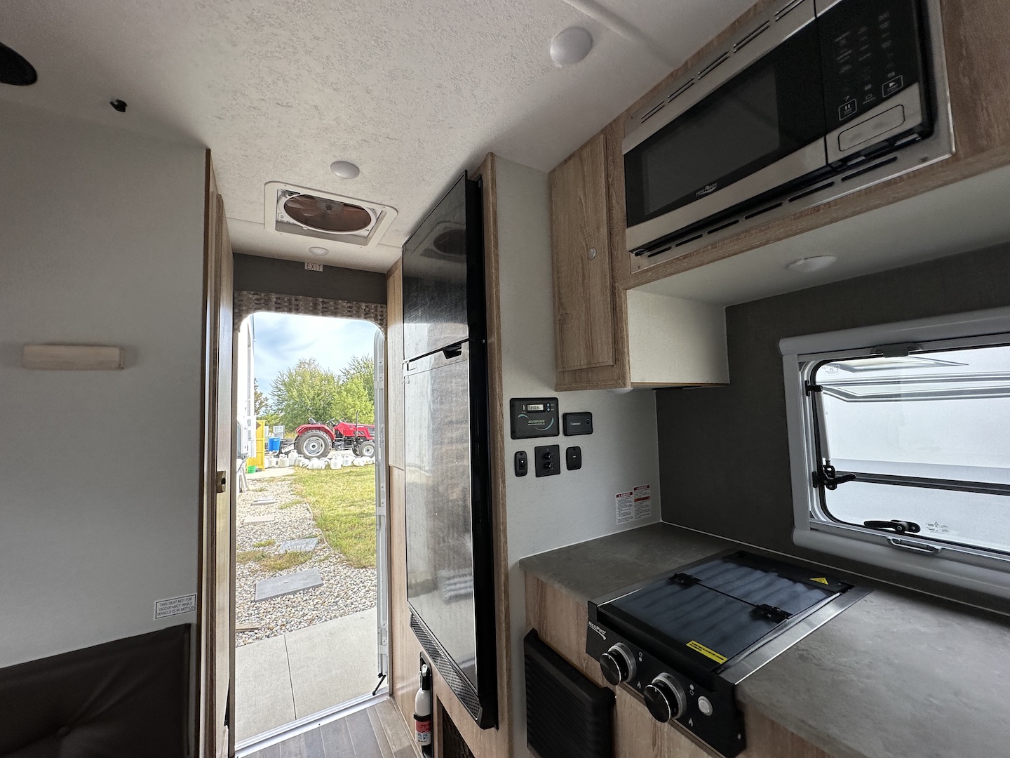 10 Cubic Foot 12v Compressor Refrigerator, 350 Watts of Solar with a Blue Tooth controller, Glass Top sink, 2 Burner stove with folding Glass Top, Auto ignition water heater with bypass, Auto ignition 20K BTU furnace, Amplified TV antenna, Cabover insulated Heki vent, Fresh water tank cleaning port and insulated windows with screen and shade.
