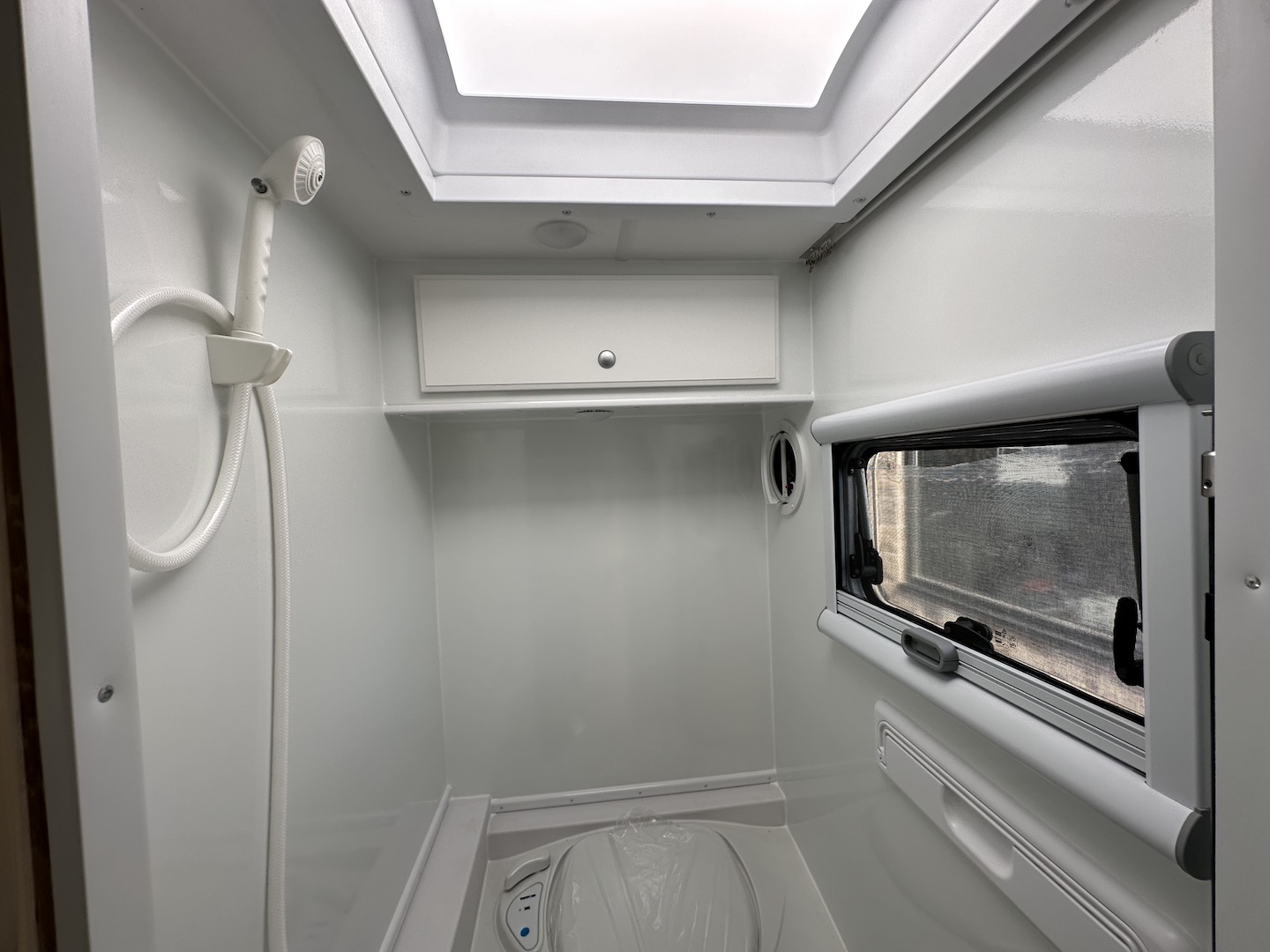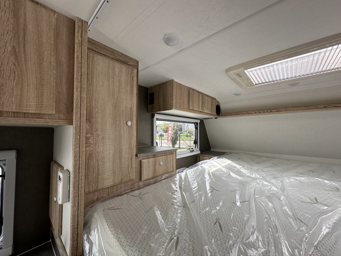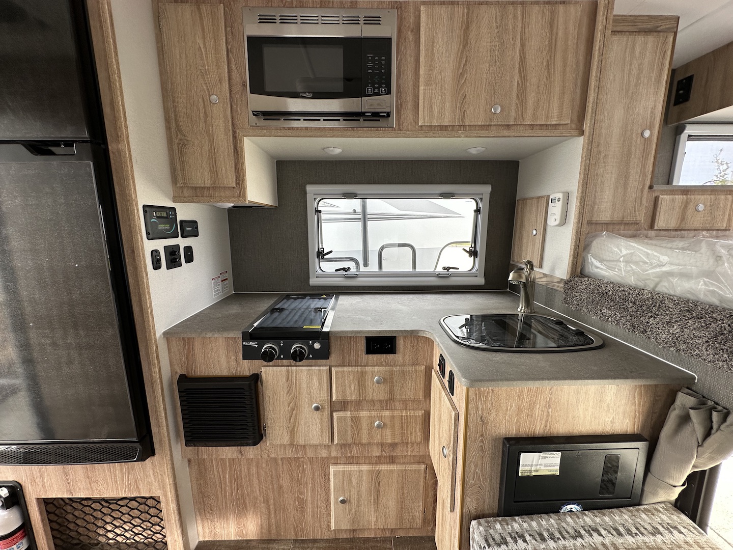 10 Cubic Foot 12v Compressor Refrigerator, 350 Watts of Solar with a Blue Tooth controller, Glass Top sink, 2 Burner stove with folding Glass Top, Auto ignition water heater with bypass, Auto ignition 20K BTU furnace, Amplified TV antenna, Cabover insulated Heki vent, Fresh water tank cleaning port and insulated windows with screen and shade.