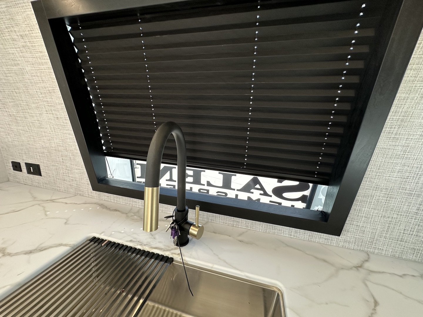 - Square Windows with Built in Shades with Reflective Thermal-Foil Backing and Painted Hardwood Interior Trim