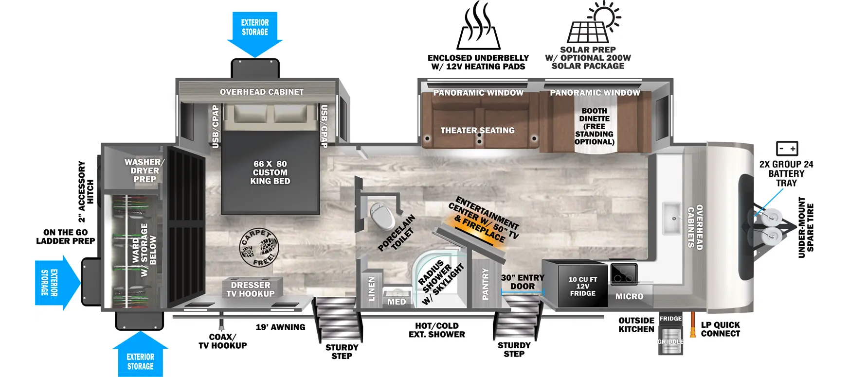 - Enclosed Underbelly w/ 12V Tank Heaters on all Holding Tanks
