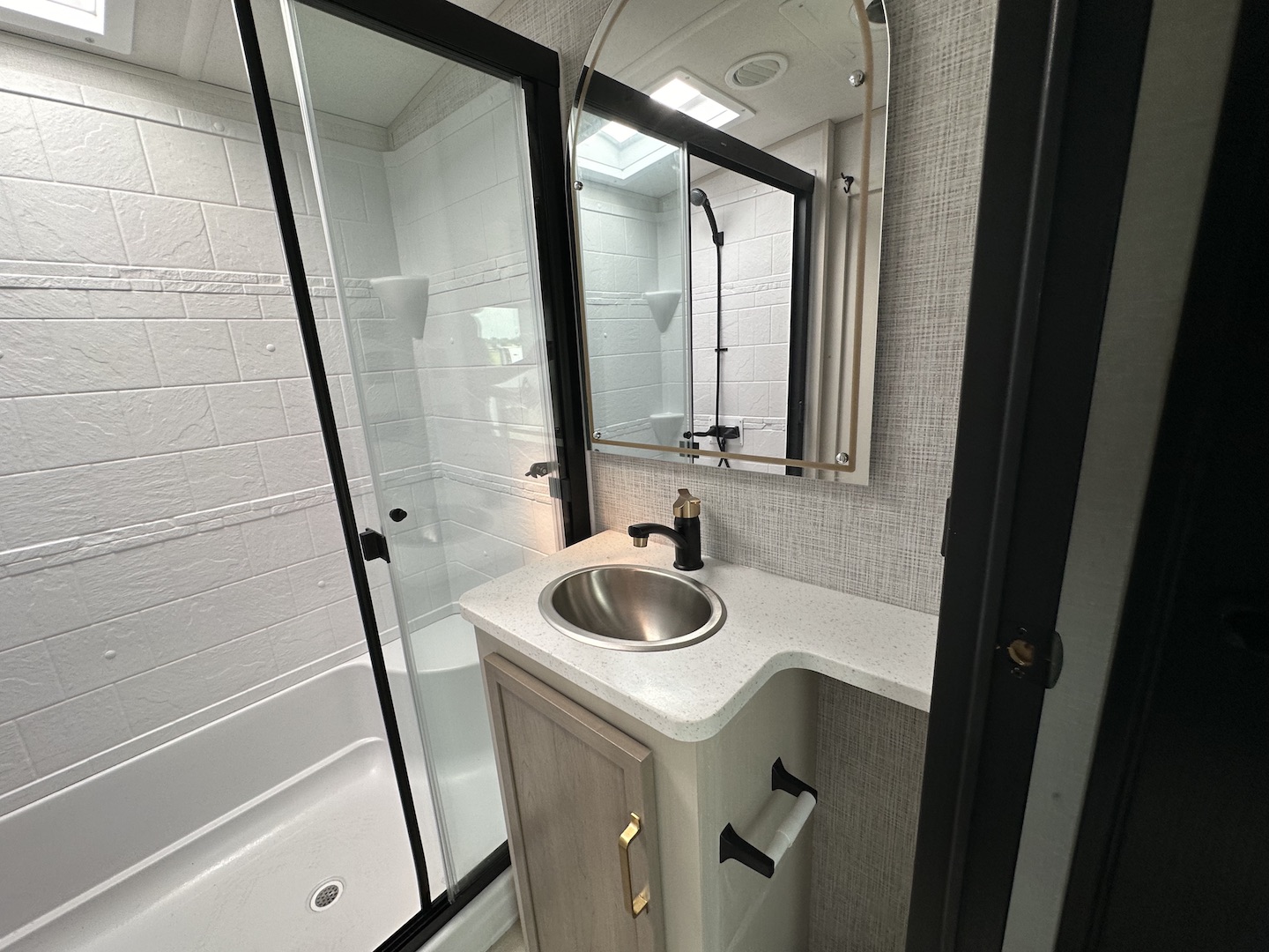 - Gold-Accented Faucets with Stainless Steel Sinks in all Bathrooms