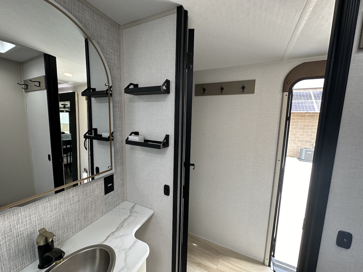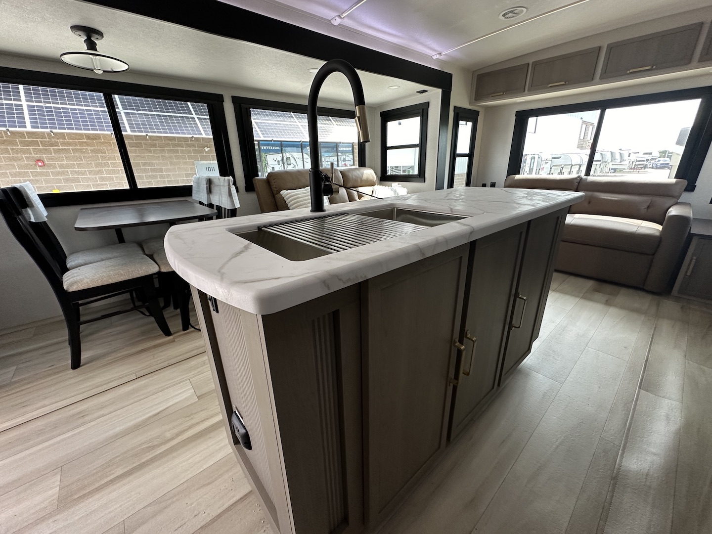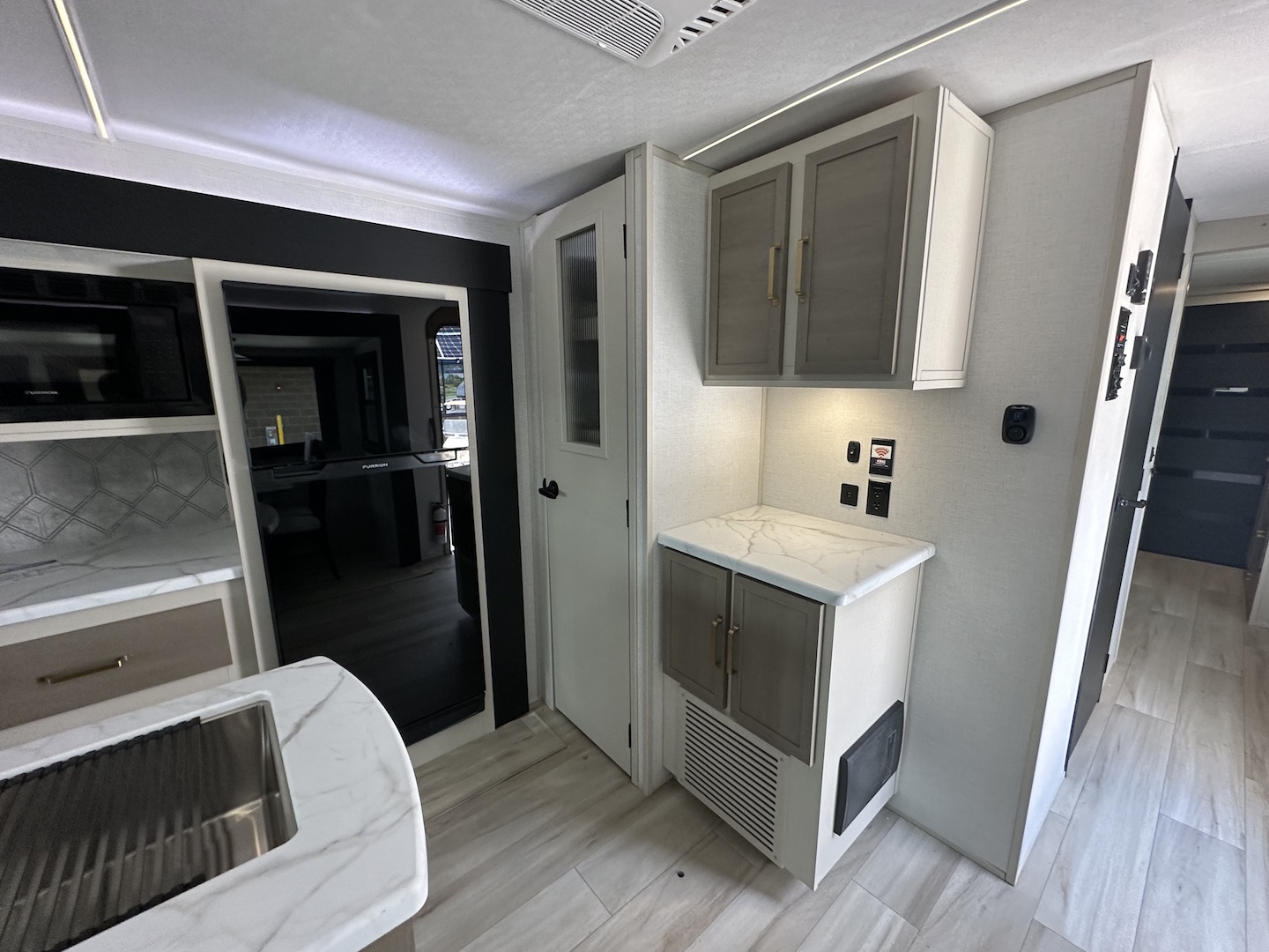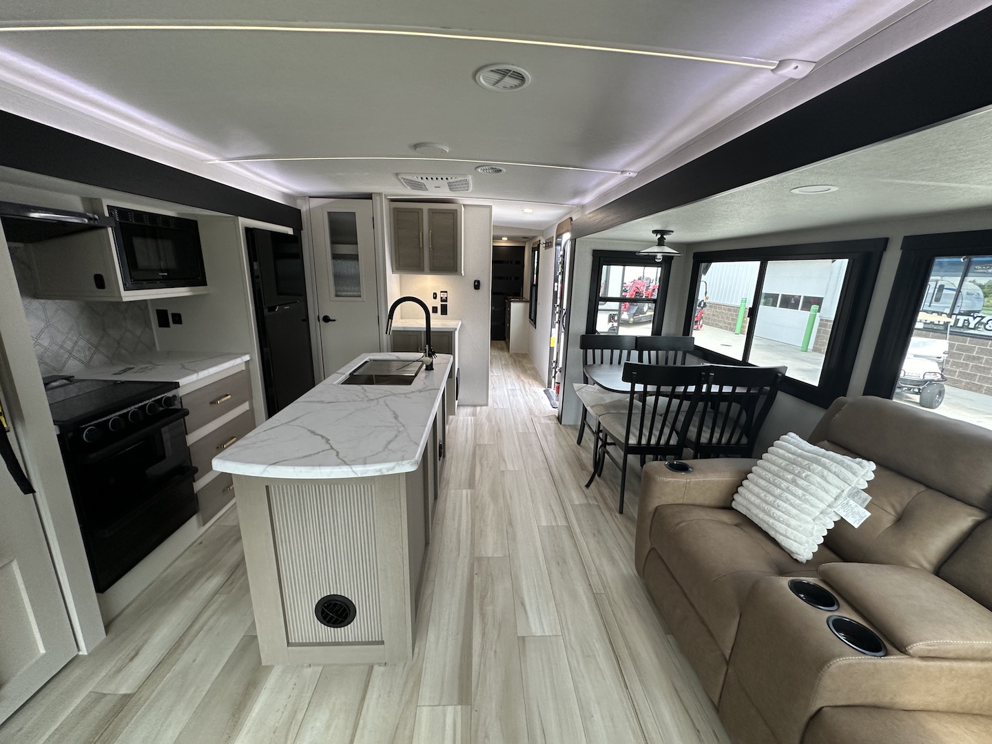 Touting 3 slide-outs, the 308RL is the most spacious Hemisphere Travel Trailer for coupes. Enjoy a breath-taking view of your campsite in the living room or relax in the wide-open bedroom. Past the bedroom you’ll find a WALK-IN wardrobe, and washer/dryer prep area spacious enough for separate washer & dryer. (This is the only model without a windshield, because we didn’t think your laundry would care to see outside).