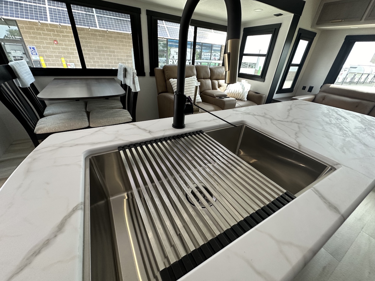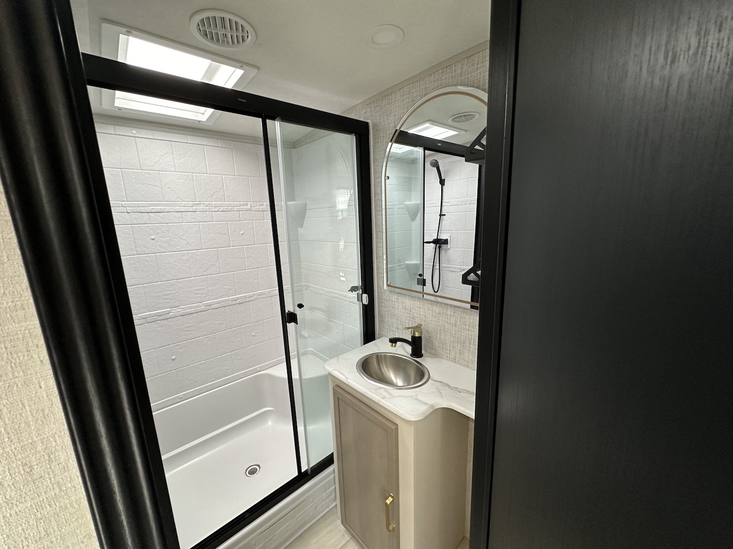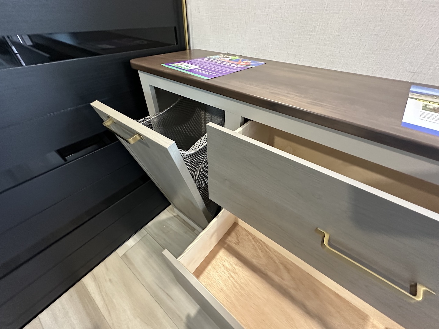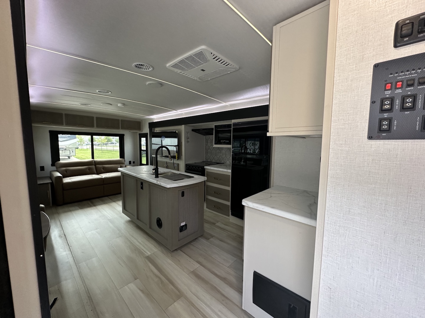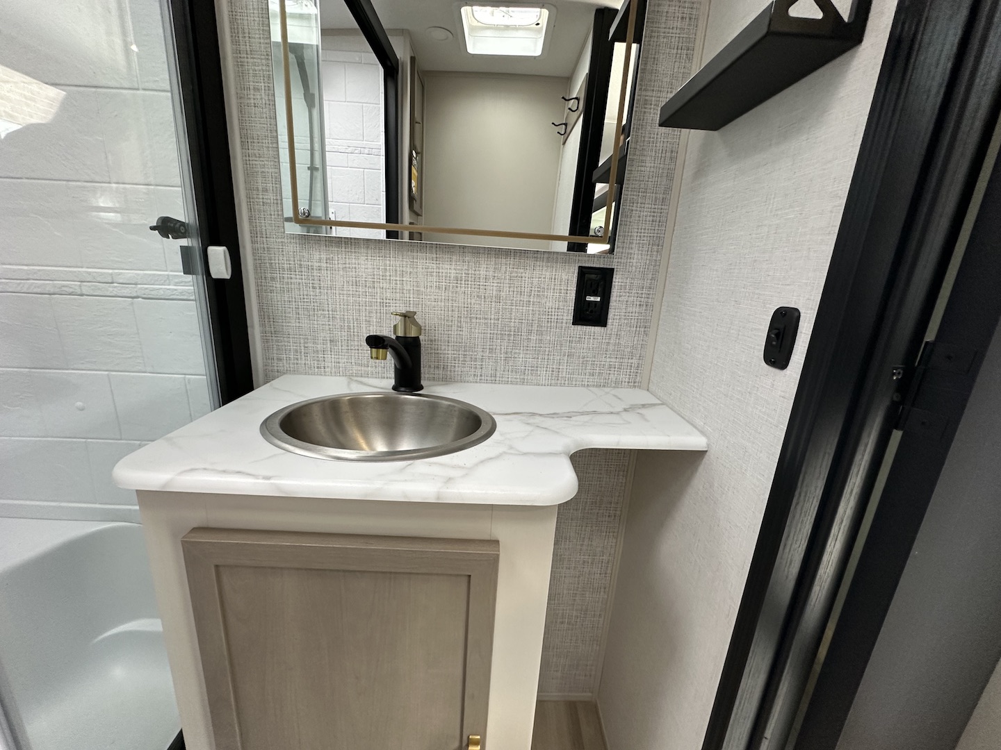 Touting 3 slide-outs, the 308RL is the most spacious Hemisphere Travel Trailer for coupes. Enjoy a breath-taking view of your campsite in the living room or relax in the wide-open bedroom. Past the bedroom you’ll find a WALK-IN wardrobe, and washer/dryer prep area spacious enough for separate washer & dryer. (This is the only model without a windshield, because we didn’t think your laundry would care to see outside).