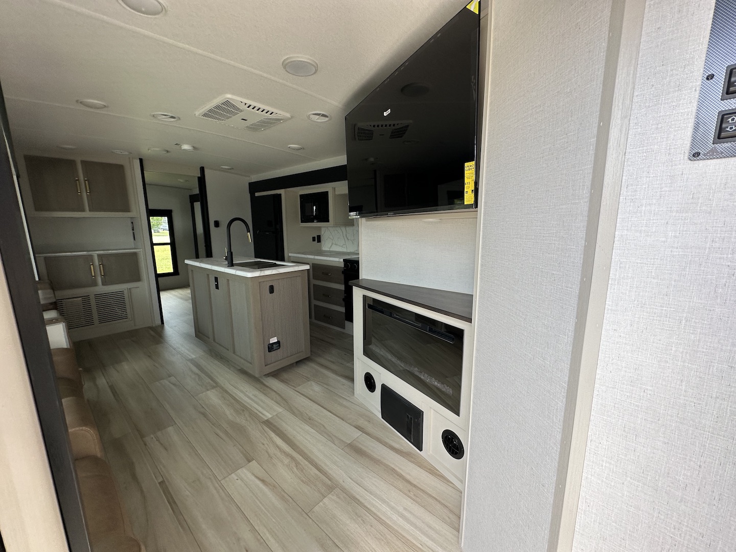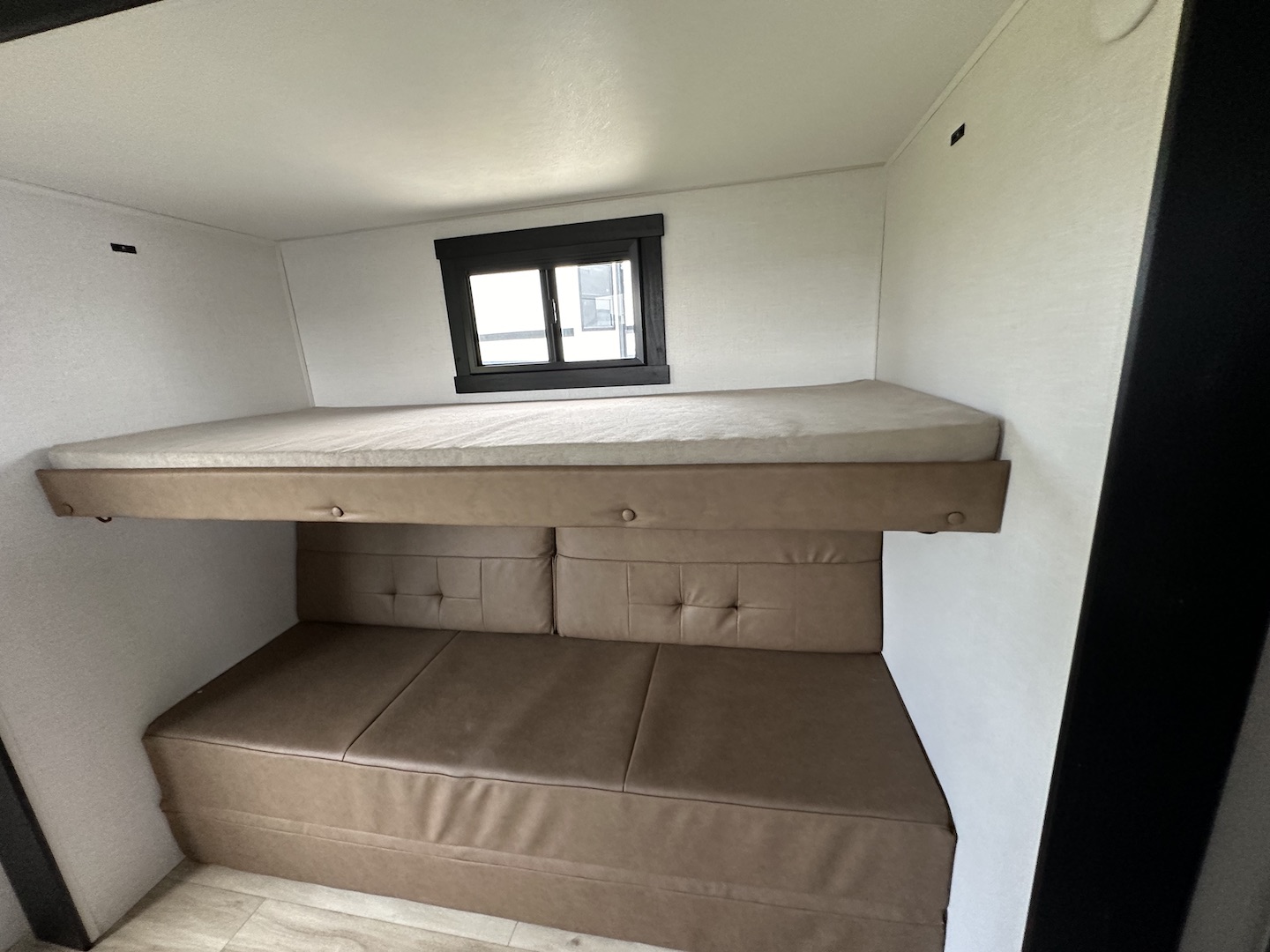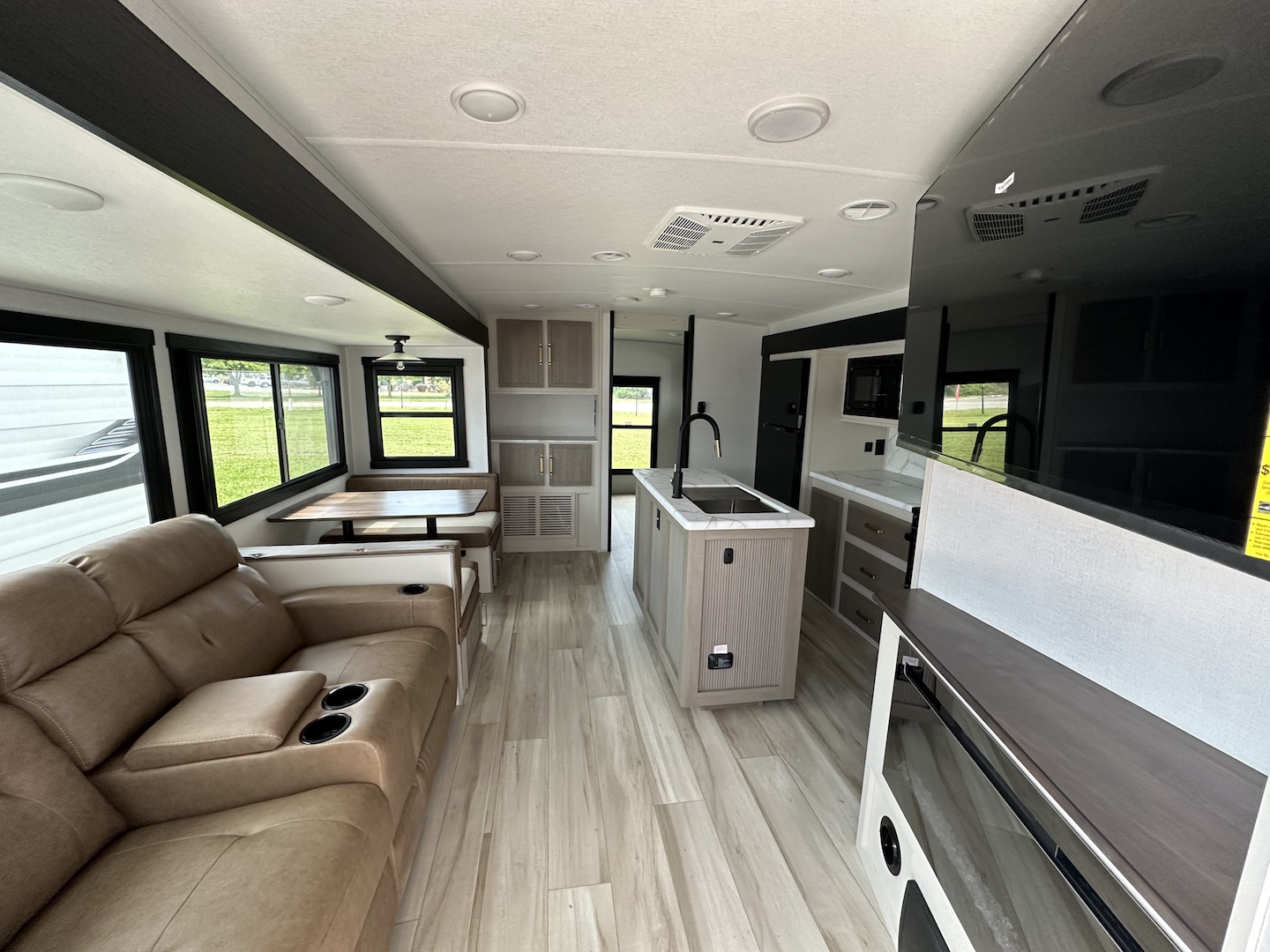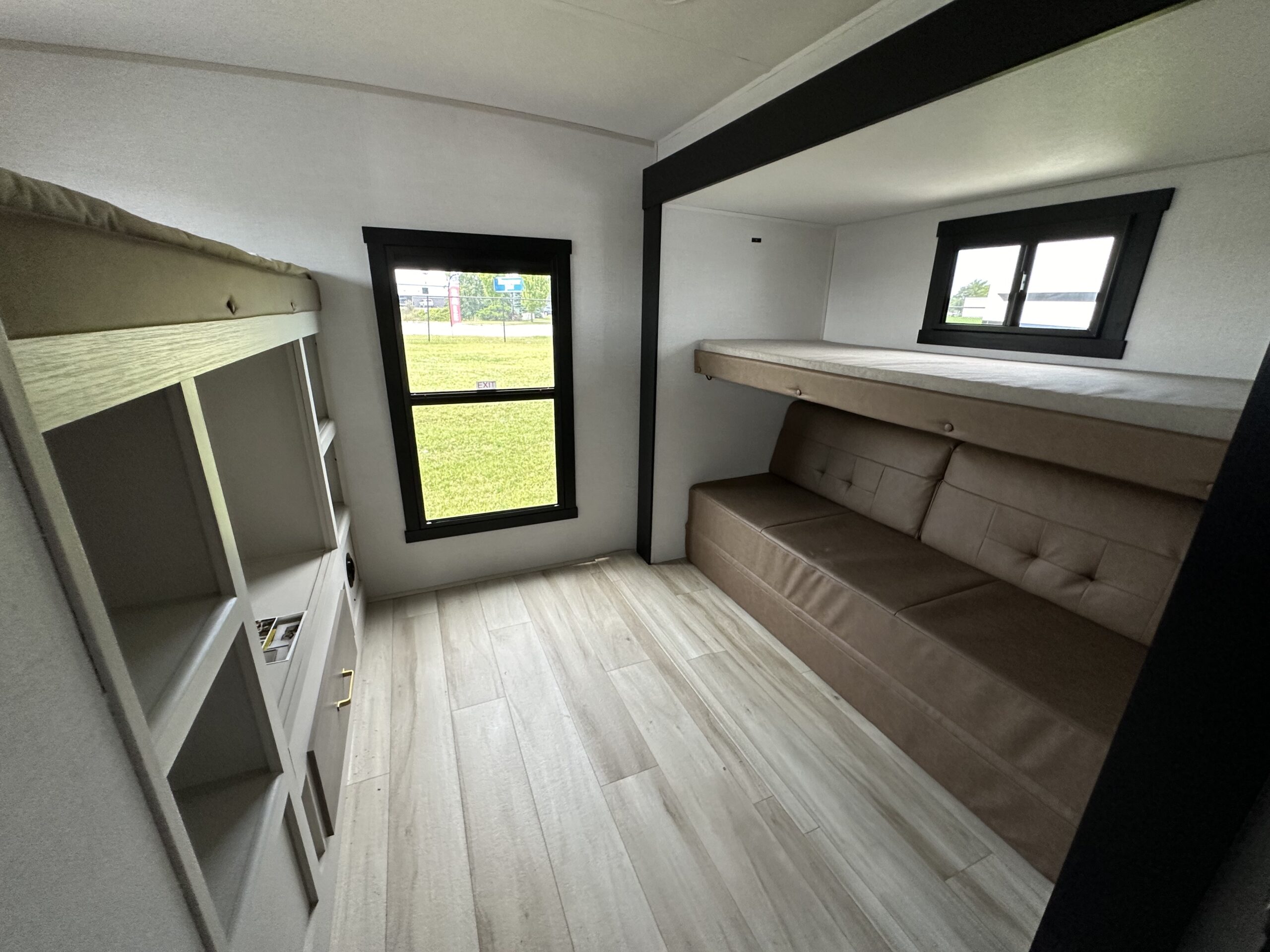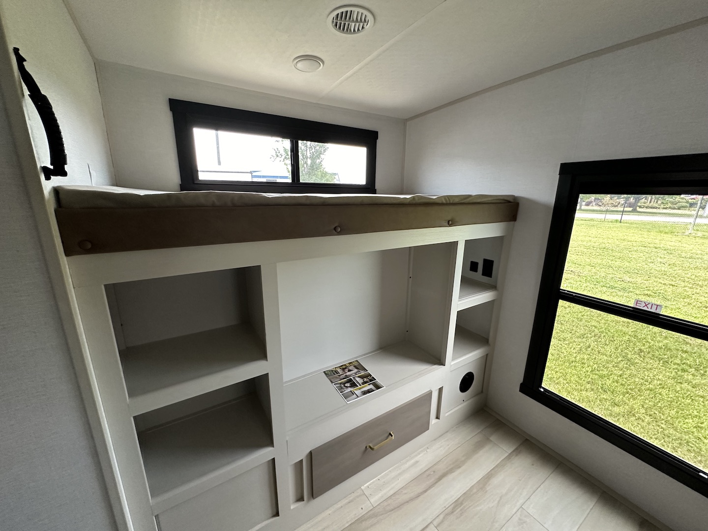 Camping with your family shouldn’t require you to sacrifice your living space. With the 310BHI, you don’t have to. This floorplan offers a MASSIVE outside kitchen, direct viewing of your campsite, a standard 50″ TV, and a pantry most houses would dream of. If that wasn’t enough, the 310BHI comes standard with stackable washer/dryer prep thoughtfully located in the bedroom closet/wardrobe.