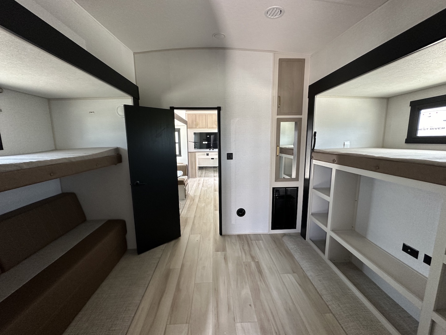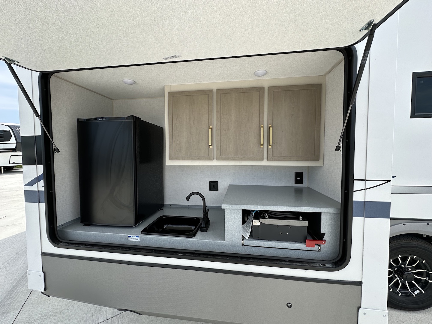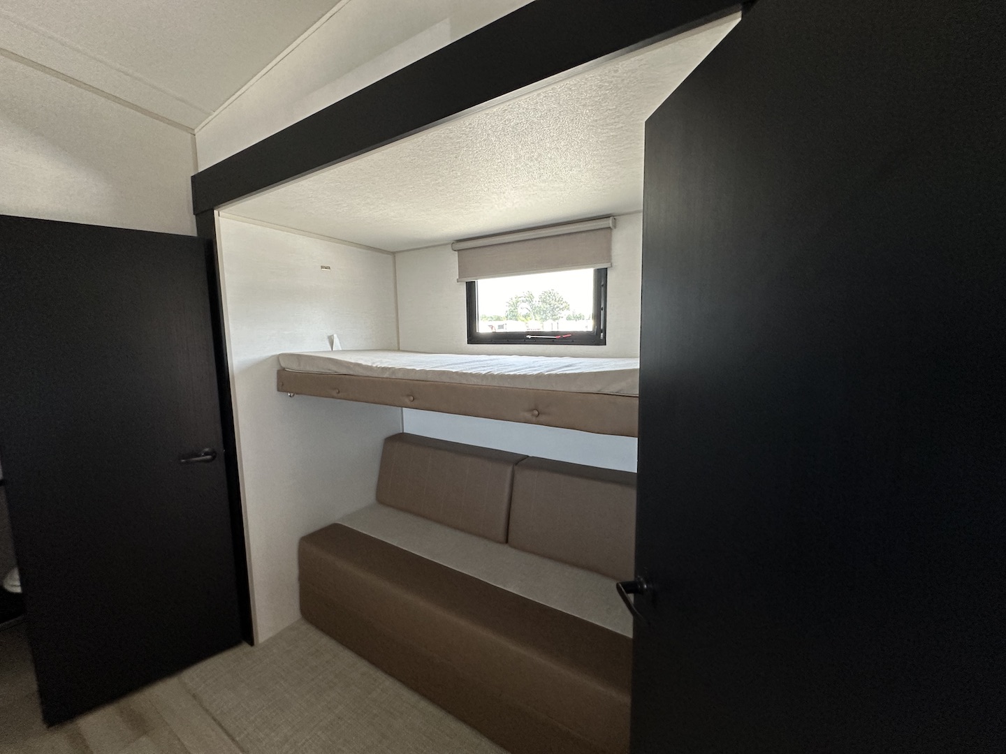 No… Camper… Left… Behind… Bring the whole gang with you in the 356QB. The biggest bunkhouse in the Hemisphere lineup, this floorplan sports 2 FULL BATHROOMS! Guests can use your 2nd bathroom through the rear entrance. A well-appointed outside kitchen rounds out this unbelievable floorplan.
