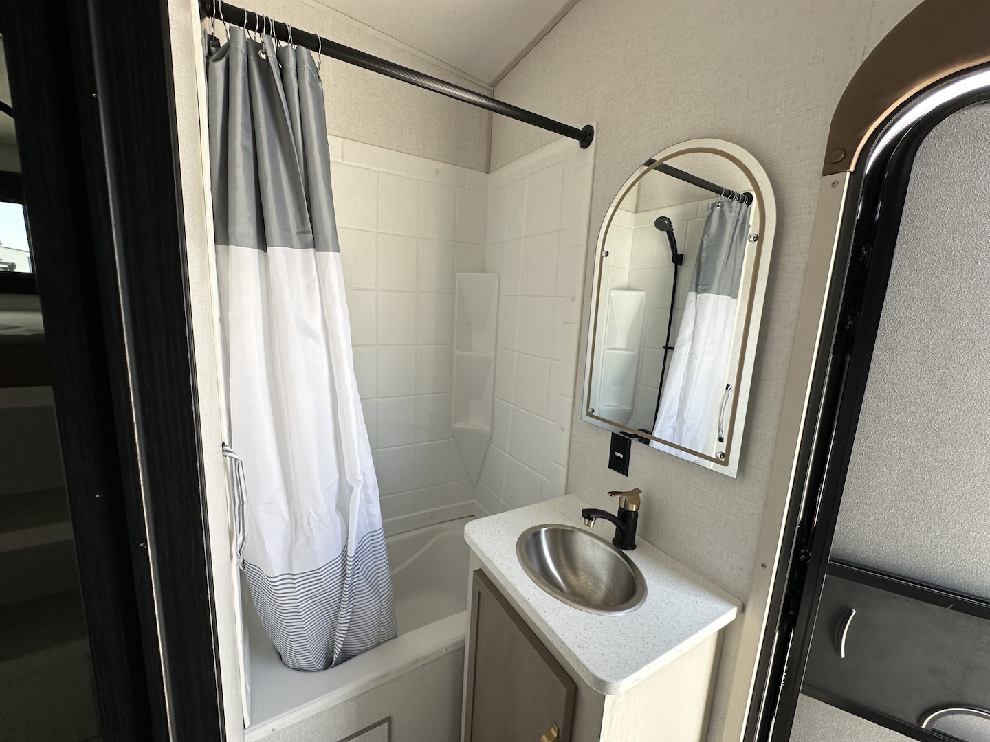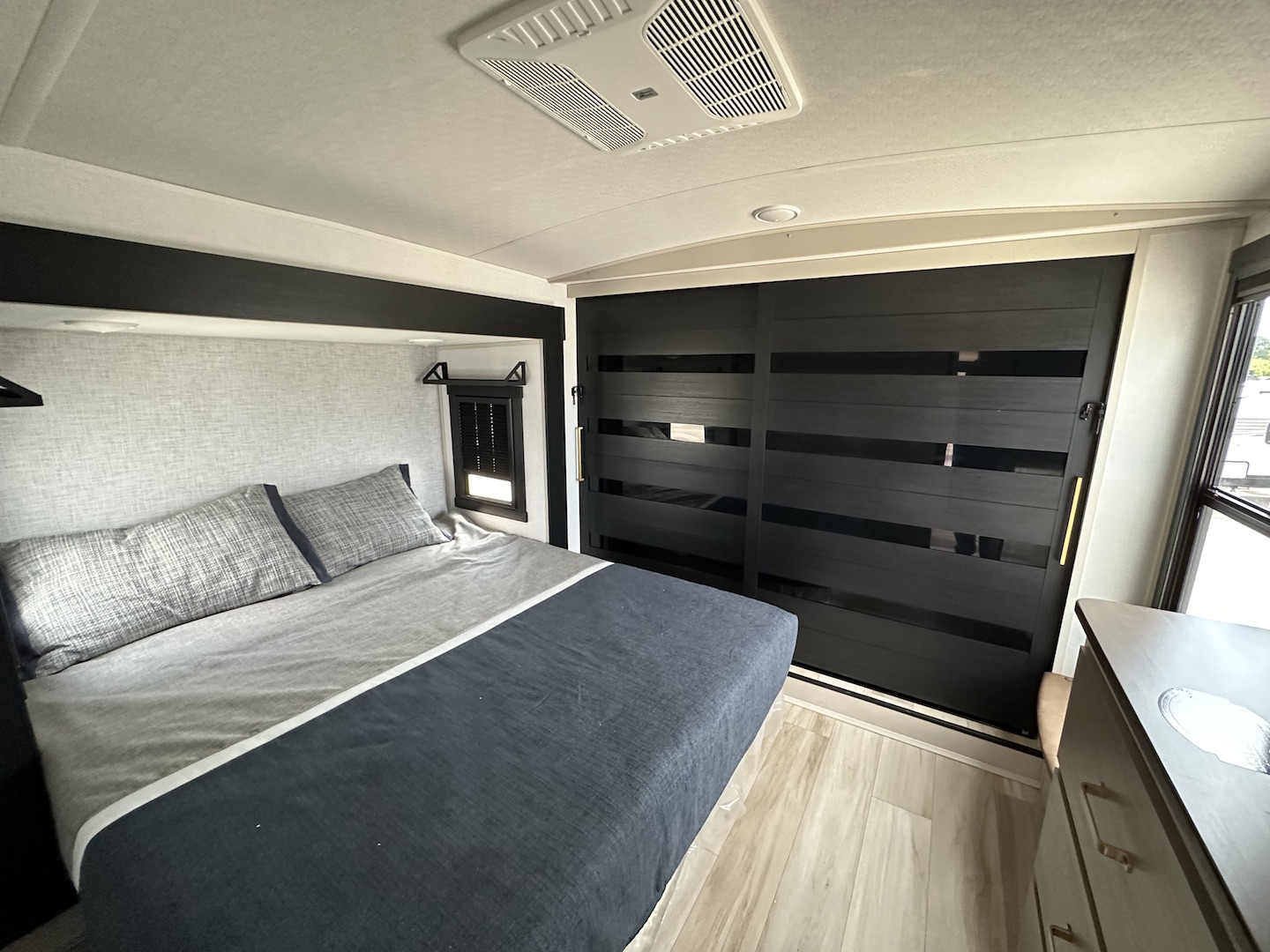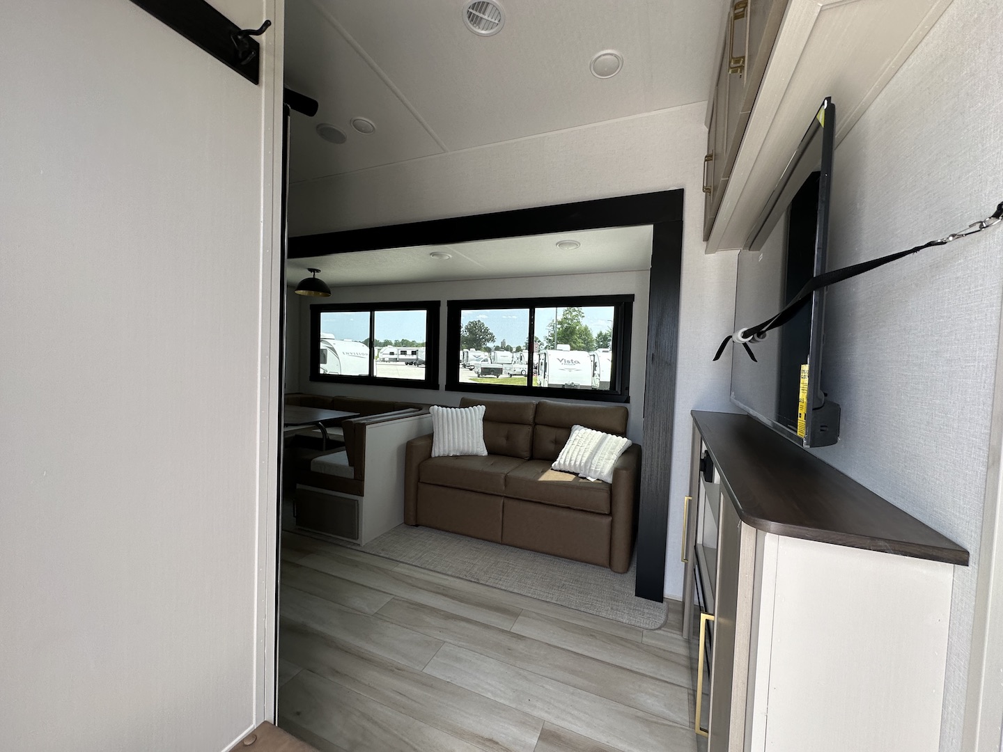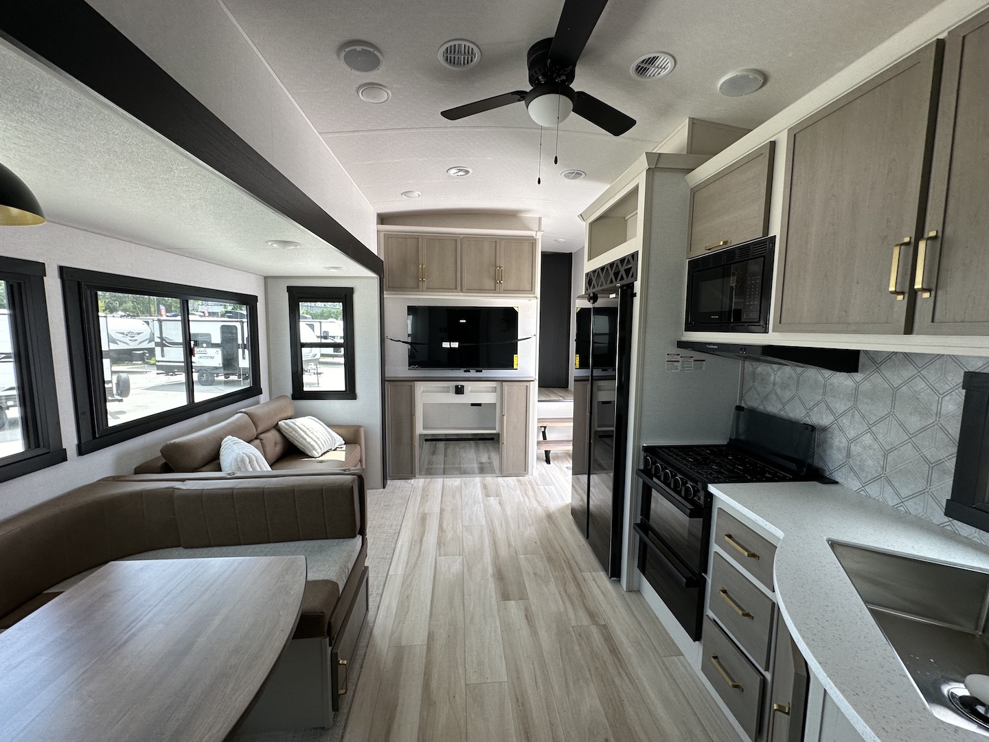 No… Camper… Left… Behind… Bring the whole gang with you in the 356QB. The biggest bunkhouse in the Hemisphere lineup, this floorplan sports 2 FULL BATHROOMS! Guests can use your 2nd bathroom through the rear entrance. A well-appointed outside kitchen rounds out this unbelievable floorplan.