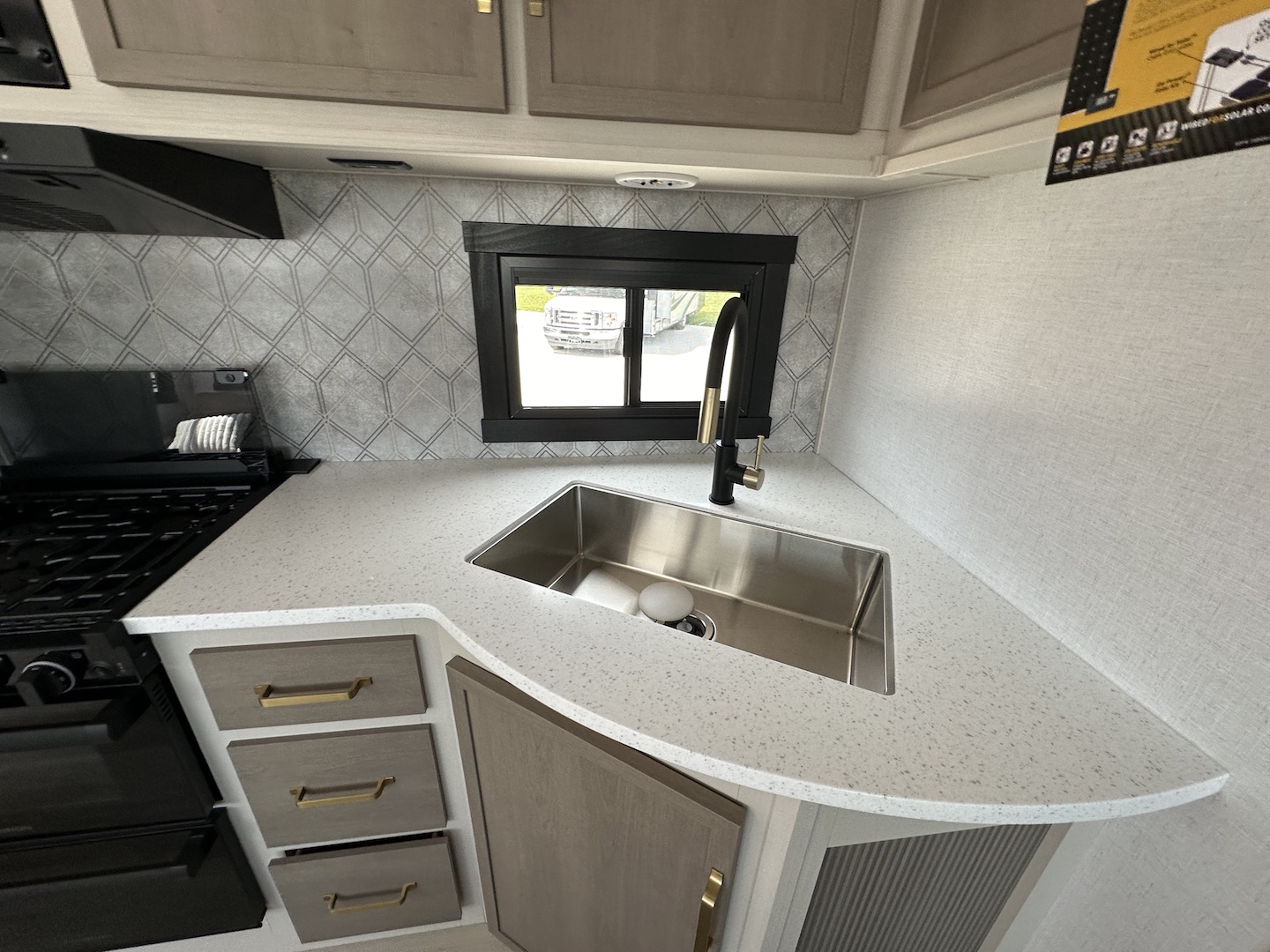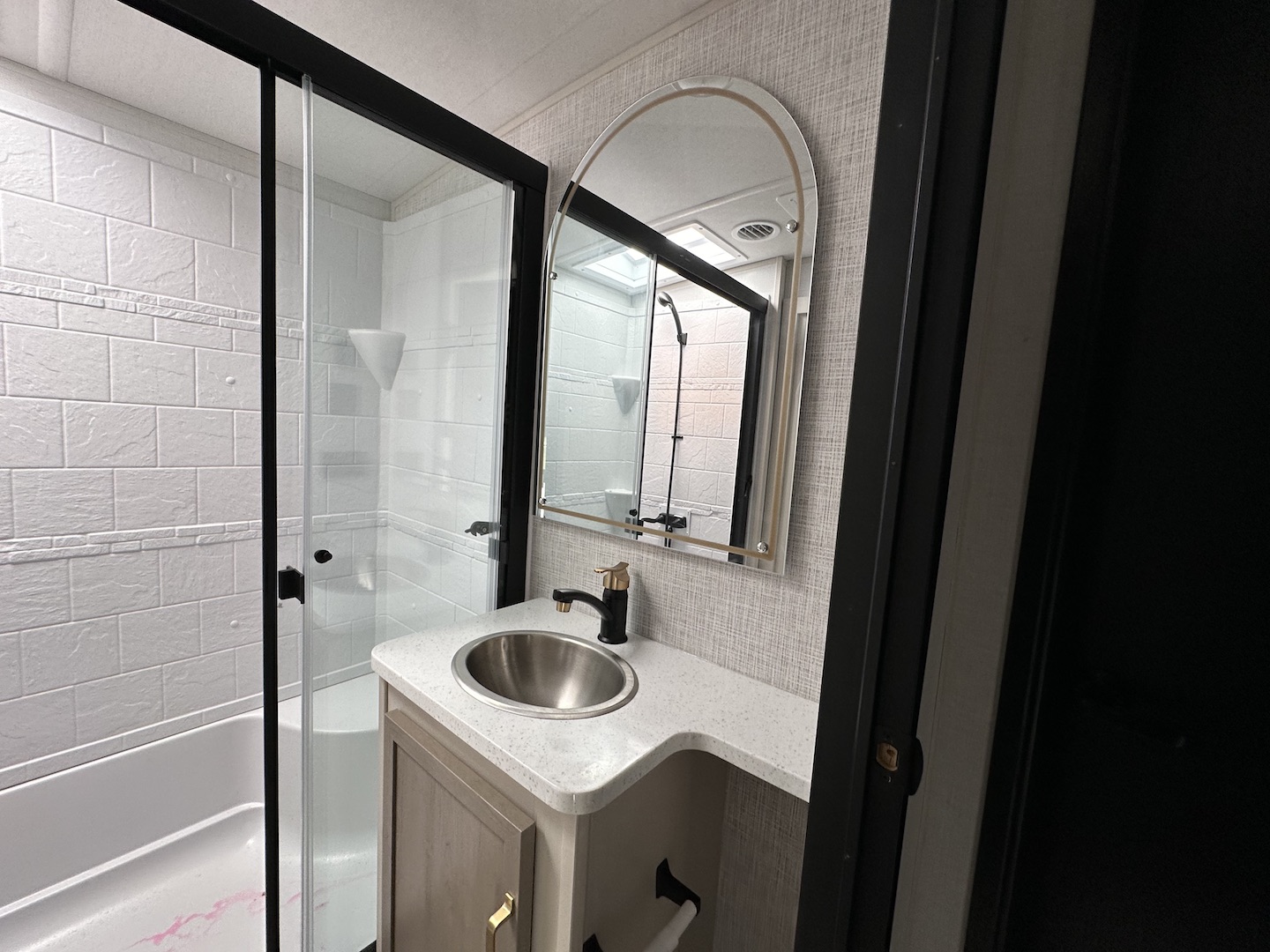 - Gold-Accented Faucets with Stainless Steel Sinks in all Bathrooms