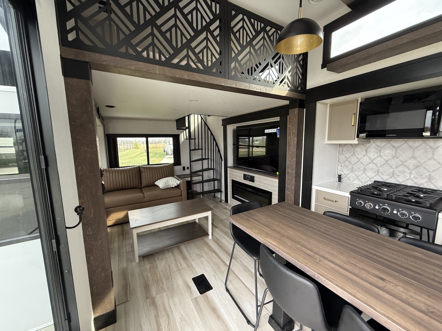 The ROOST43 provides a new segment to the RV market with a combination of a destination trailer in fifth wheel form. This creates the opportunity to move from locations easier than bumper pulling and provides the most square footage in this segment of RVs (530 Sq.Ft. compared to 399 Sq.Ft.). The ROOST43 is feature packed with residential style kitchen appliances, HUGE rear den, two lofts, bath and a half, laundry room, and an elegant interior design. The ROOST43 is will set a new era for RVing.