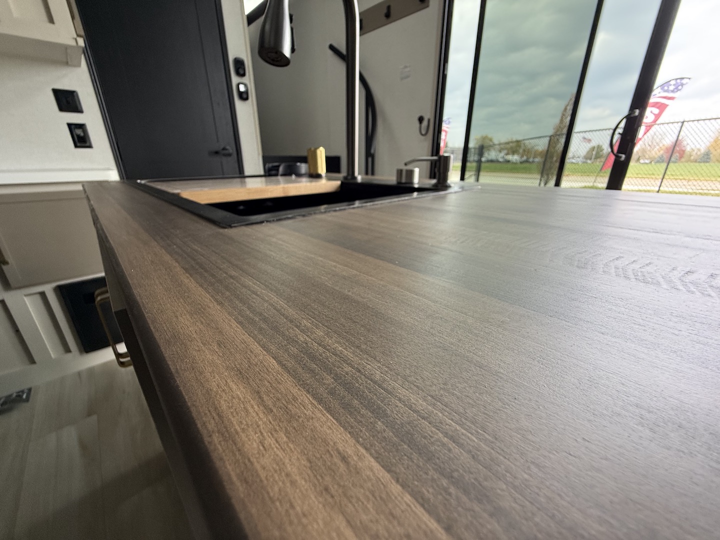 - High-End Solid Surface & Maple-Stained Wood Countertops