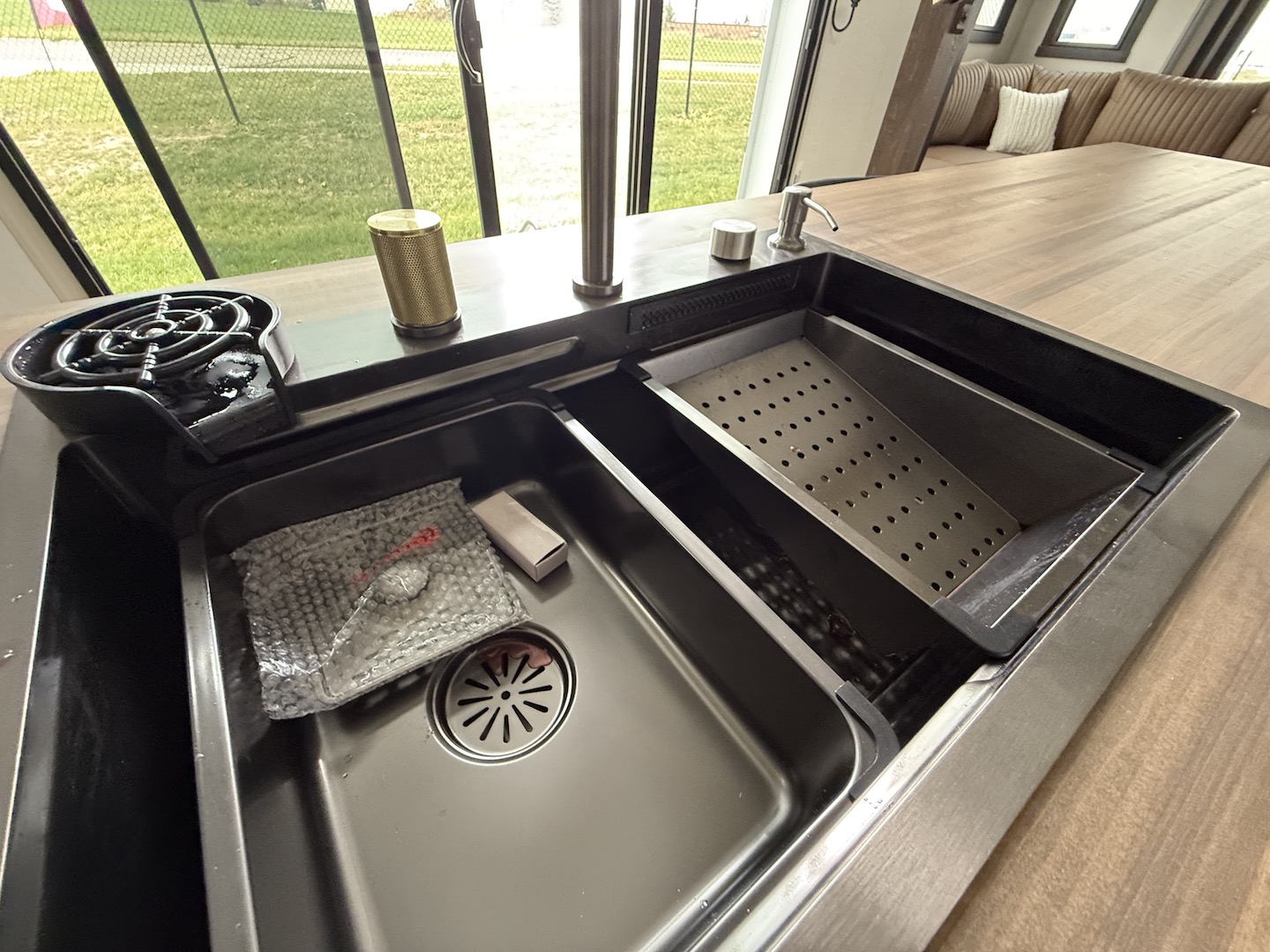 - Gun Metal Grey Kitchen Sink with Pull Down Sprayer and Glass Rinser