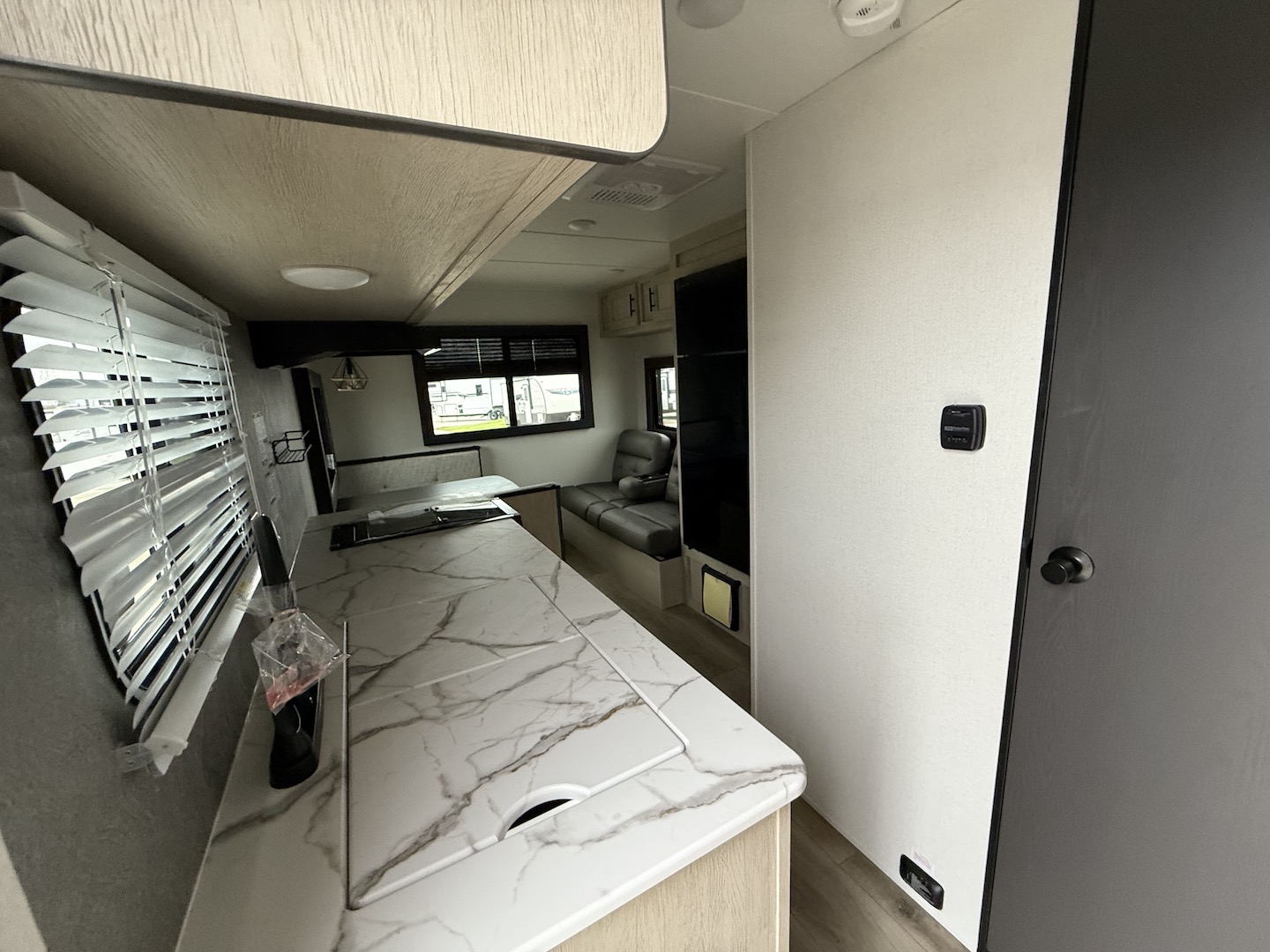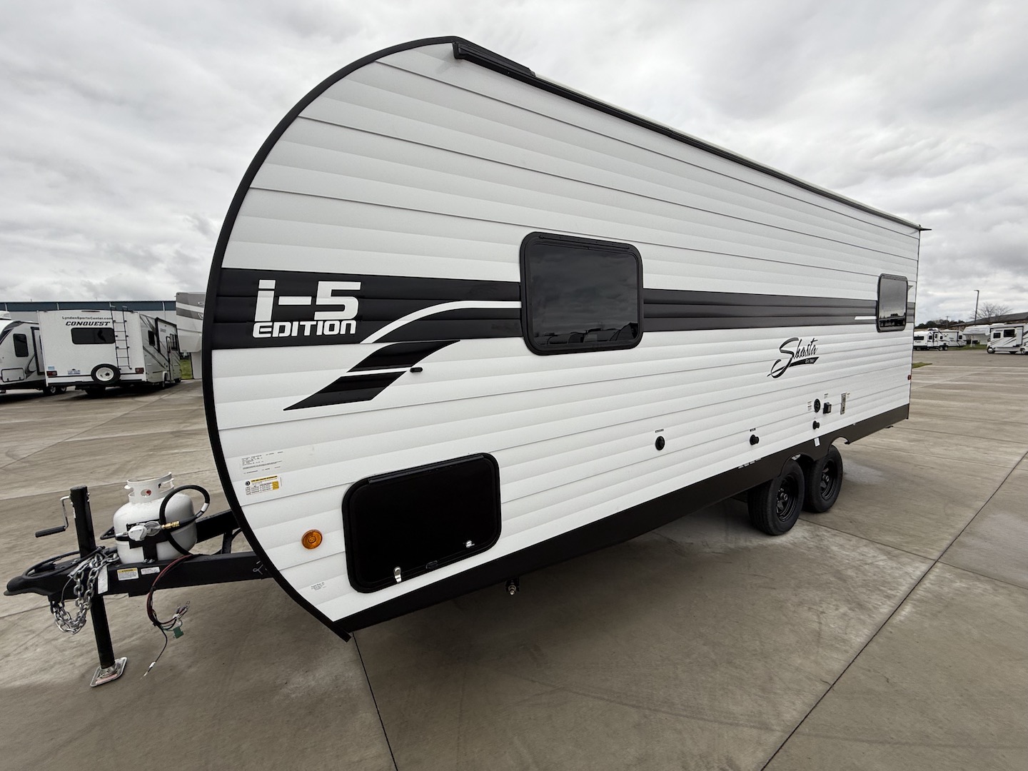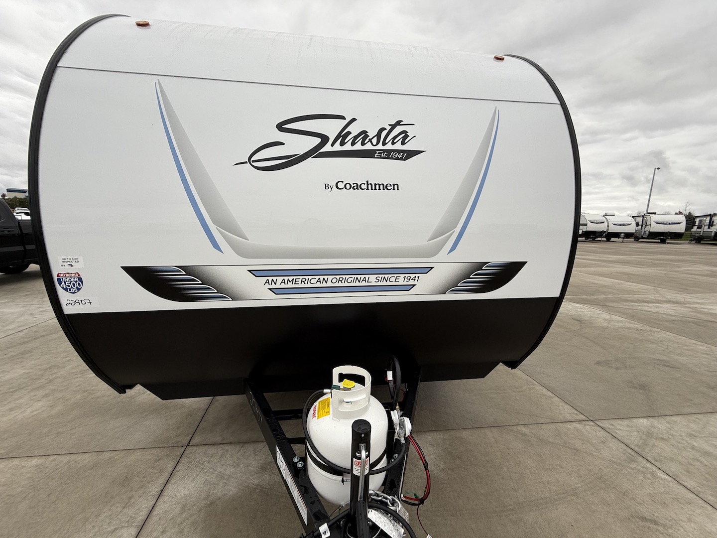 Shasta offers a wide variety of quality affordable lighter weight floorplans that are packed with convenience and value. Designed for couples and families to get away from it all and enjoy some well-deserved rest and relaxation. Shasta has been providing memories to campers for generations. Our well laid out interiors are bright and airy with modern woodgrain cabinetry, LED interior lights and residential styling countertops. You will absolutely love the large stainless steel residential refrigerator. You may want to add the optional free standing dinette with 4 chairs or LED fireplace to spark up your interior.