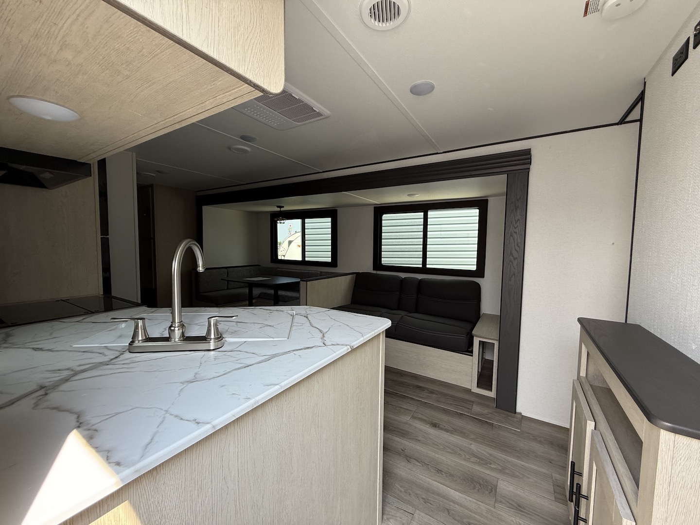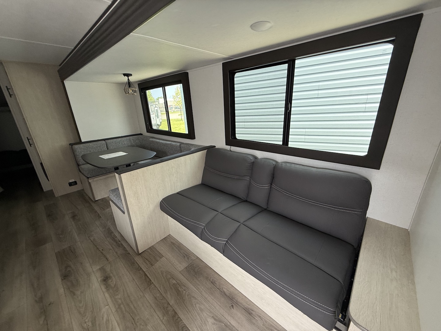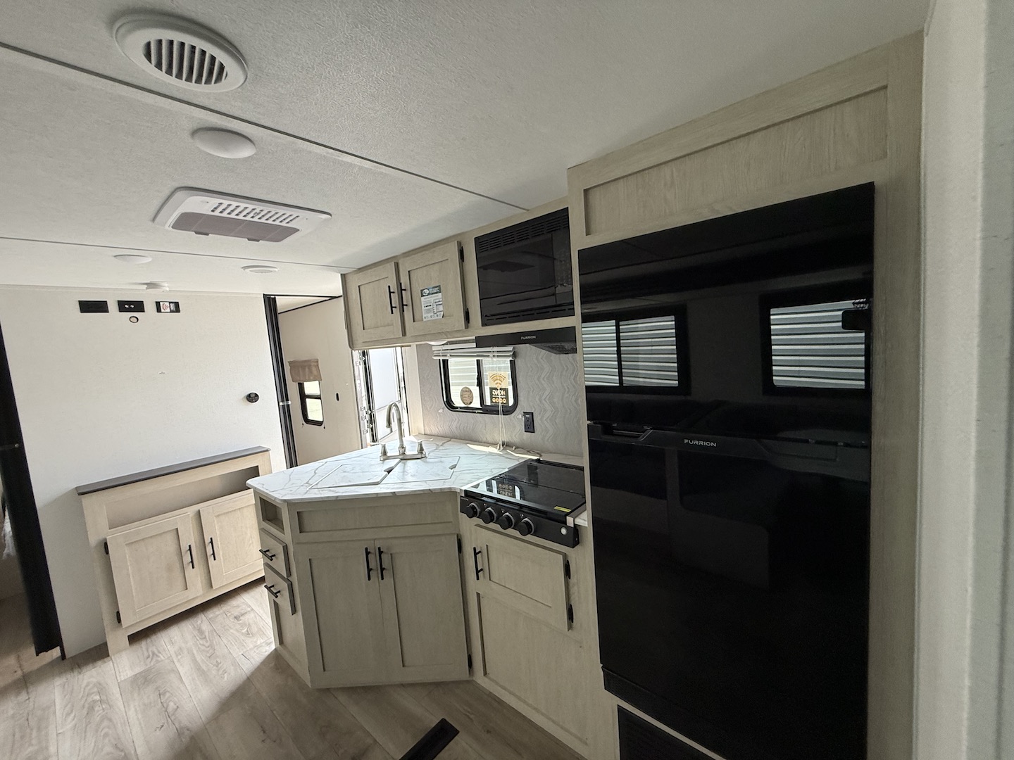 Shasta offers a wide variety of quality affordable lighter weight floorplans that are packed with convenience and value. Designed for couples and families to get away from it all and enjoy some well-deserved rest and relaxation. Shasta has been providing memories to campers for generations. Our well laid out interiors are bright and airy with modern woodgrain cabinetry, LED interior lights and residential styling countertops. You will absolutely love the large stainless steel residential refrigerator. You may want to add the optional free standing dinette with 4 chairs or LED fireplace to spark up your interior.