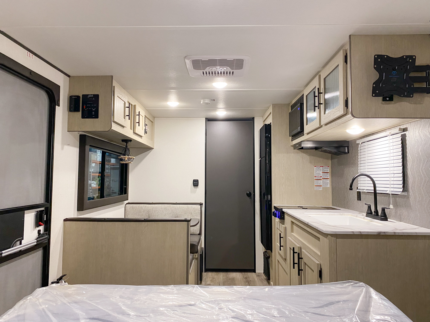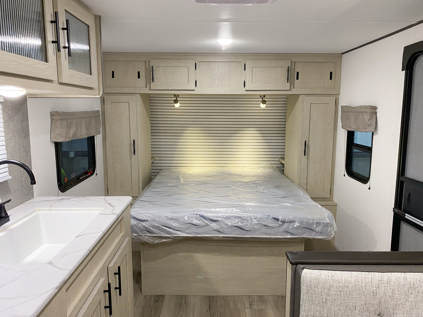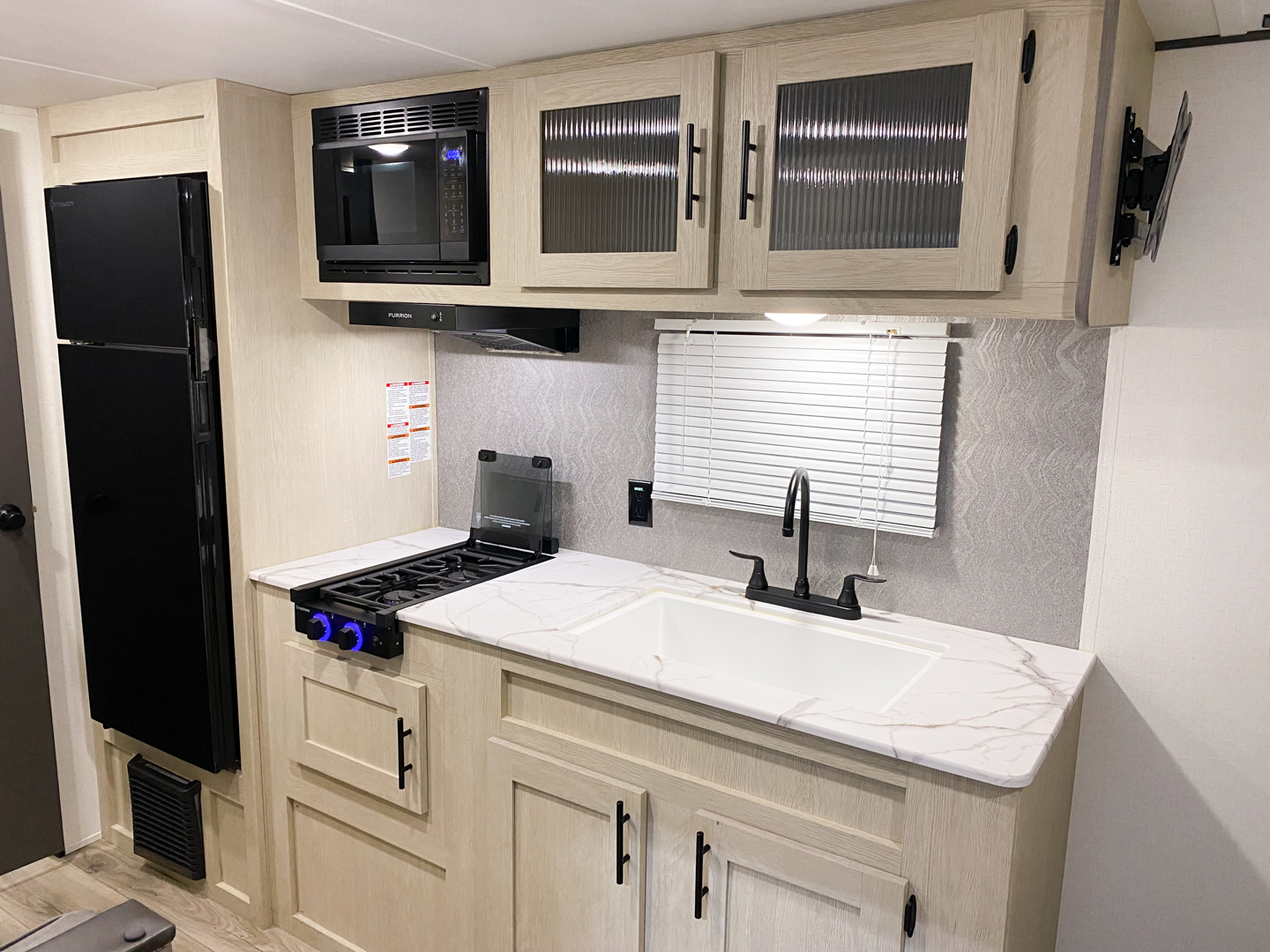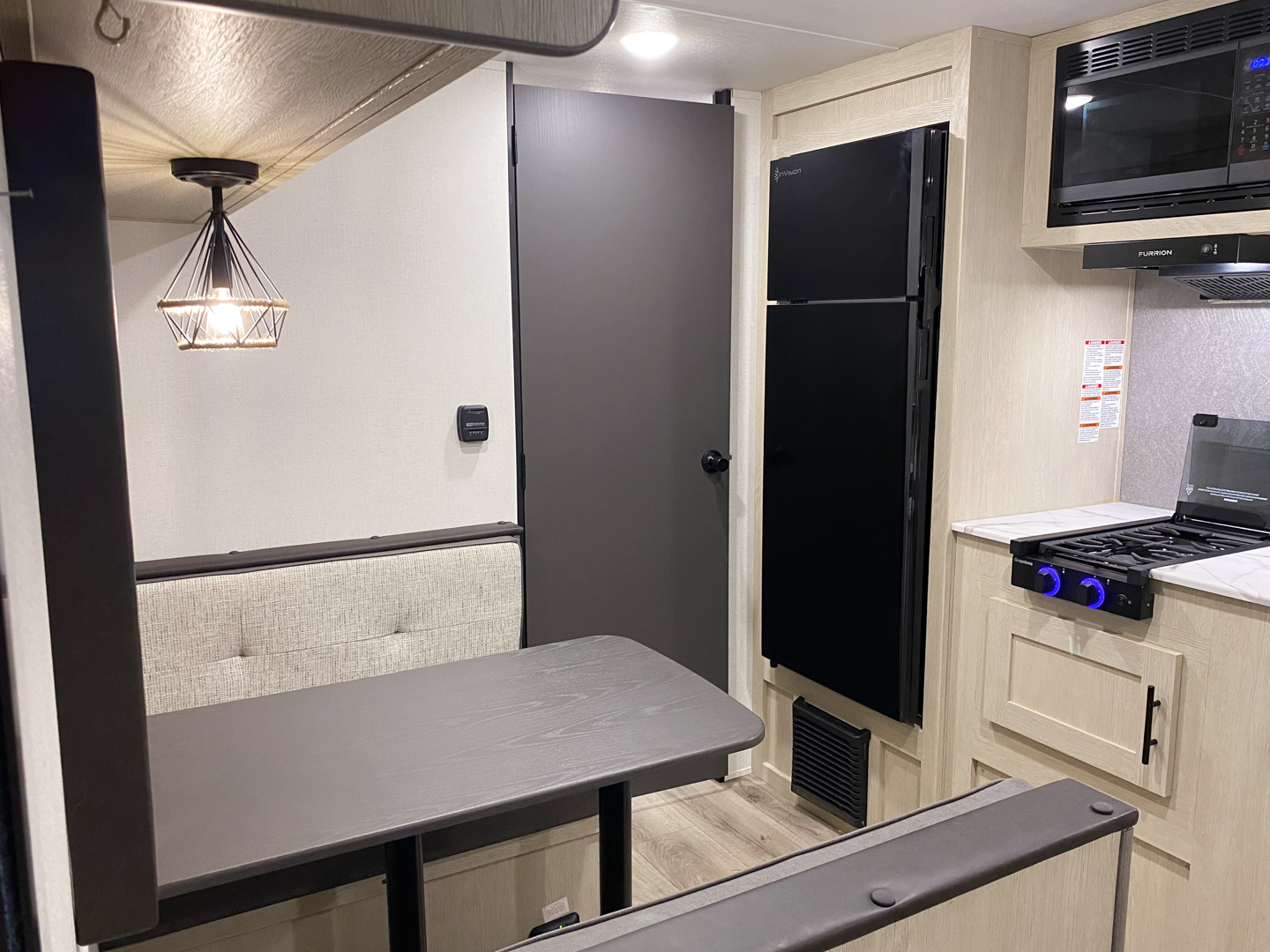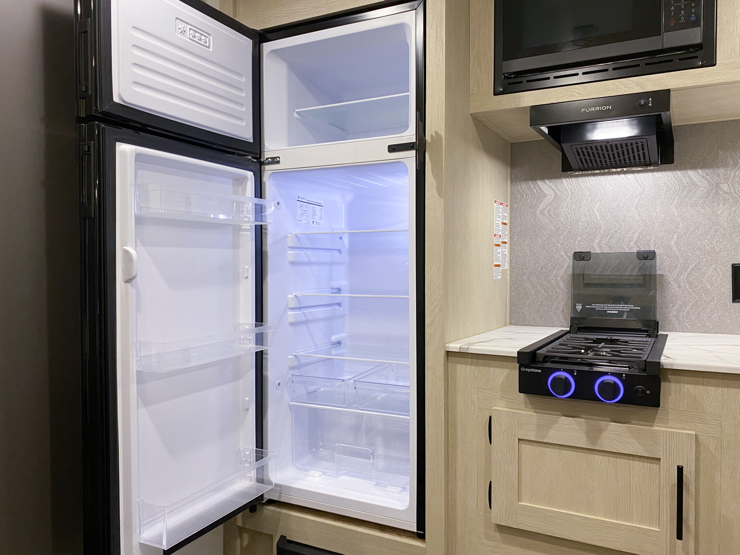 Shasta offers a wide variety of quality affordable lighter weight floorplans that are packed with convenience and value. Designed for couples and families to get away from it all and enjoy some well-deserved rest and relaxation. Shasta has been providing memories to campers for generations. Our well laid out interiors are bright and airy with modern woodgrain cabinetry, LED interior lights and residential styling countertops. You will absolutely love the large stainless steel residential refrigerator. You may want to add the optional free standing dinette with 4 chairs or LED fireplace to spark up your interior.