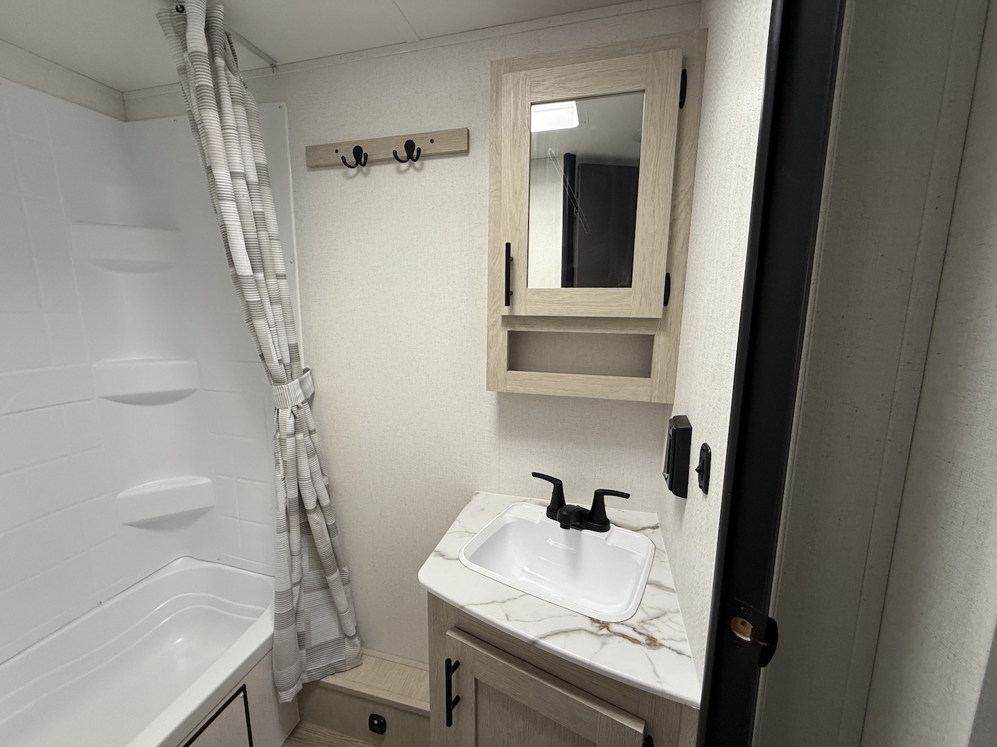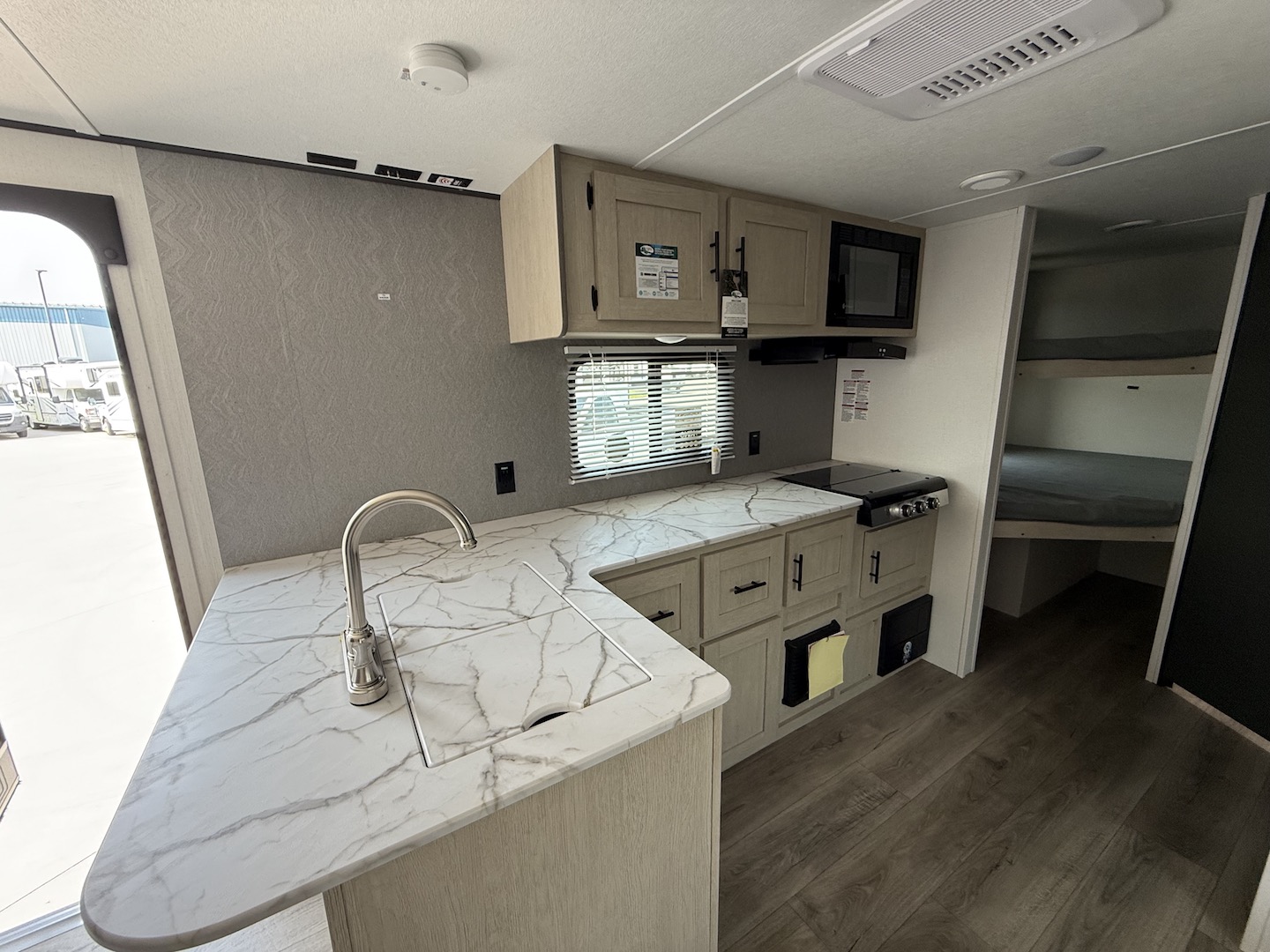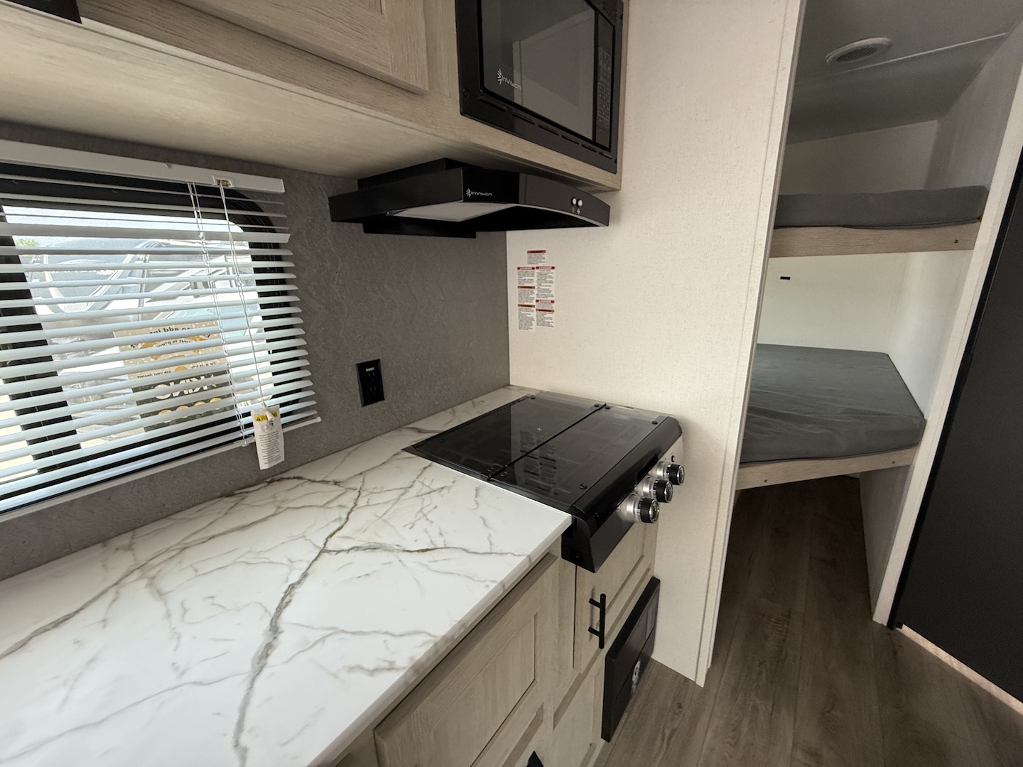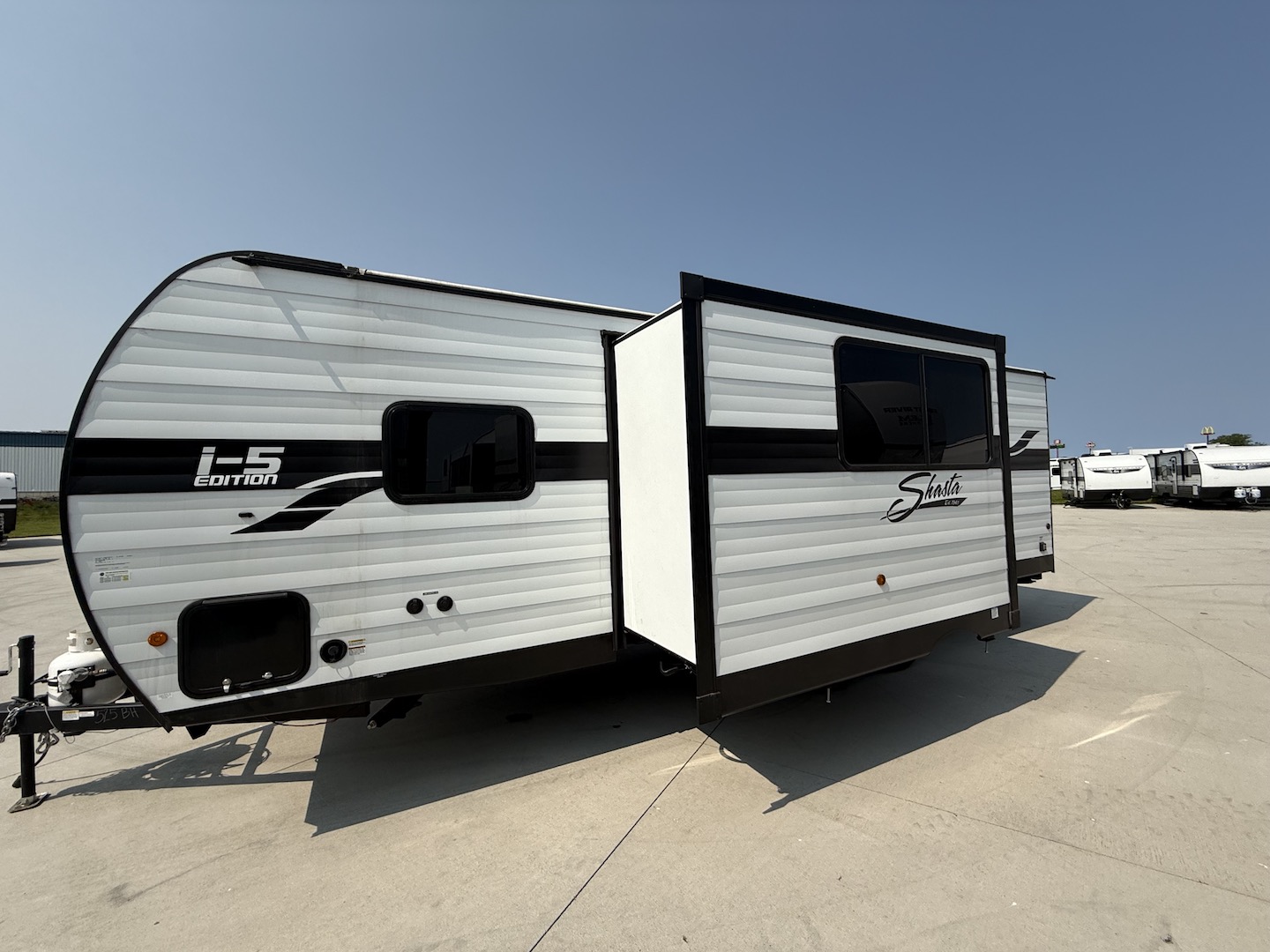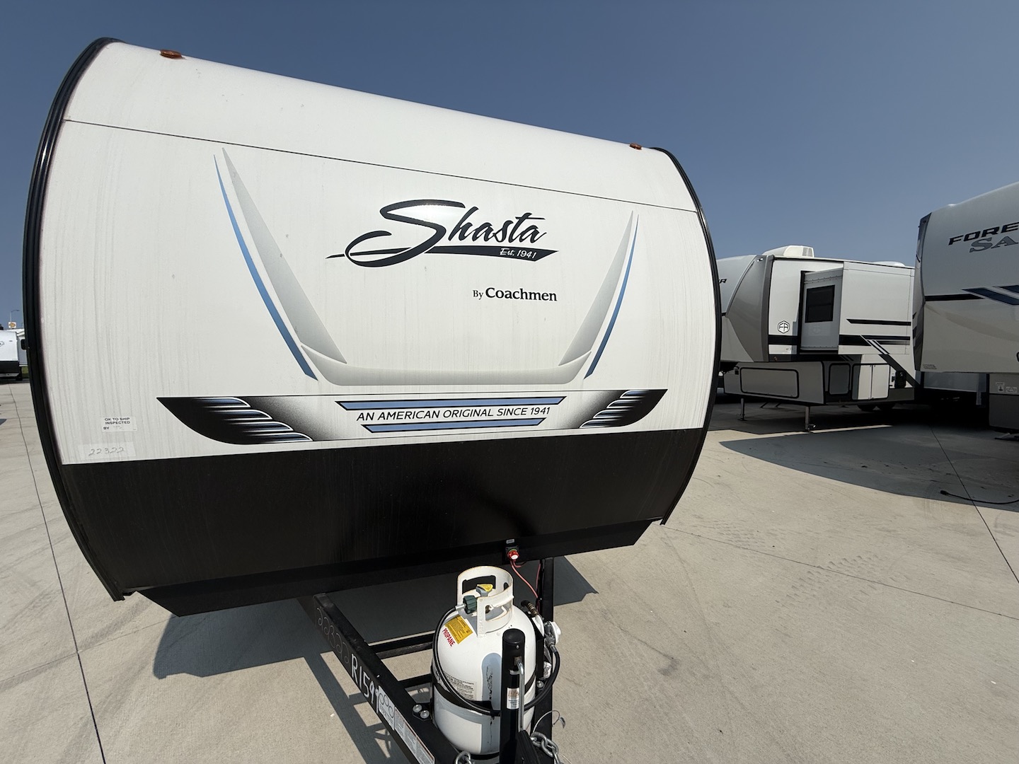 Shasta offers a wide variety of quality affordable lighter weight floorplans that are packed with convenience and value. Designed for couples and families to get away from it all and enjoy some well-deserved rest and relaxation. Shasta has been providing memories to campers for generations. Our well laid out interiors are bright and airy with modern woodgrain cabinetry, LED interior lights and residential styling countertops. You will absolutely love the large stainless steel residential refrigerator. You may want to add the optional free standing dinette with 4 chairs or LED fireplace to spark up your interior.