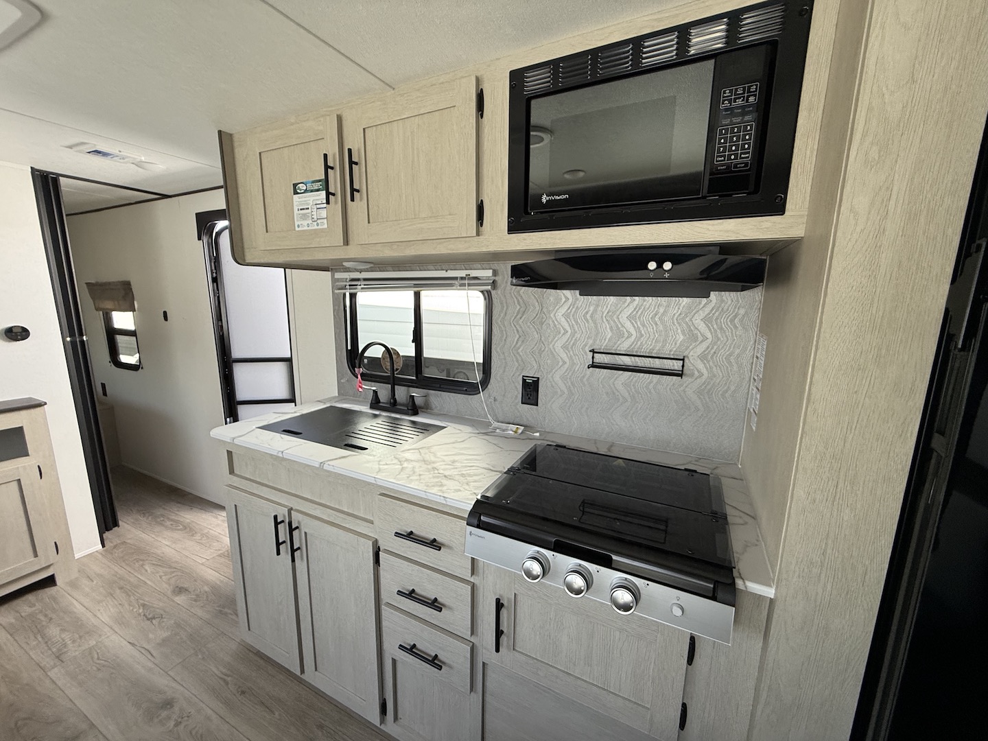 Shasta offers a wide variety of quality affordable lighter weight floorplans that are packed with convenience and value. Designed for couples and families to get away from it all and enjoy some well-deserved rest and relaxation. Shasta has been providing memories to campers for generations. Our well laid out interiors are bright and airy with modern woodgrain cabinetry, LED interior lights and residential styling countertops. You will absolutely love the large stainless steel residential refrigerator. You may want to add the optional free standing dinette with 4 chairs or LED fireplace to spark up your interior.