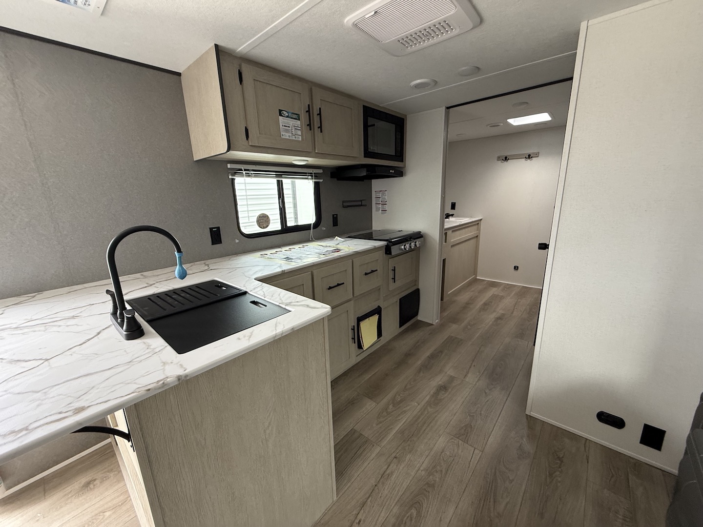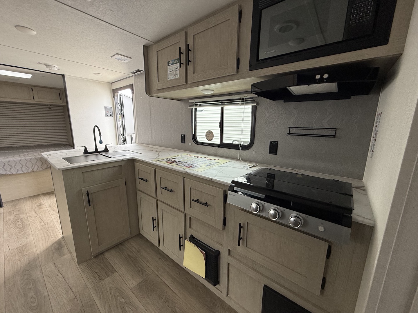 Shasta offers a wide variety of quality affordable lighter weight floorplans that are packed with convenience and value. Designed for couples and families to get away from it all and enjoy some well-deserved rest and relaxation. Shasta has been providing memories to campers for generations. Our well laid out interiors are bright and airy with modern woodgrain cabinetry, LED interior lights and residential styling countertops. You will absolutely love the large stainless steel residential refrigerator. You may want to add the optional free standing dinette with 4 chairs or LED fireplace to spark up your interior.