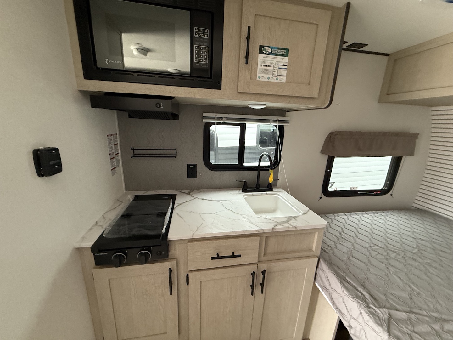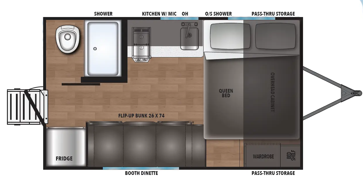 Shasta offers a wide variety of quality affordable lighter weight floorplans that are packed with convenience and value. Designed for couples and families to get away from it all and enjoy some well-deserved rest and relaxation. Shasta has been providing memories to campers for generations. Our well laid out interiors are bright and airy with modern woodgrain cabinetry, LED interior lights and residential styling countertops. You will absolutely love the large stainless steel residential refrigerator. You may want to add the optional free standing dinette with 4 chairs or LED fireplace to spark up your interior.