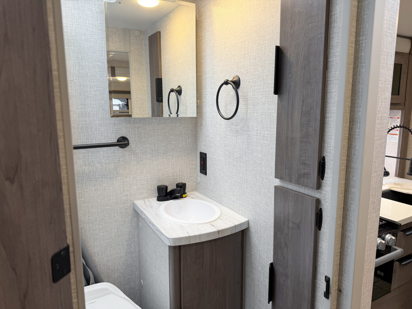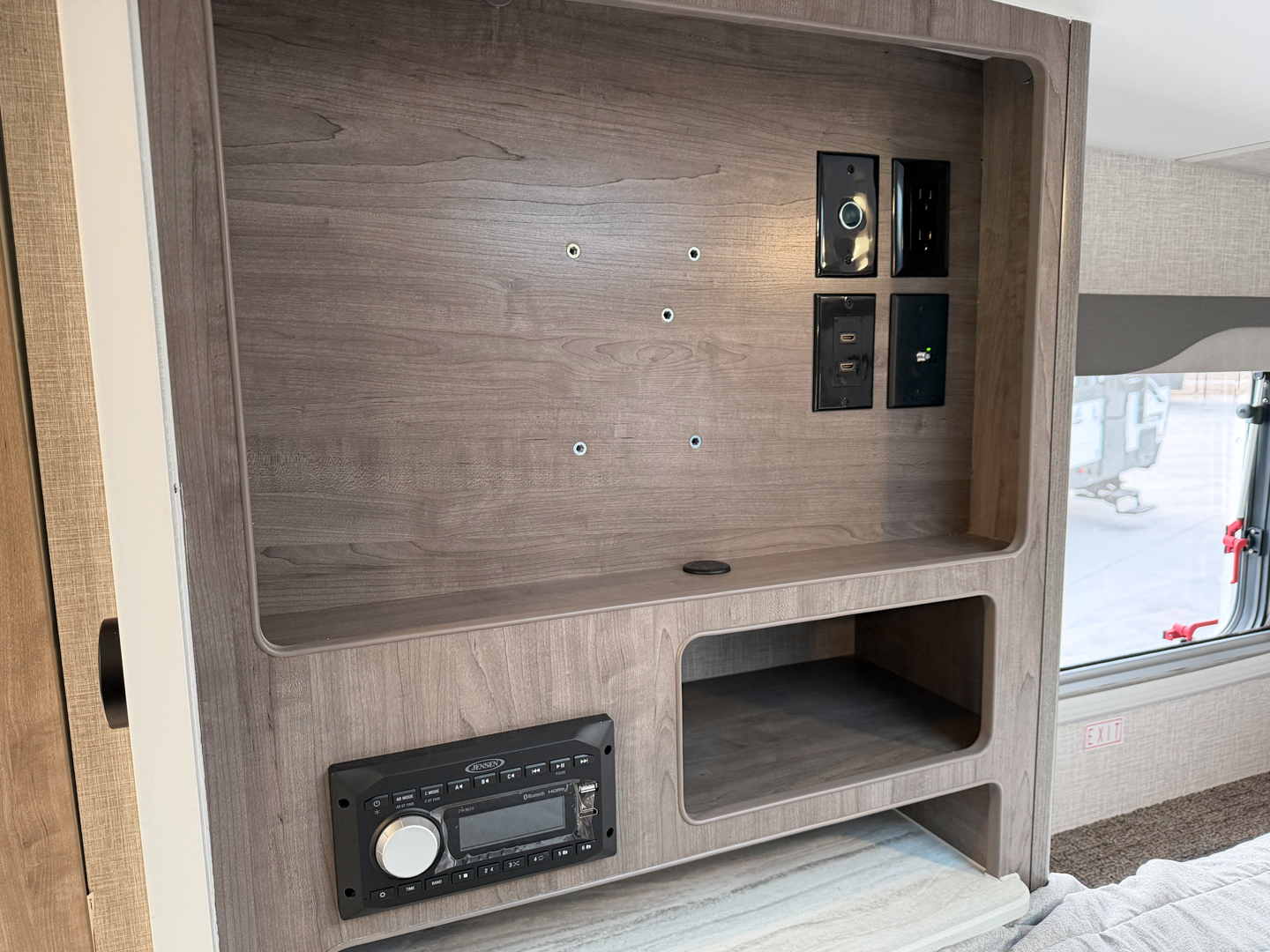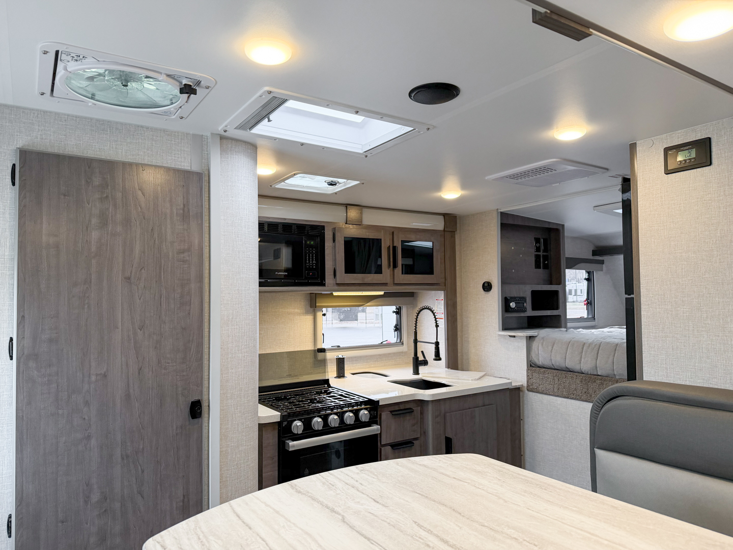Other key enhancements included as standard equipment include; full view tinted thermopane euro windows that open nearly horizontal for maximum airflow, Bluetooth audio system with app control, solid surface galley countertop, Four Season Comfort Technology package, EuroPly cabinet construction, and a choice of three beautiful decors!