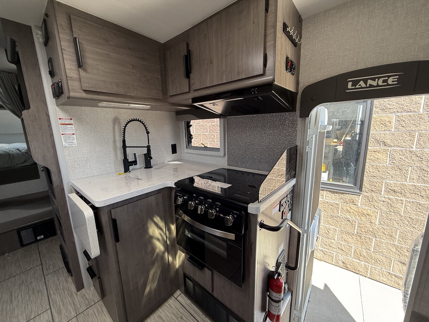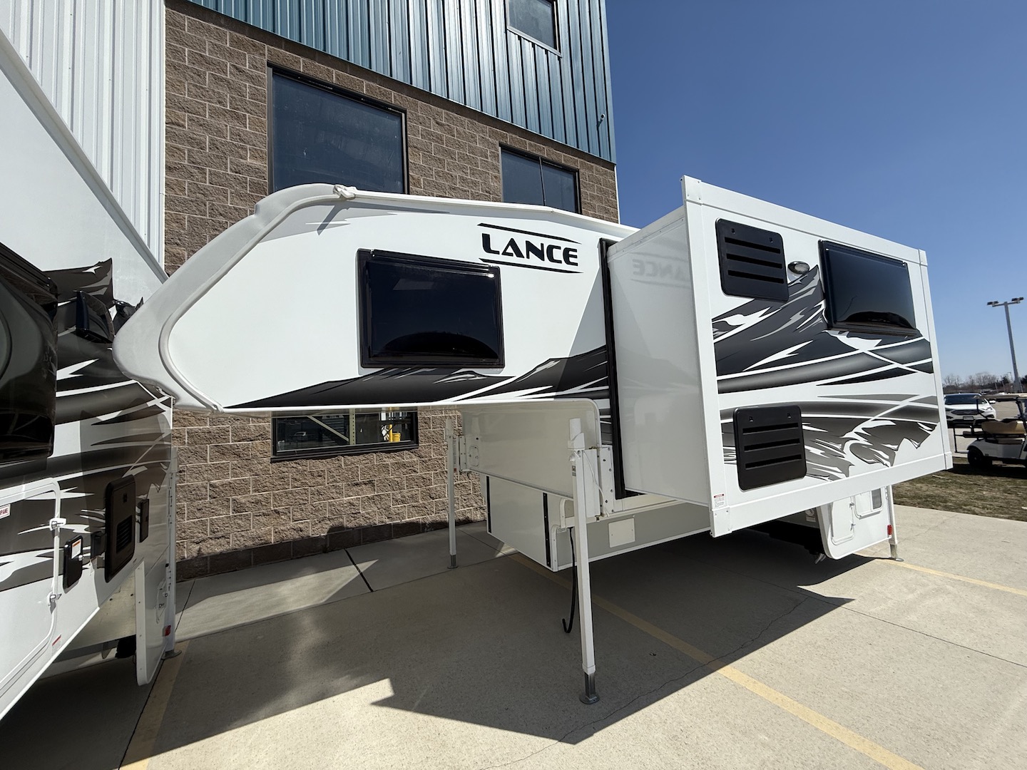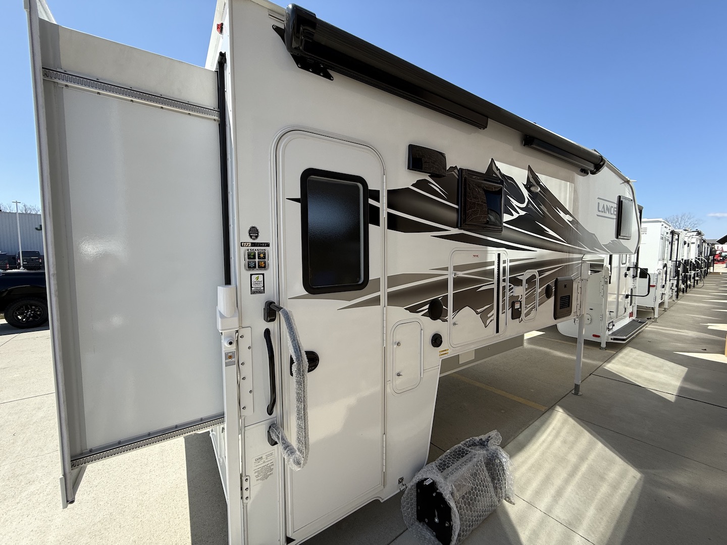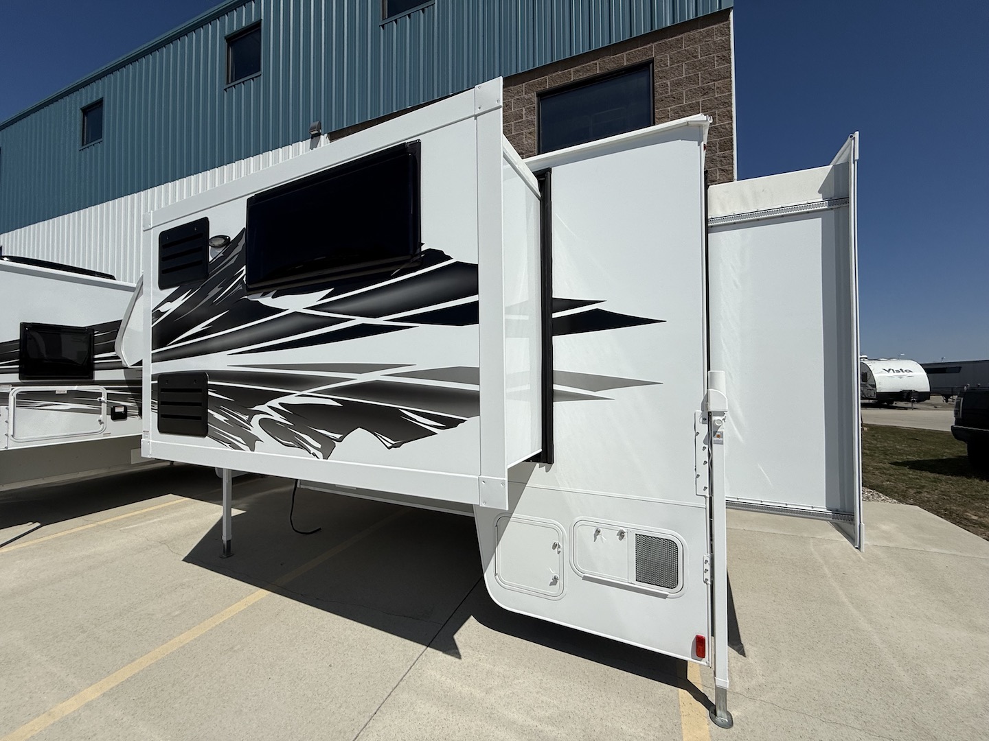 The big news comes as the rear wall slides out with a sofa and leg extension “kick-ups” for your relaxation. With both slides open, the space is cavernous. The 1172 is the definition of the ultimate flagship truck camper.