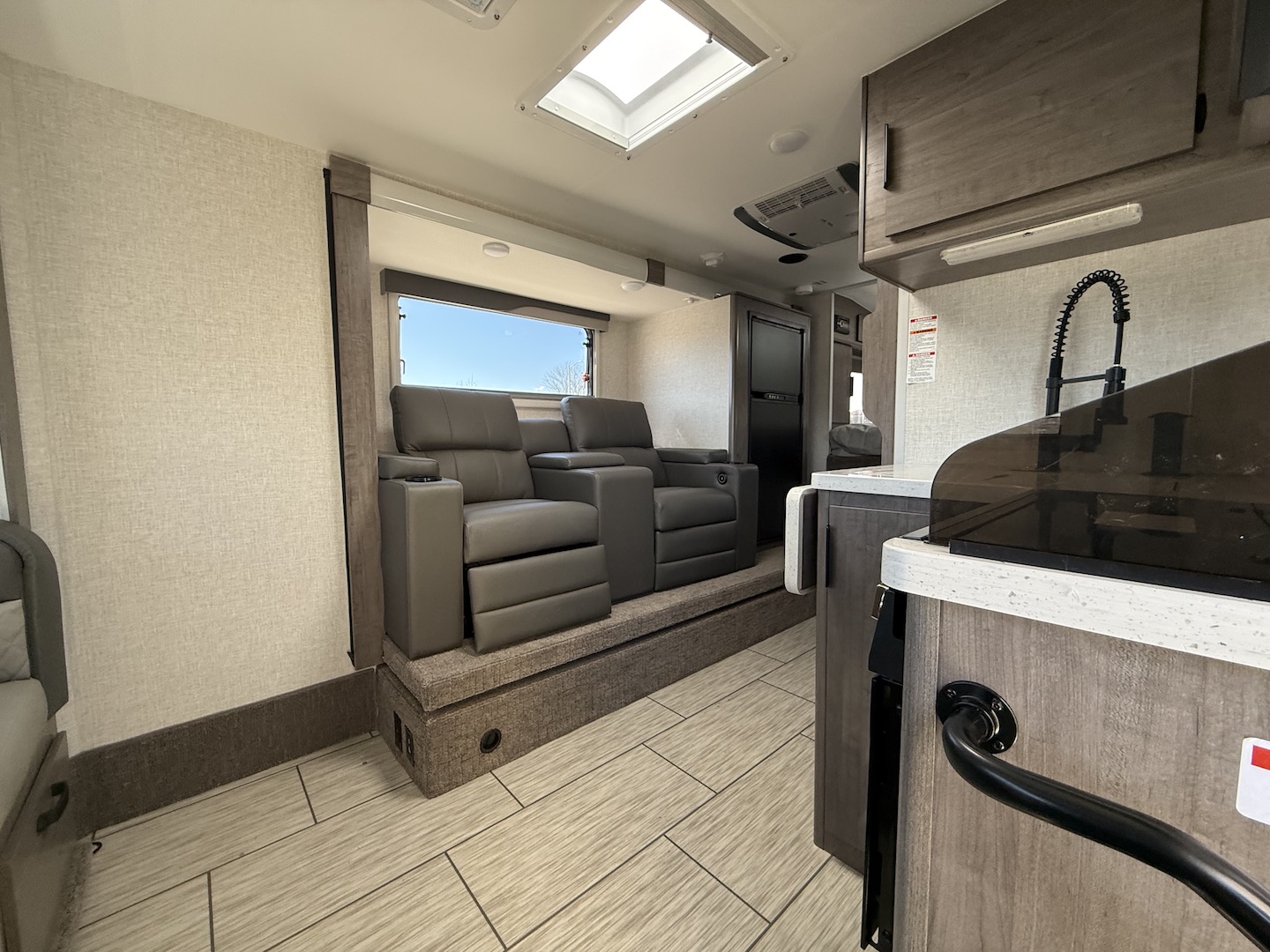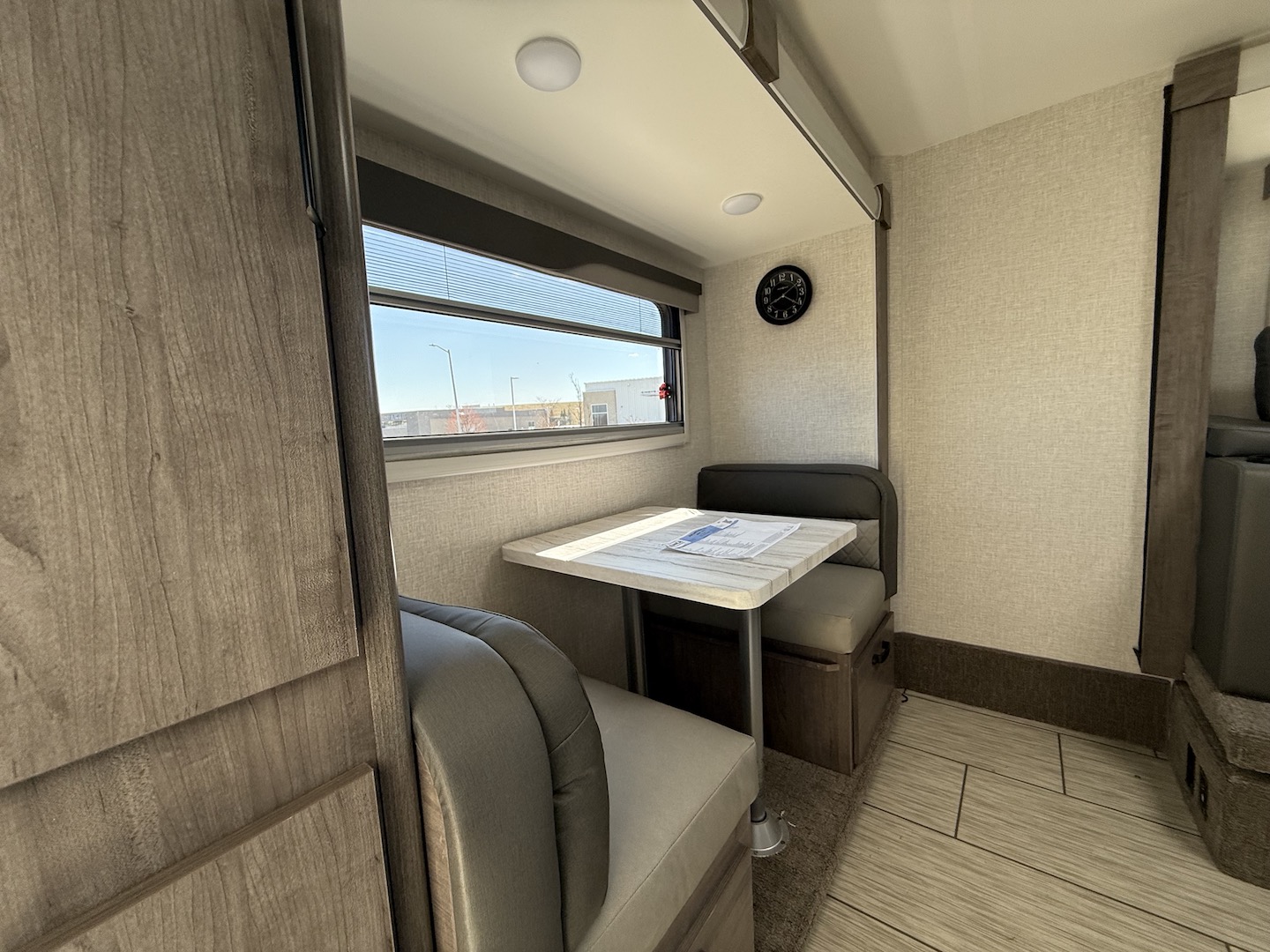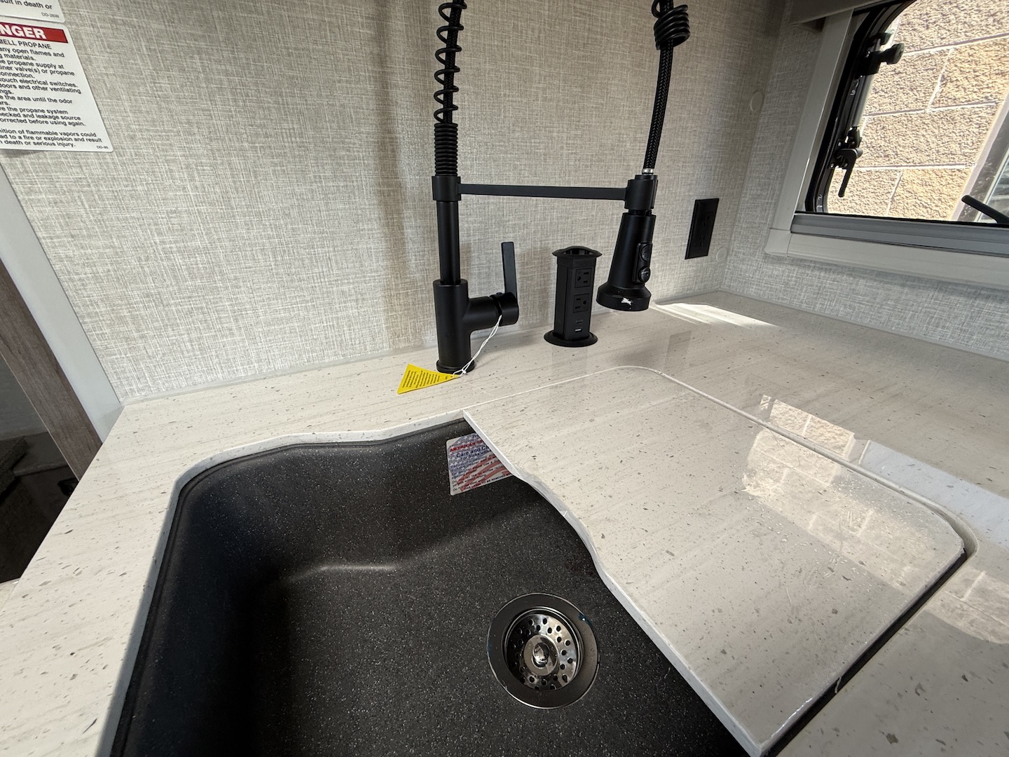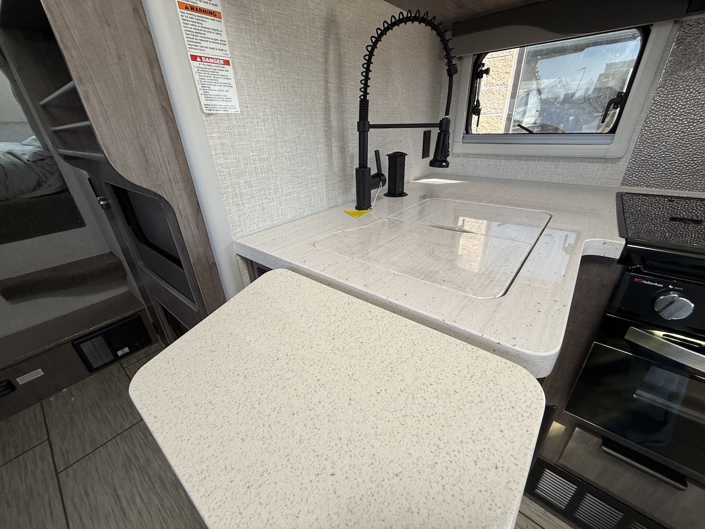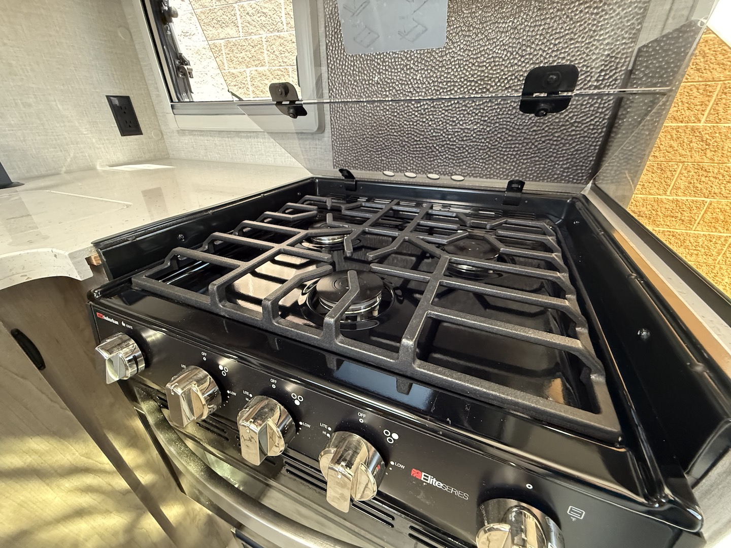 The big news comes as the rear wall slides out with a sofa and leg extension “kick-ups” for your relaxation. With both slides open, the space is cavernous. The 1172 is the definition of the ultimate flagship truck camper.