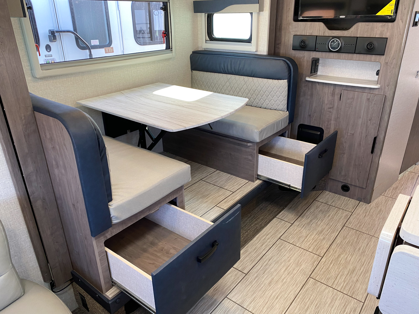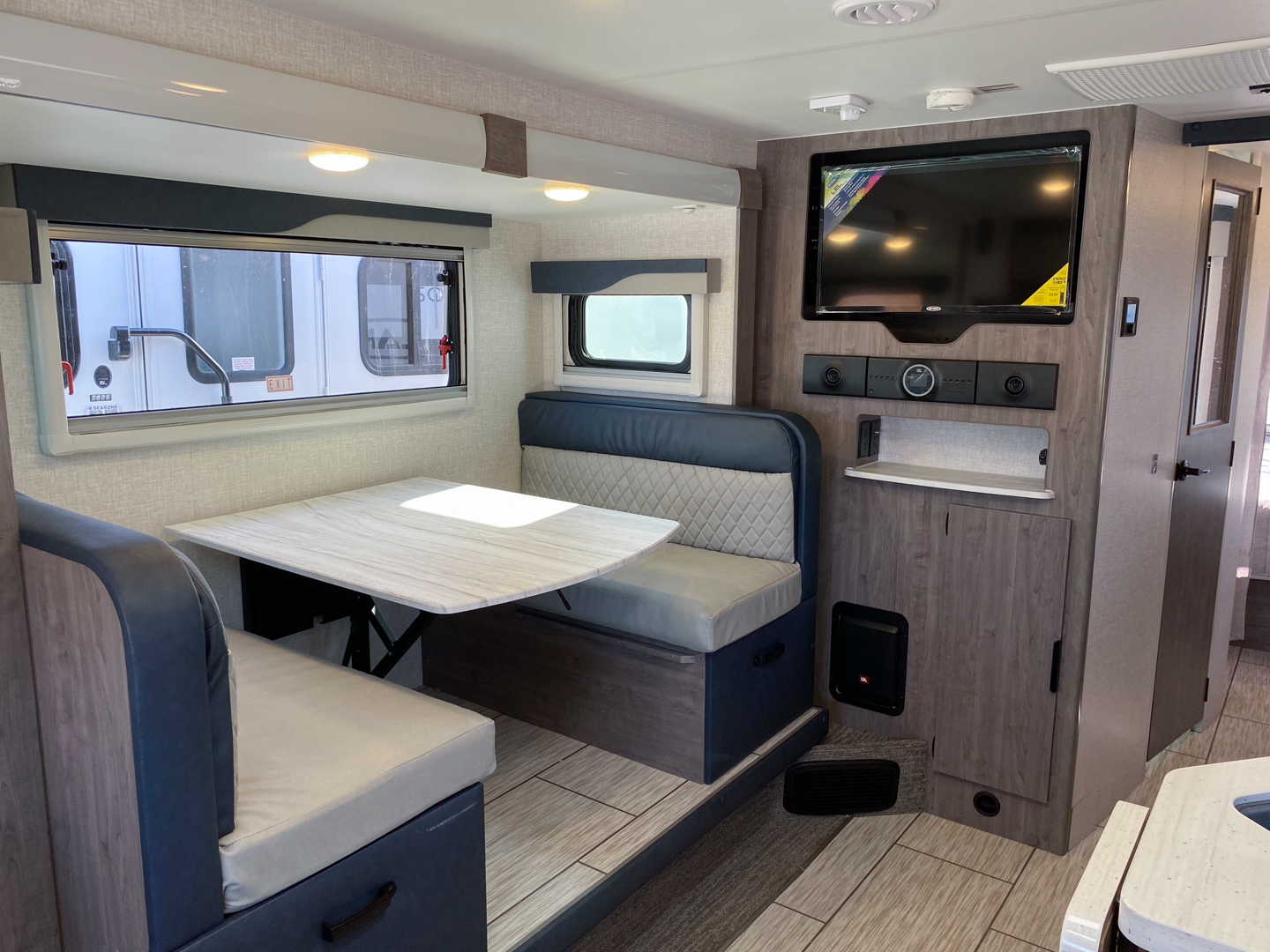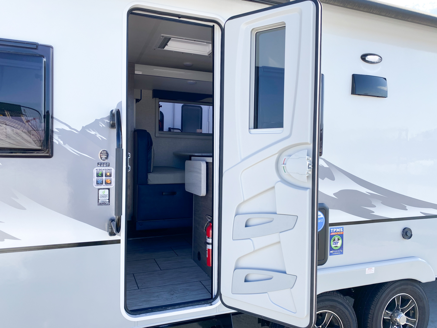 Our owners are hard-core avid RV enthusiasts, and we know they expect more functionality than the weekend warrior. But the weekender reaps the benefits too with 2565! We’re talking more than ample storage, a booth-style dinette slide-out, and a full separating door between living and sleeping/lavatory space; the 2565 just might be our most “livable” residential queen bed floor plan.