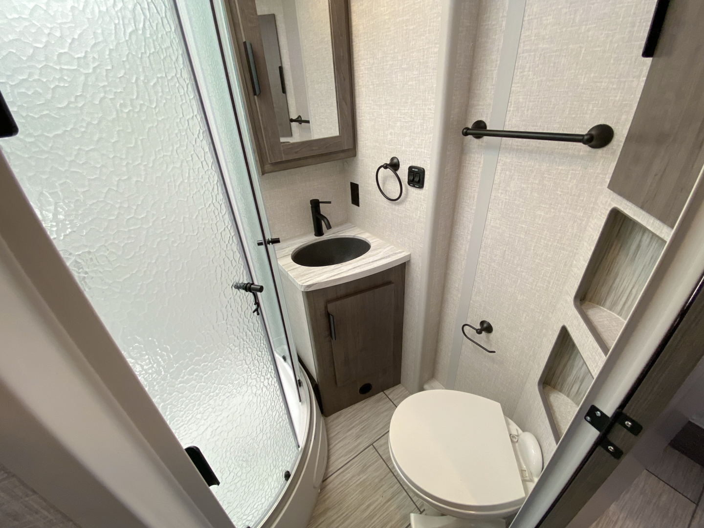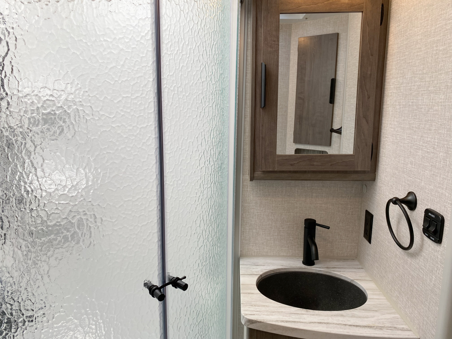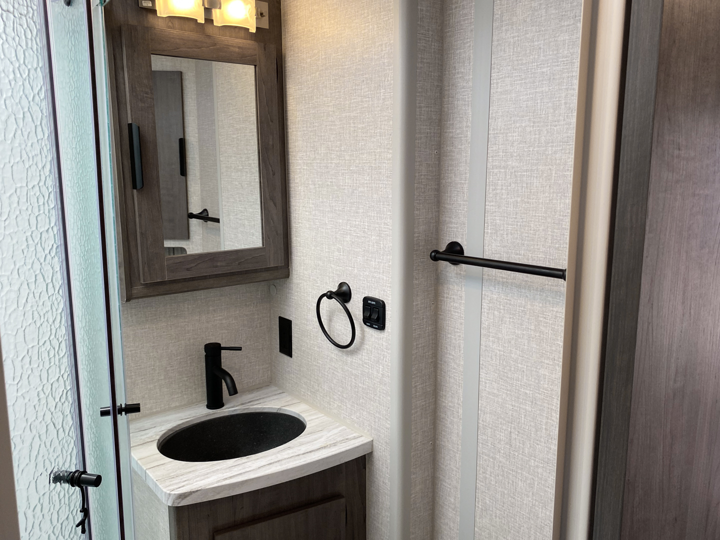 Our owners are hard-core avid RV enthusiasts, and we know they expect more functionality than the weekend warrior. But the weekender reaps the benefits too with 2565! We’re talking more than ample storage, a booth-style dinette slide-out, and a full separating door between living and sleeping/lavatory space; the 2565 just might be our most “livable” residential queen bed floor plan.