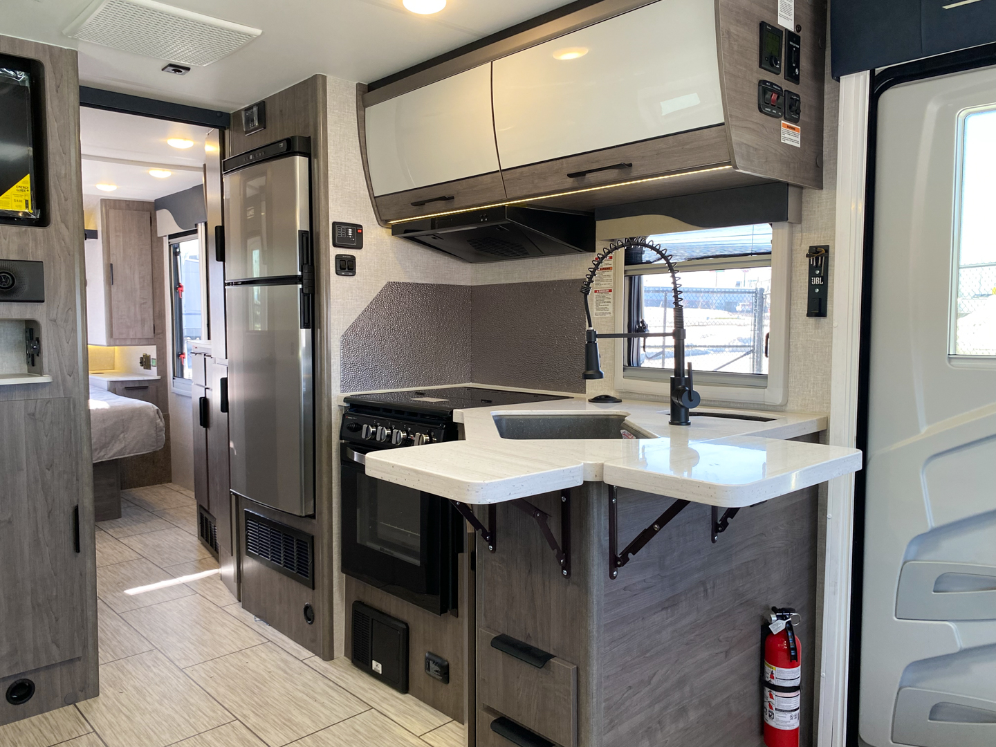 We know the weather is not always optimal and that no matter what the day brings, it sure is nice to have a comfortable place to relax while RVing. That’s why our designers and engineers sourced and fit a floor plan entirely around accommodating a reclined position! The 2565 centers around a rear designed for taking a load off, with dual XL chairs and full rear and perimeter windows. Face the chairs mid-ship and enjoy a movie, game, or time with company, or flip them around and enjoy the view from the comfort and quality of your Lance interior.