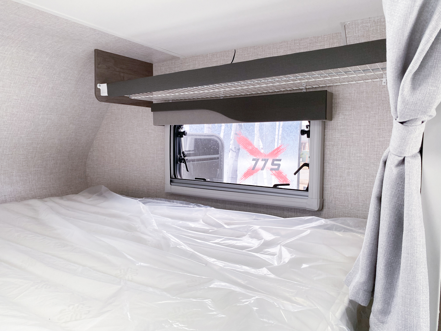 Highlights include a 12v refrigerator, real 60″x80″ queen size east/ west bed, porta potti and 23Zero exterior shower enclosure.