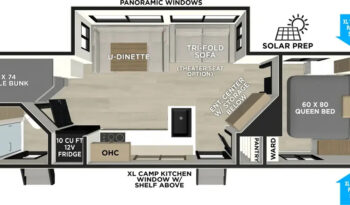 No corners were cut in the 25RBHL. The theater seat (facing the entertainment center) and full-sized dinette separate the best-in-class bathroom and bedroom. 36″ wide sliding barn doors offer complete privacy, or the ability to open the 25RBHL up from front to back. This camper also offers a refrigerator outside underneath the awning.