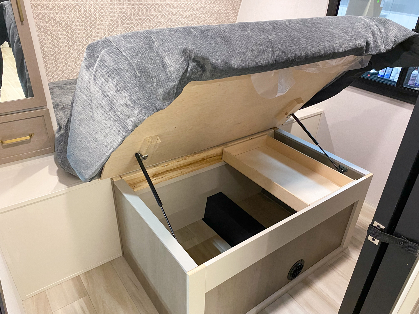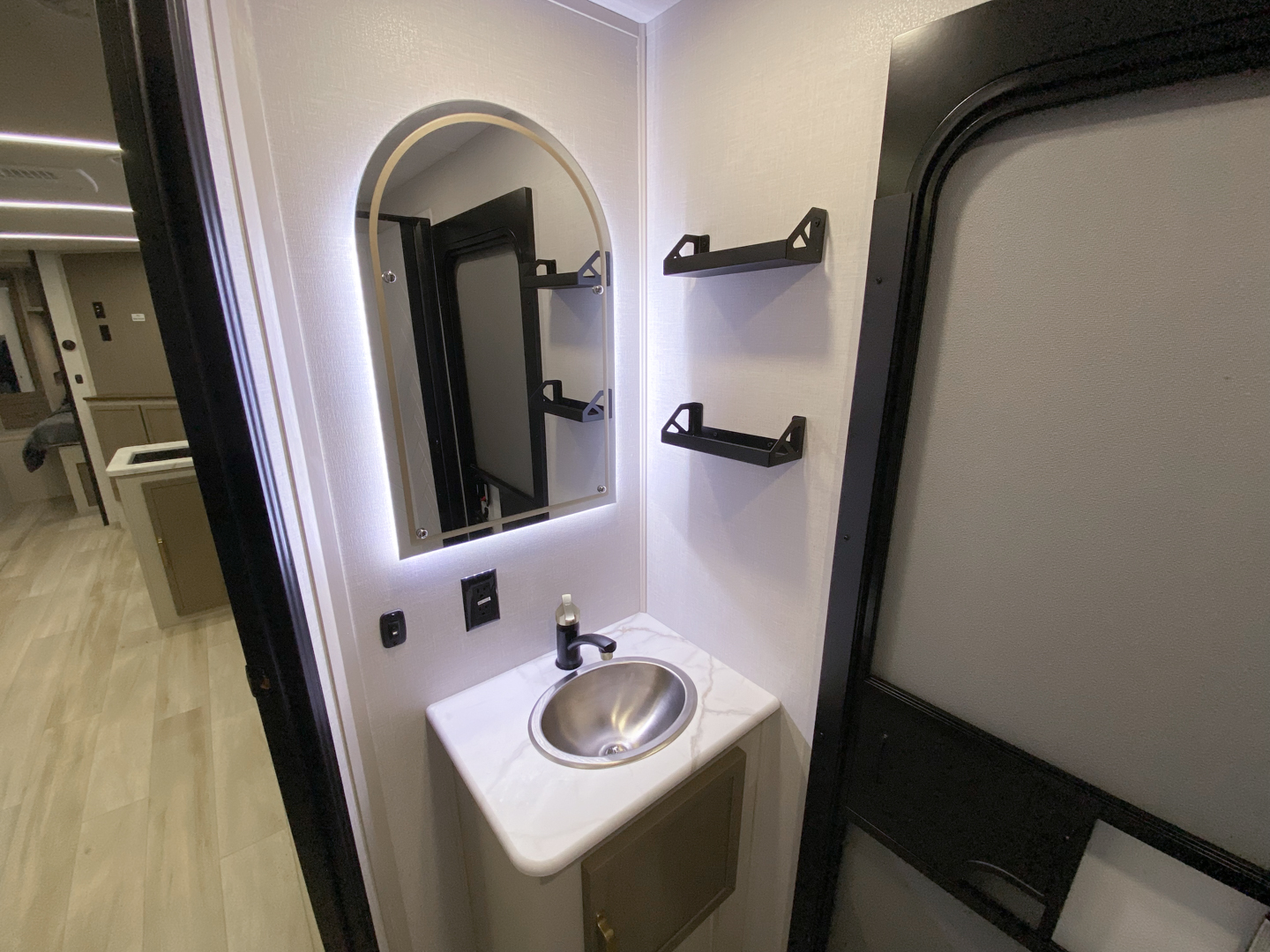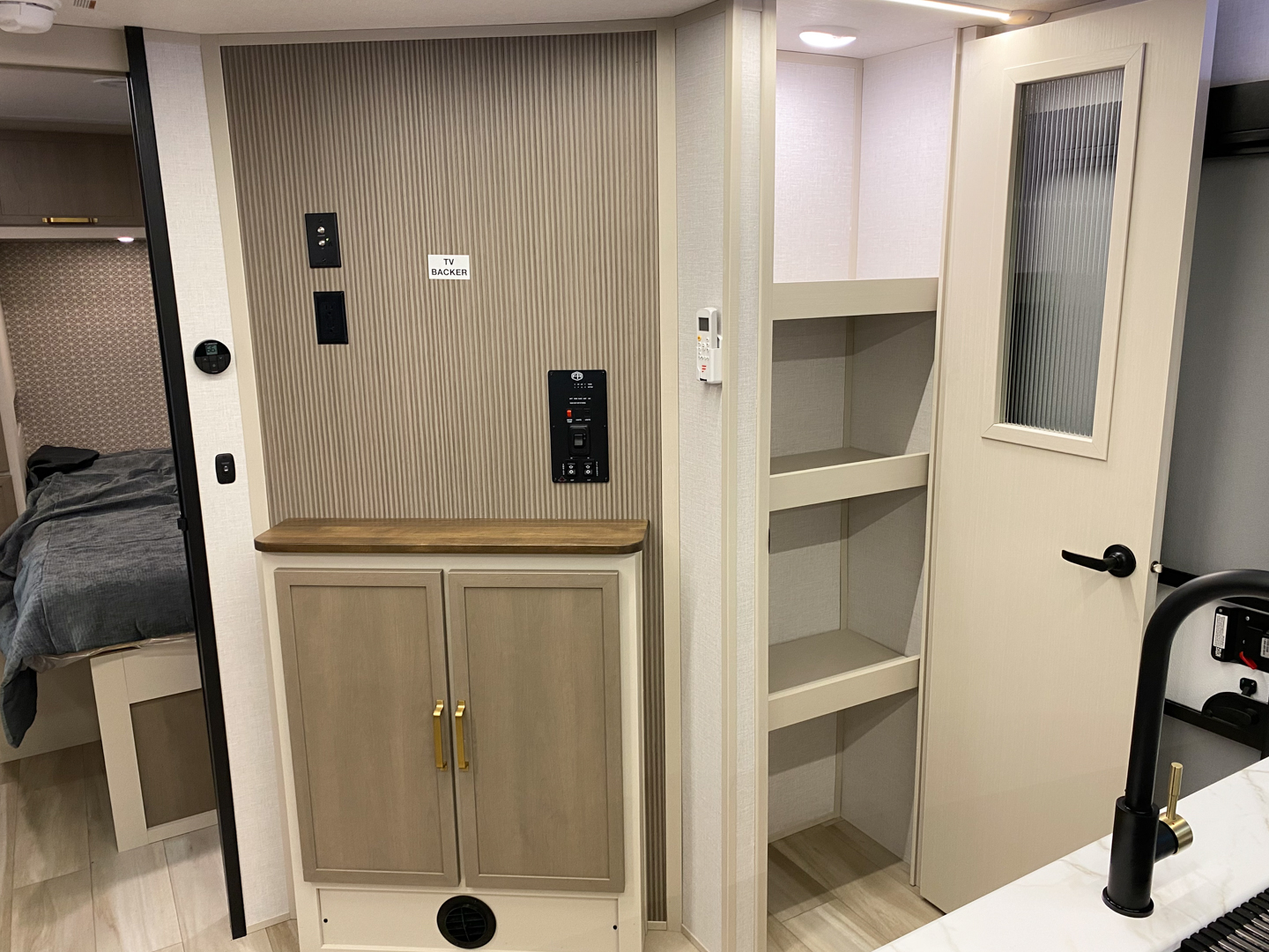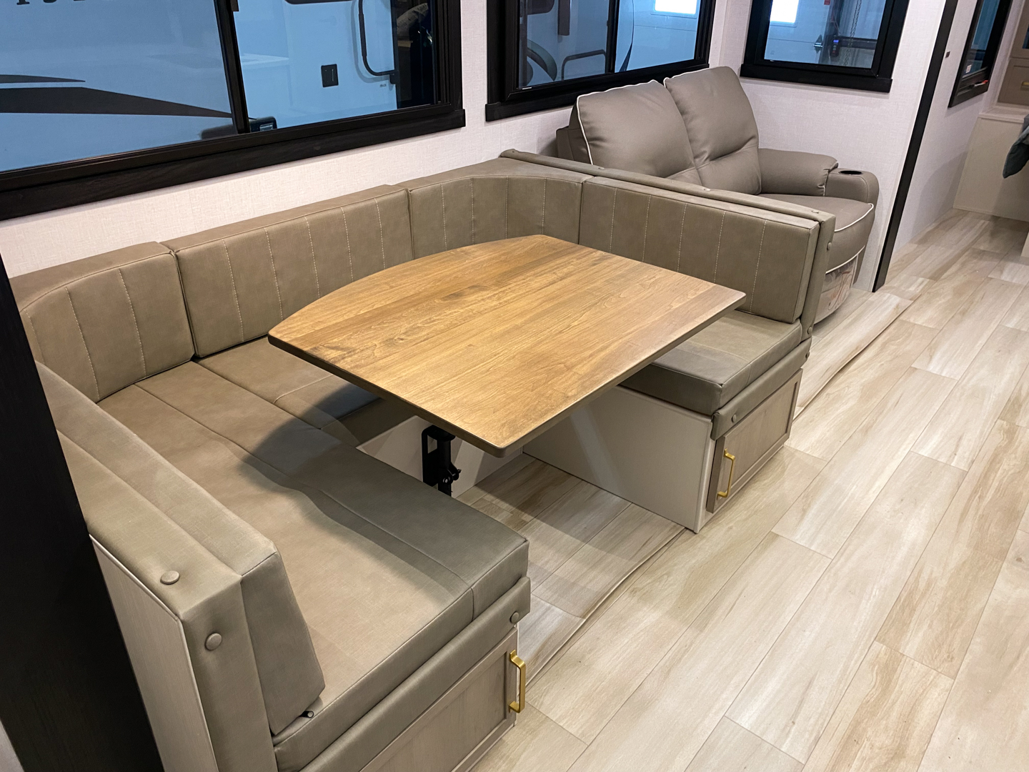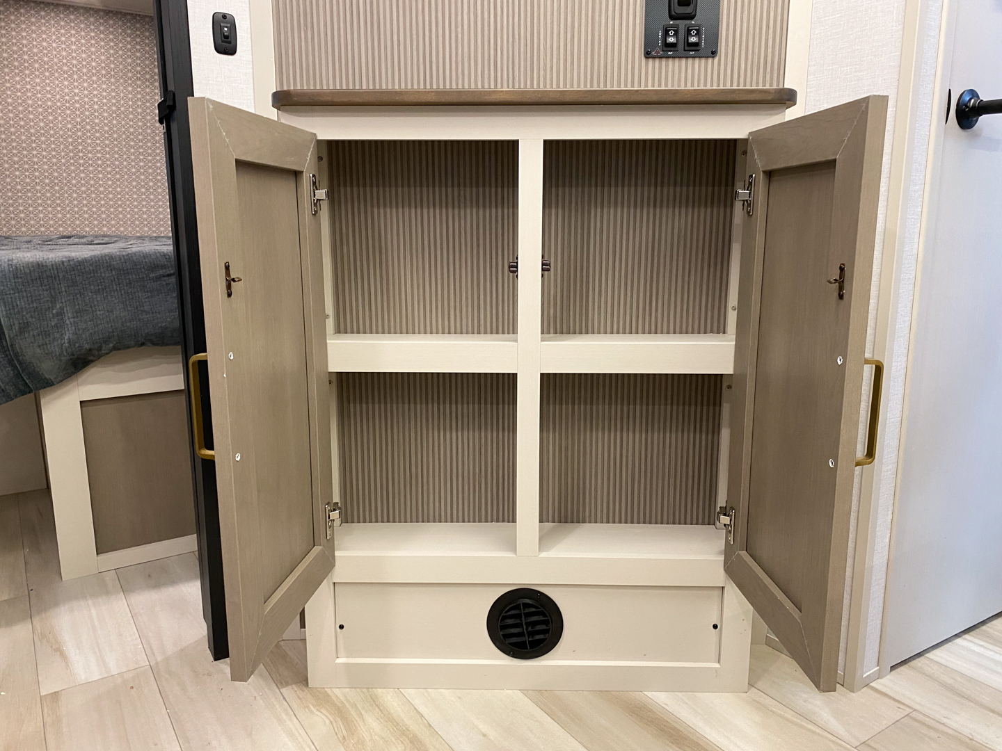 No corners were cut in the 25RBHL. The theater seat (facing the entertainment center) and full-sized dinette separate the best-in-class bathroom and bedroom. 36″ wide sliding barn doors offer complete privacy, or the ability to open the 25RBHL up from front to back. This camper also offers a refrigerator outside underneath the awning.