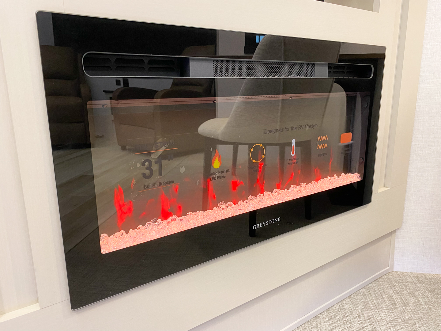 • 31″ Glass Mirror Front Electric Fireplace (36″ in 378FL)