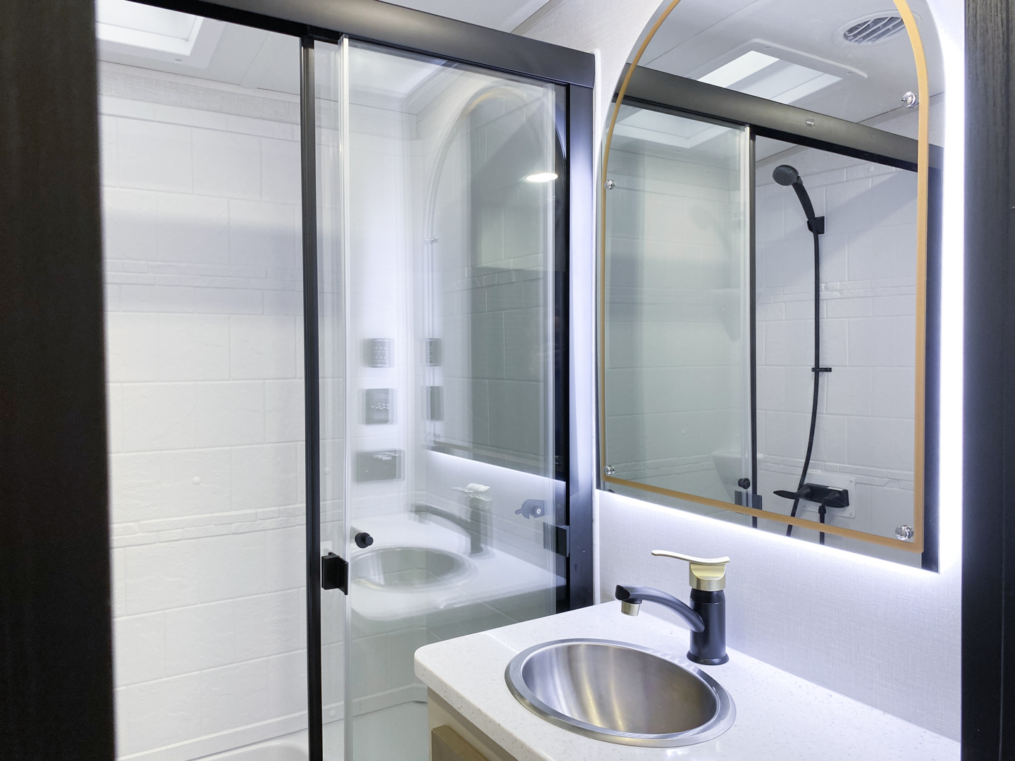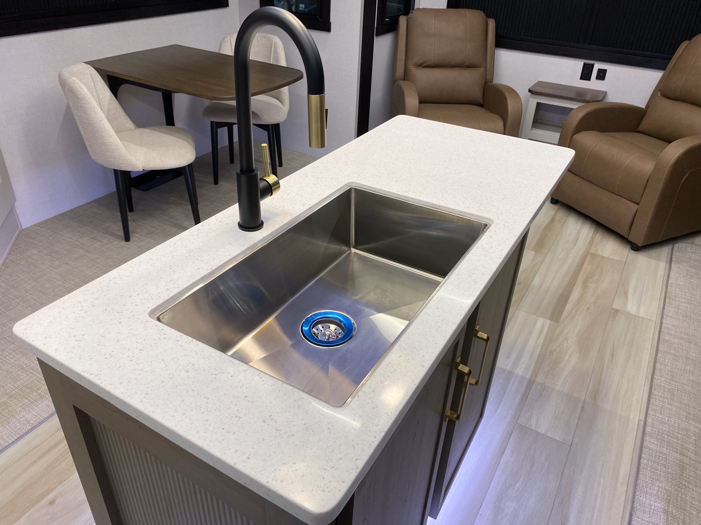• Gold-Accented Faucets with Stainless Steel Sinks in all Bathrooms