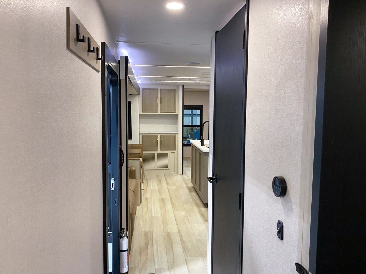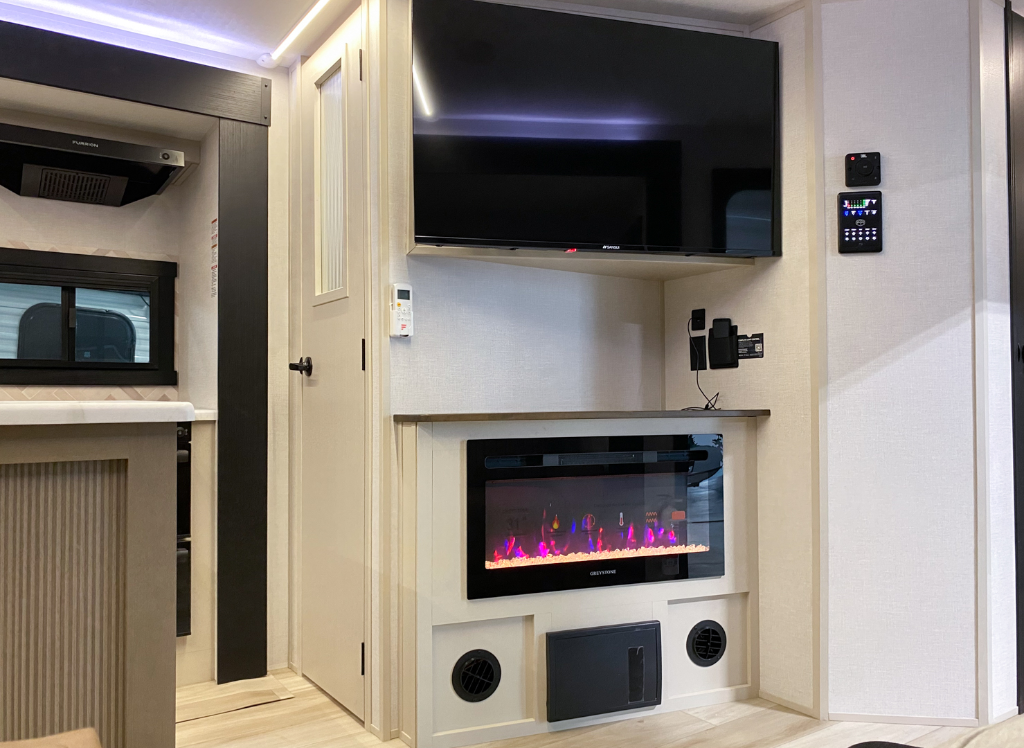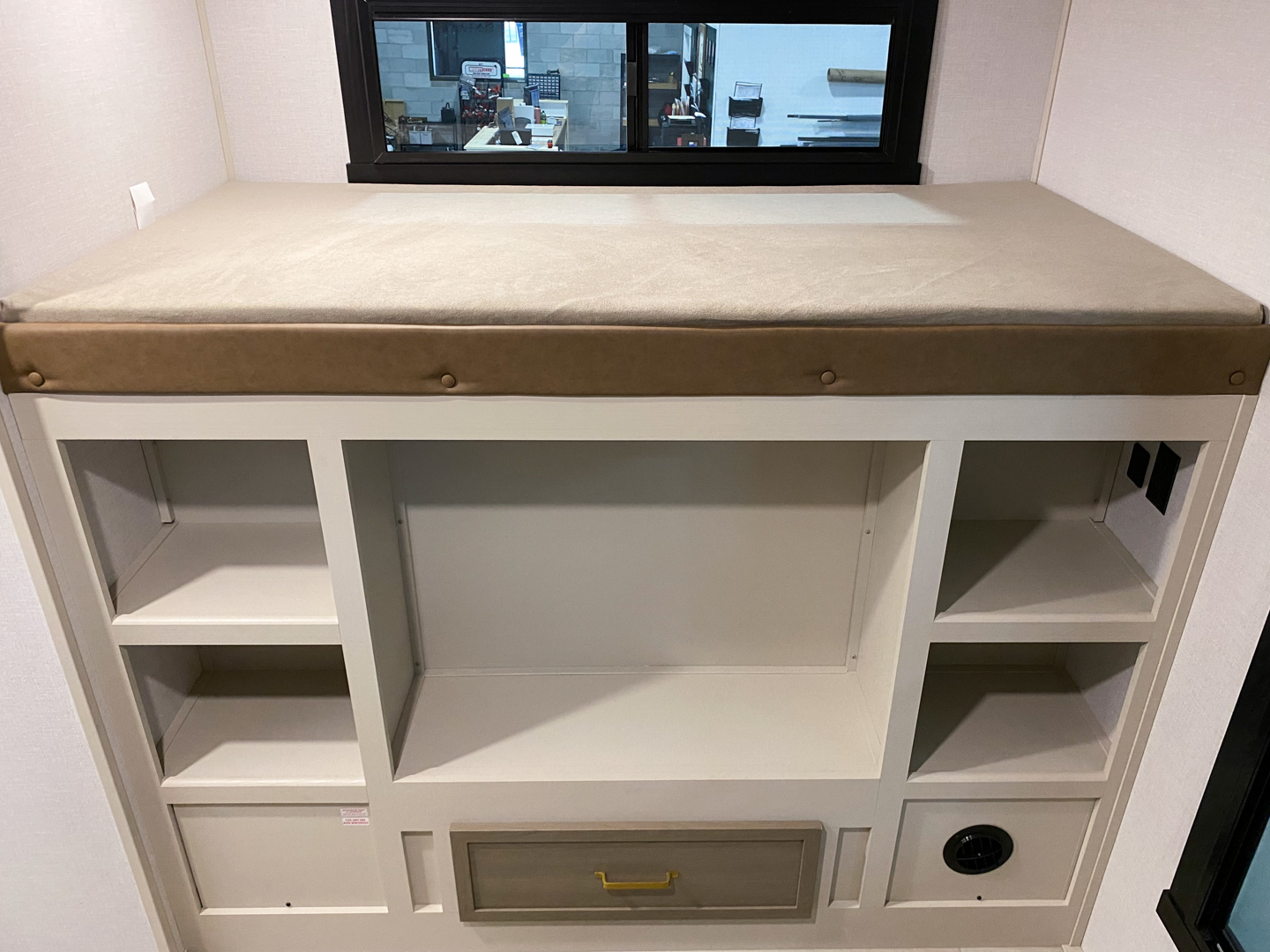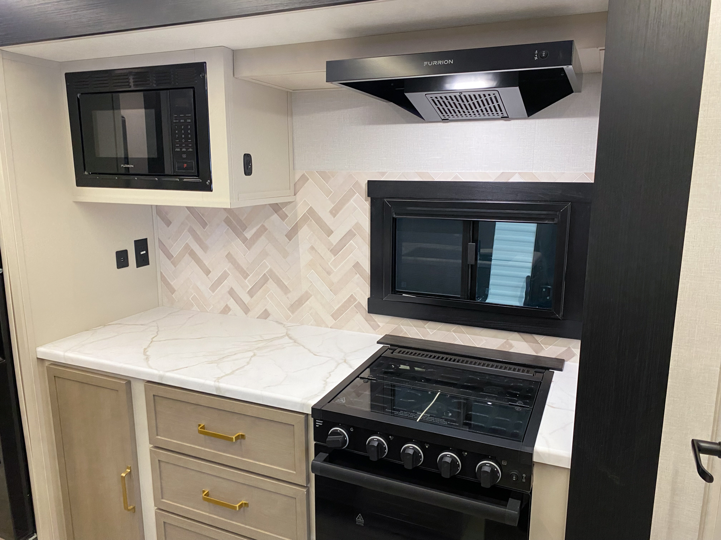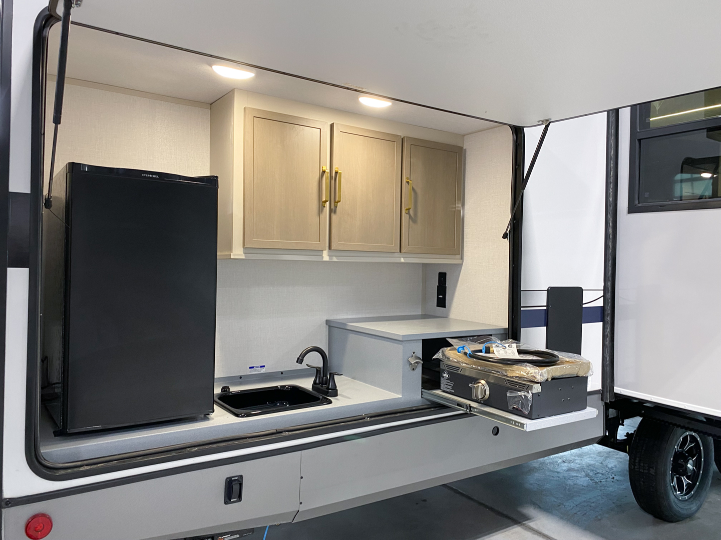 Camping with your family shouldn’t require you to sacrifice your living space. With the 310BHI, you don’t have to. This floorplan offers a MASSIVE outside kitchen, direct viewing of your campsite, a standard 50″ TV, and a pantry most houses would dream of. If that wasn’t enough, the 310BHI comes standard with stackable washer/dryer prep thoughtfully located in the bedroom closet/wardrobe.
