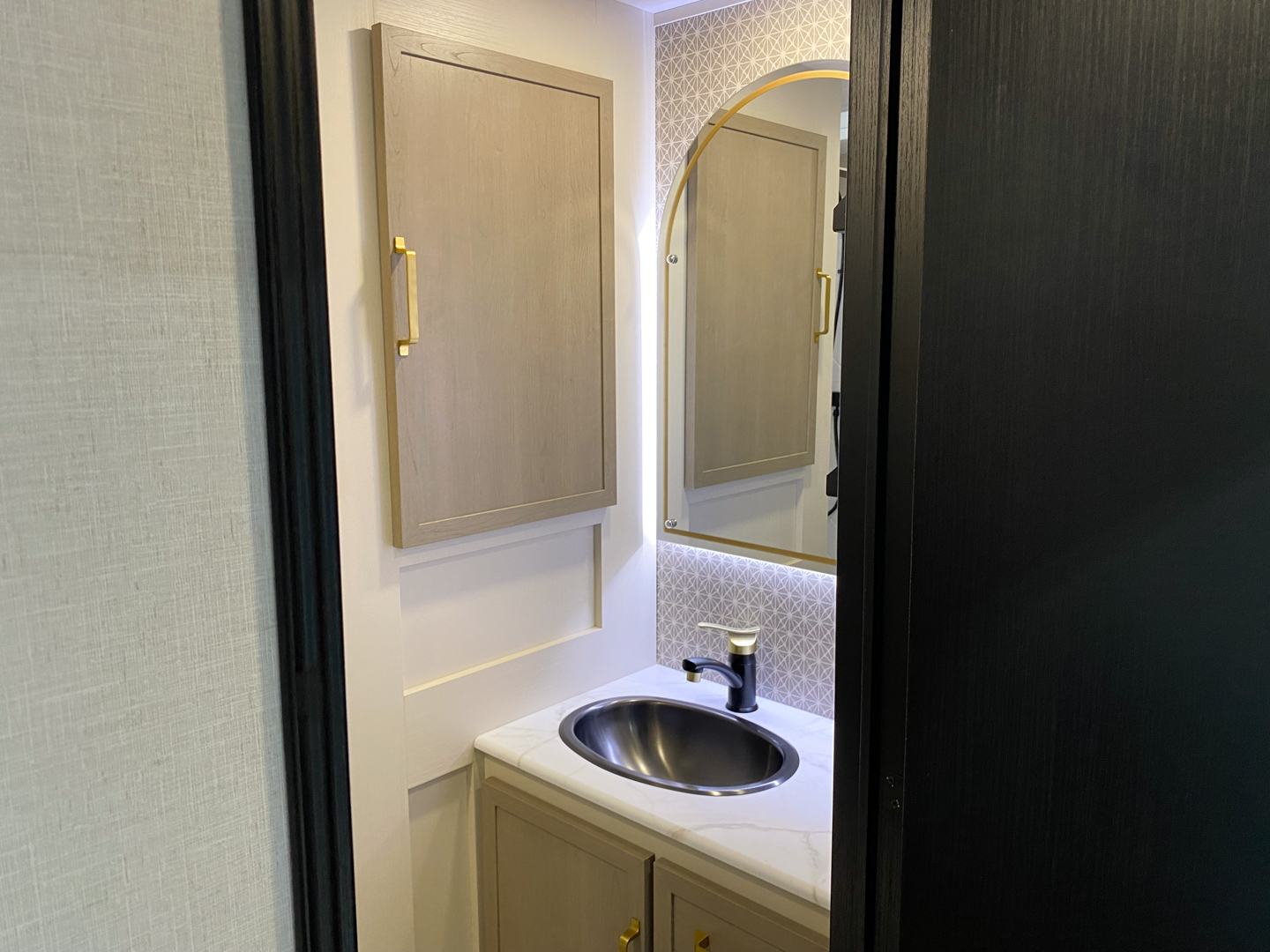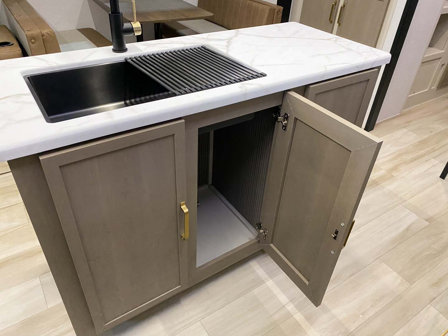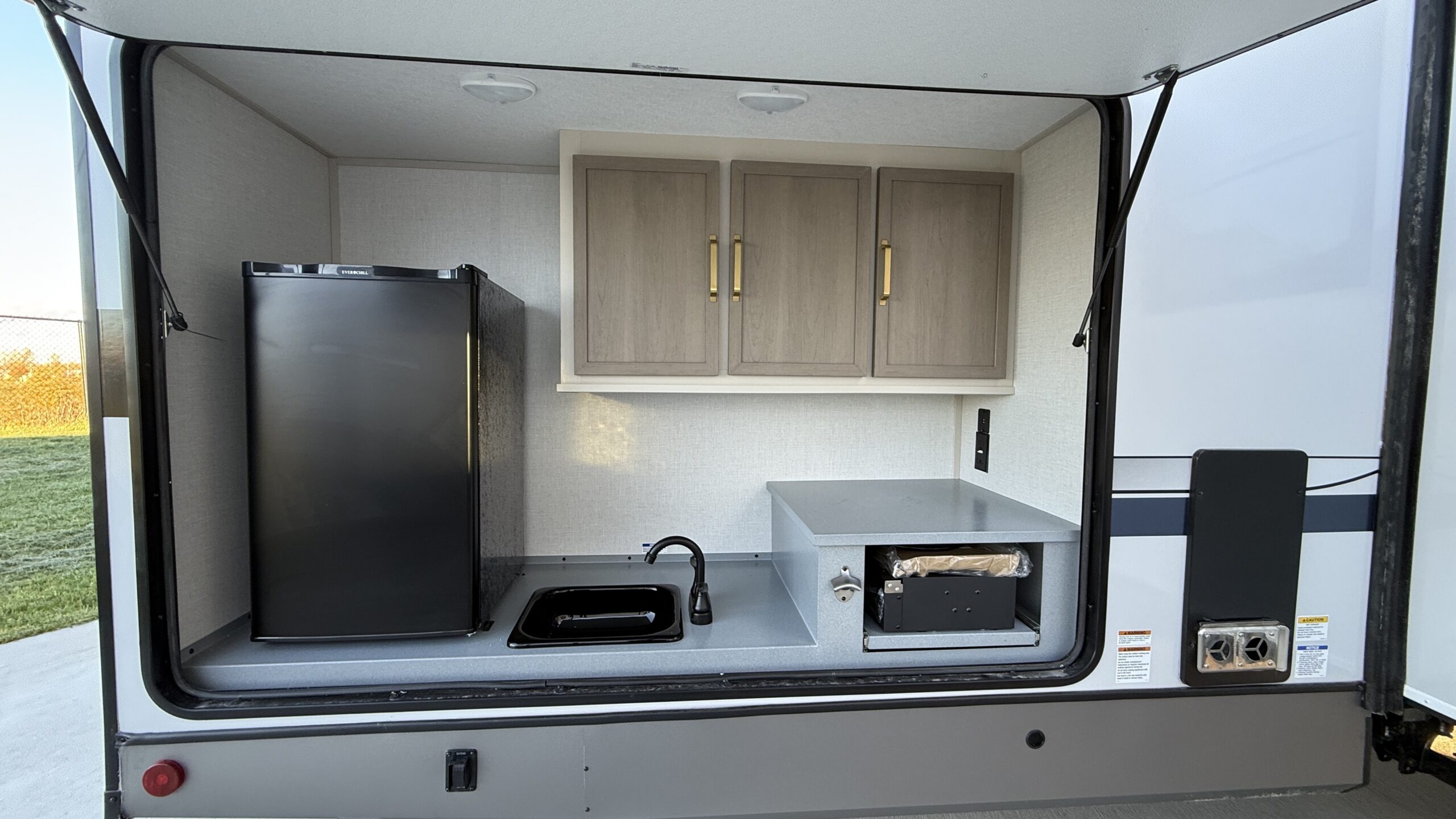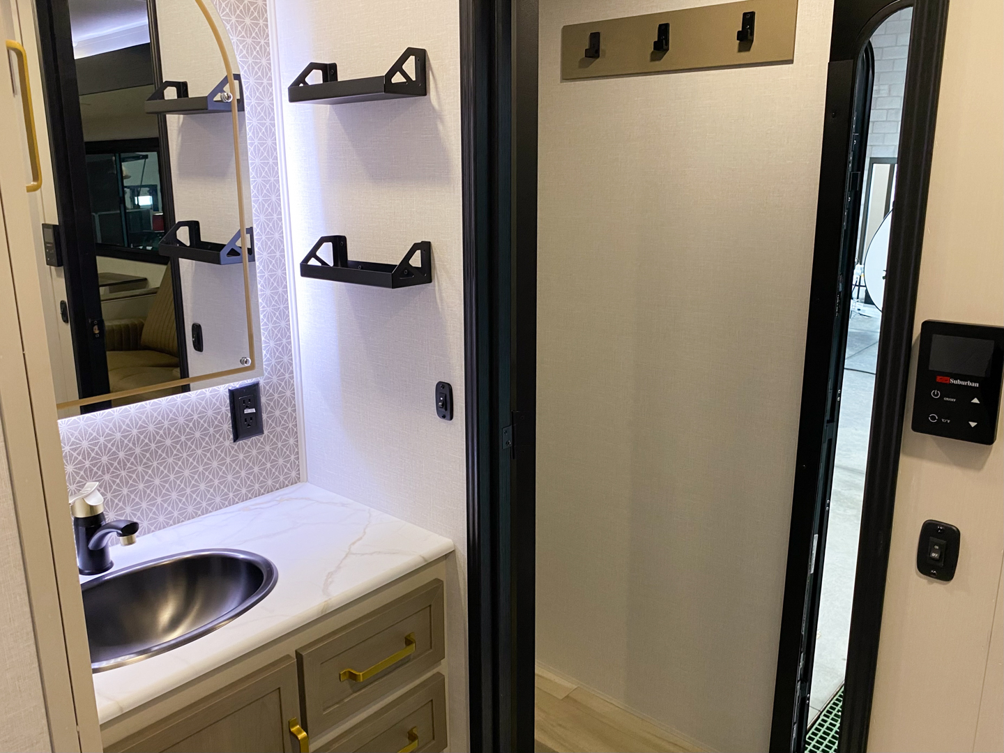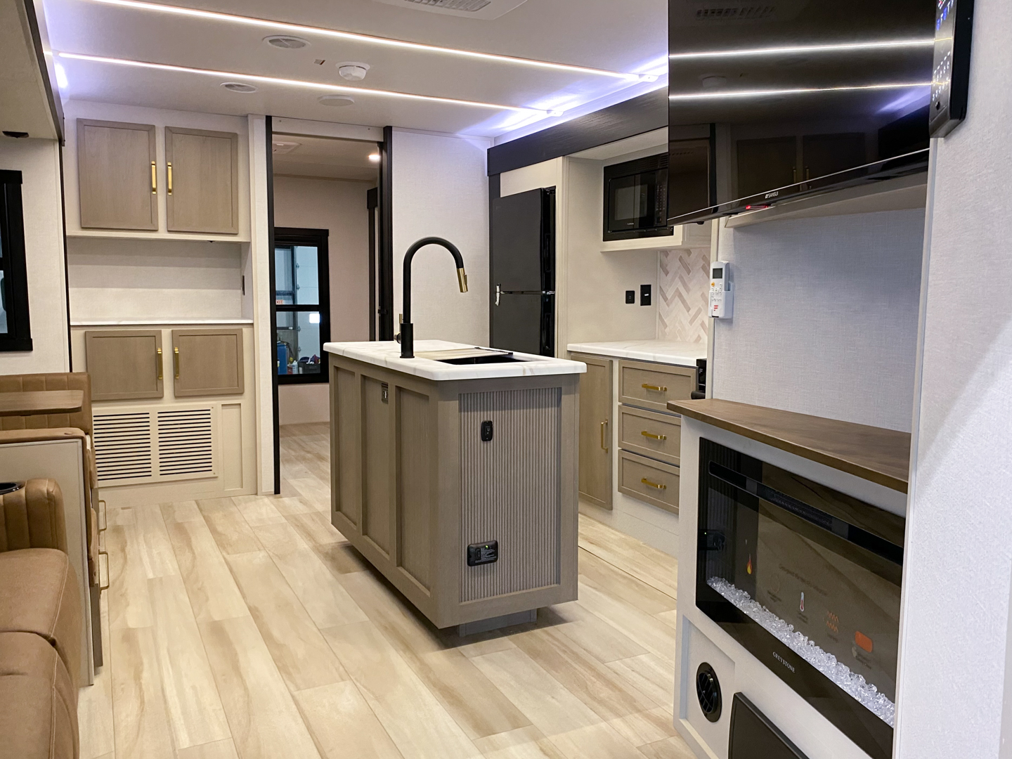 Camping with your family shouldn’t require you to sacrifice your living space. With the 310BHI, you don’t have to. This floorplan offers a MASSIVE outside kitchen, direct viewing of your campsite, a standard 50″ TV, and a pantry most houses would dream of. If that wasn’t enough, the 310BHI comes standard with stackable washer/dryer prep thoughtfully located in the bedroom closet/wardrobe.
