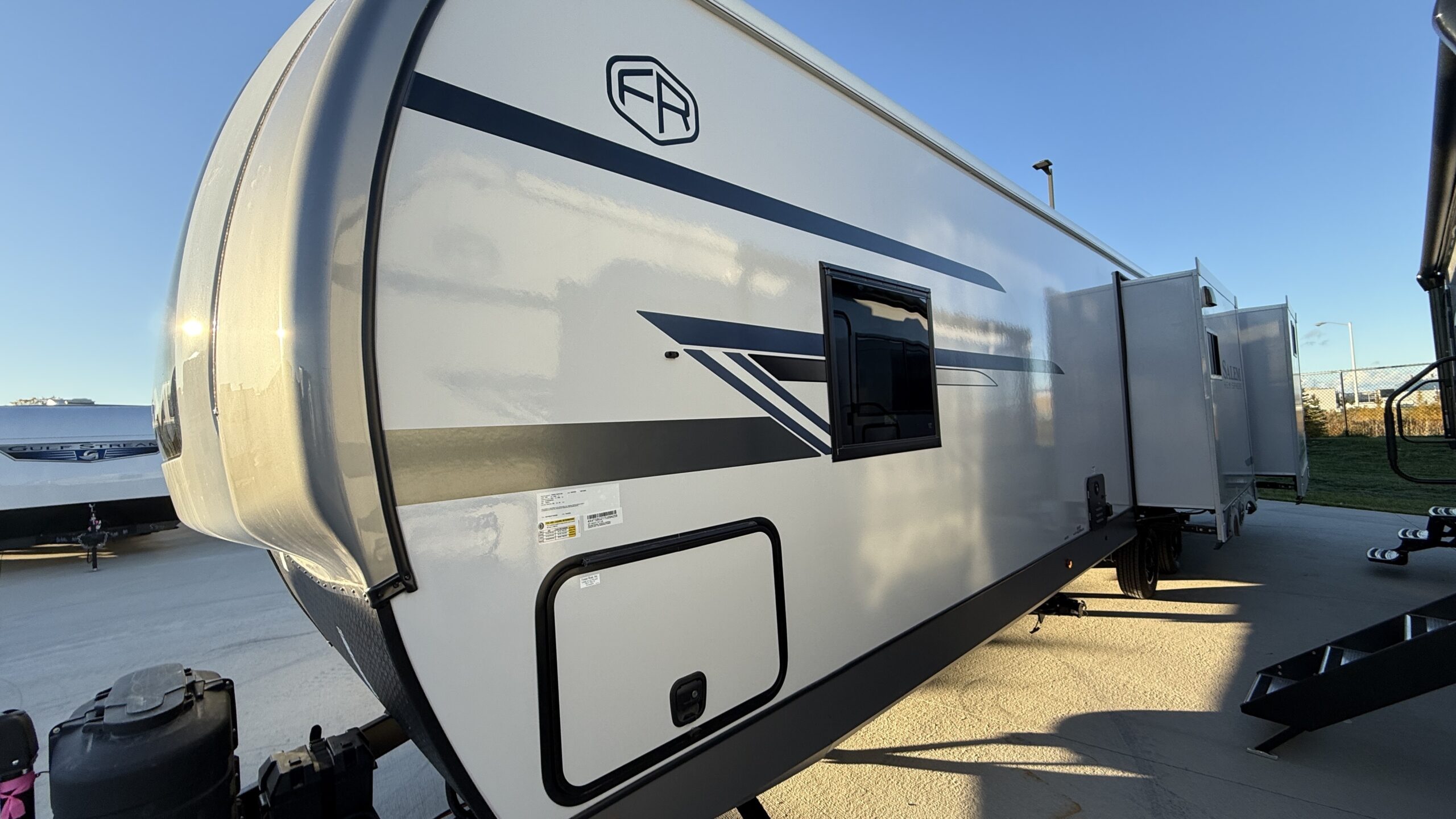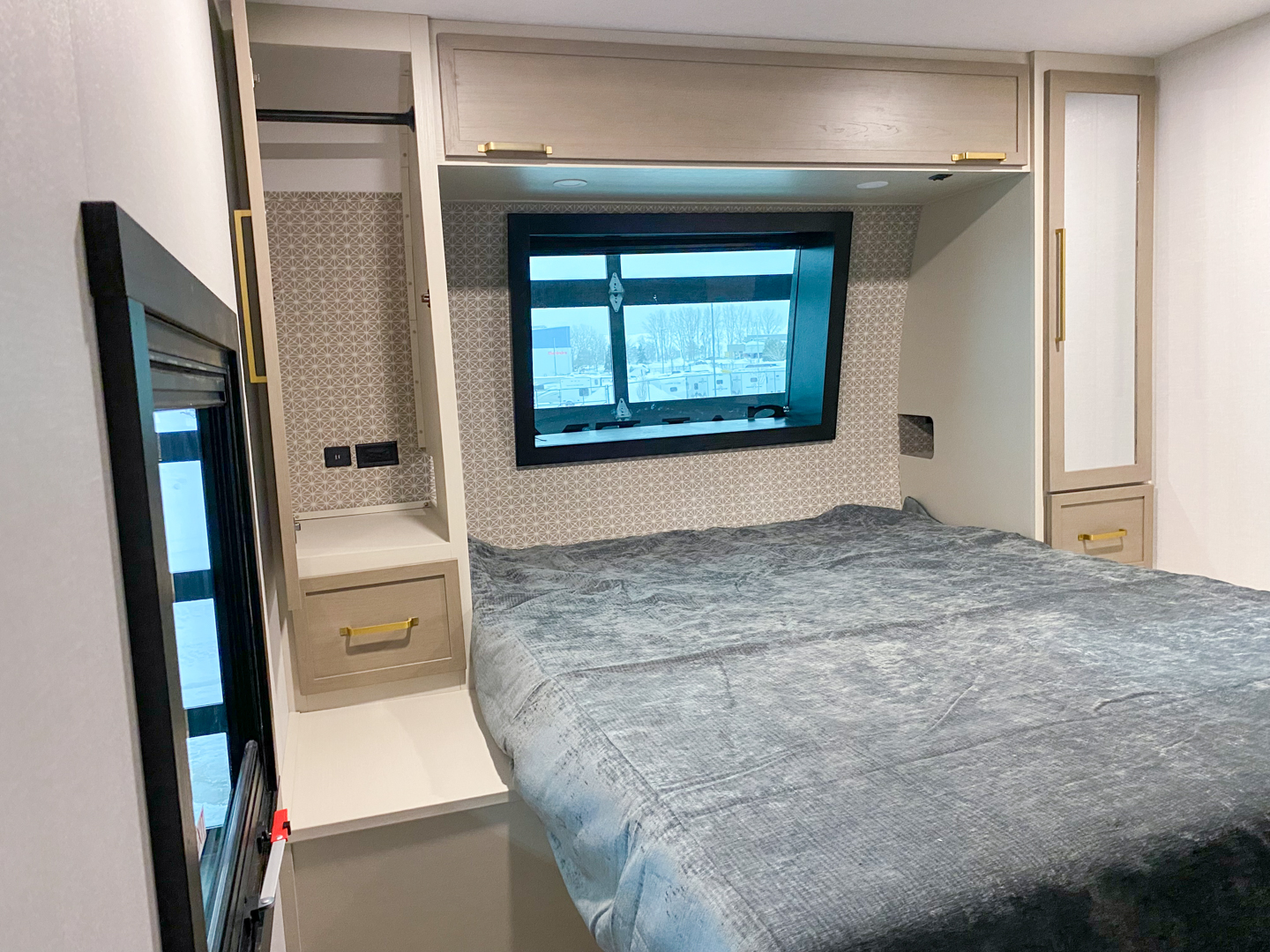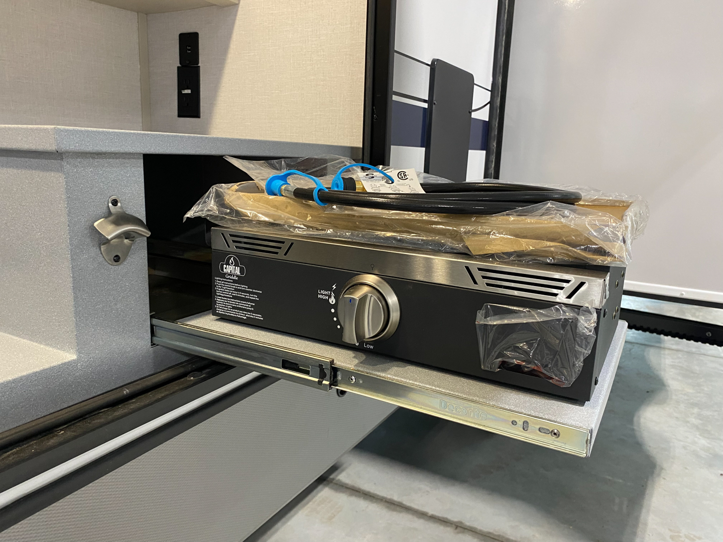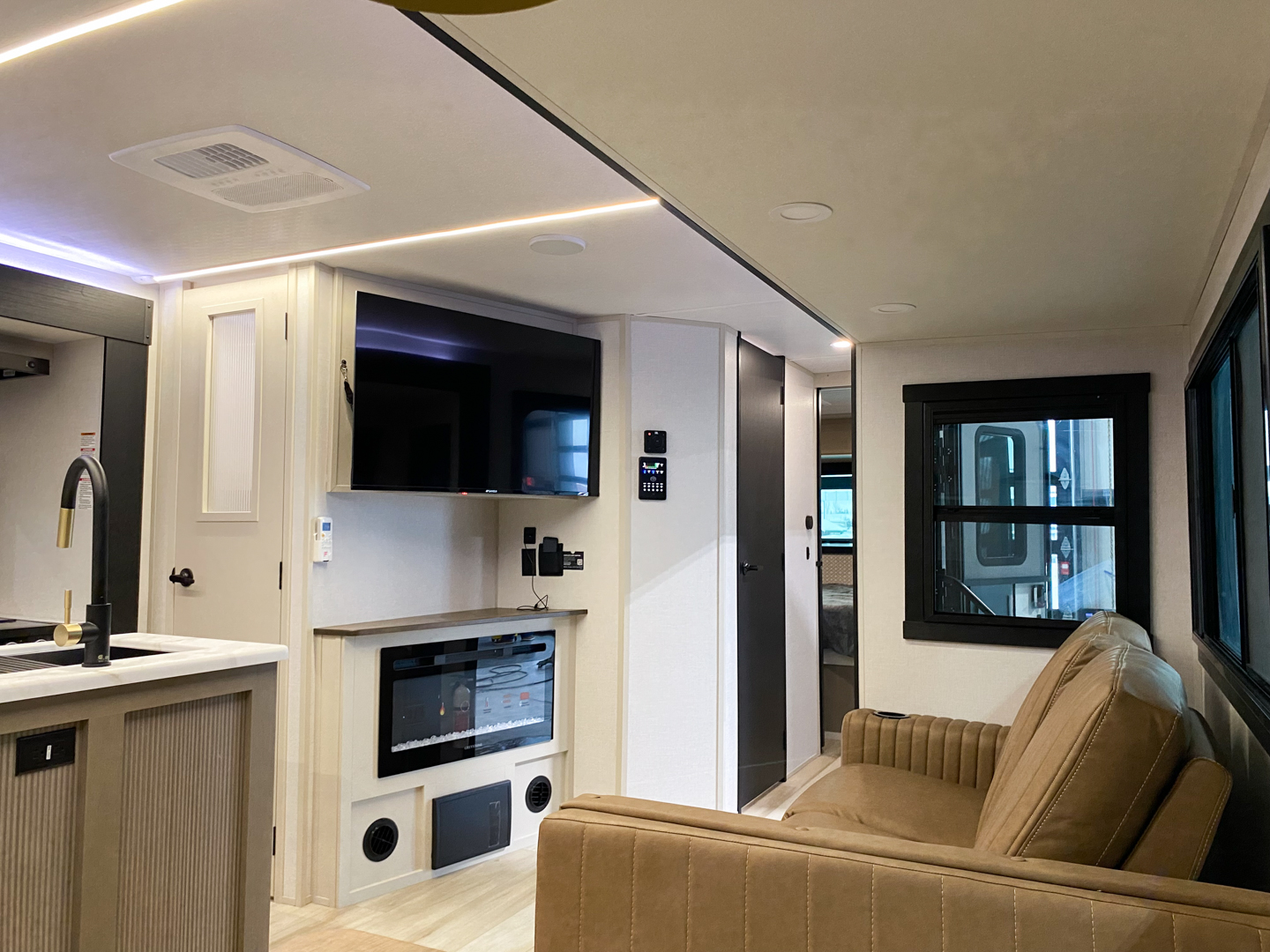 Camping with your family shouldn’t require you to sacrifice your living space. With the 310BHI, you don’t have to. This floorplan offers a MASSIVE outside kitchen, direct viewing of your campsite, a standard 50″ TV, and a pantry most houses would dream of. If that wasn’t enough, the 310BHI comes standard with stackable washer/dryer prep thoughtfully located in the bedroom closet/wardrobe.