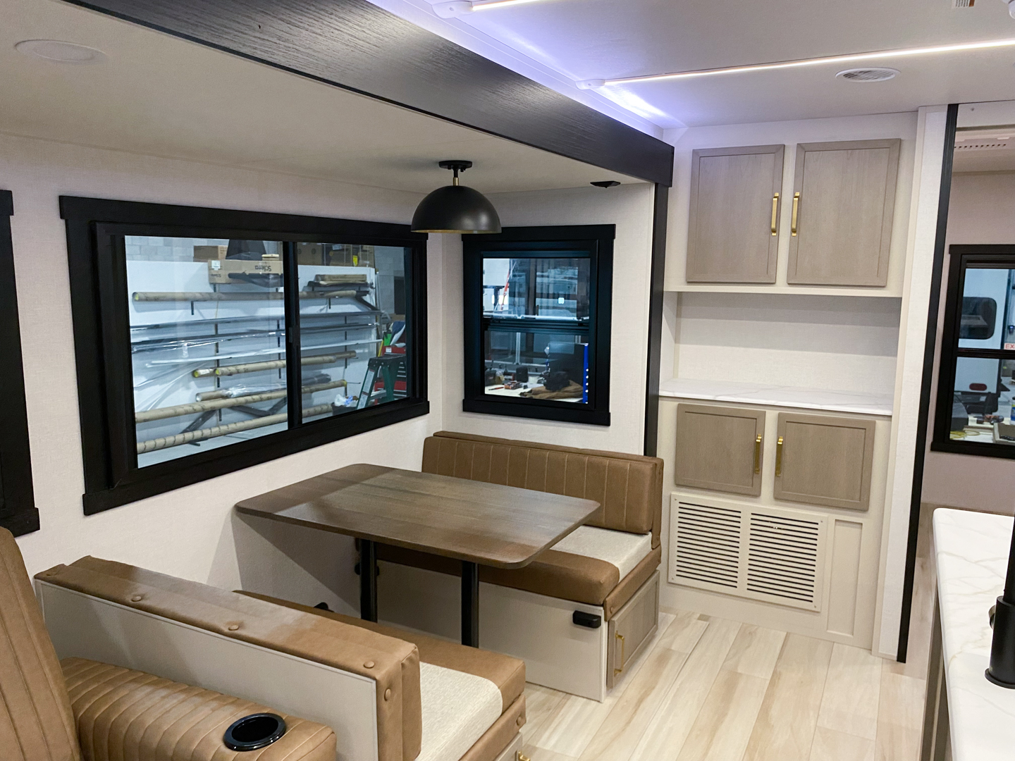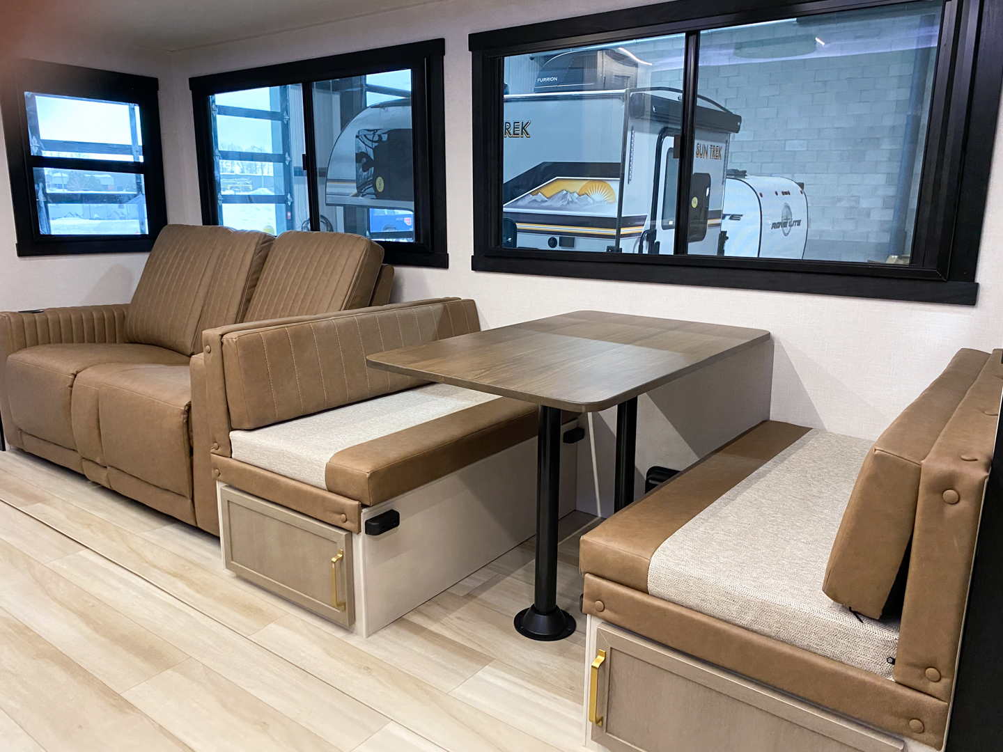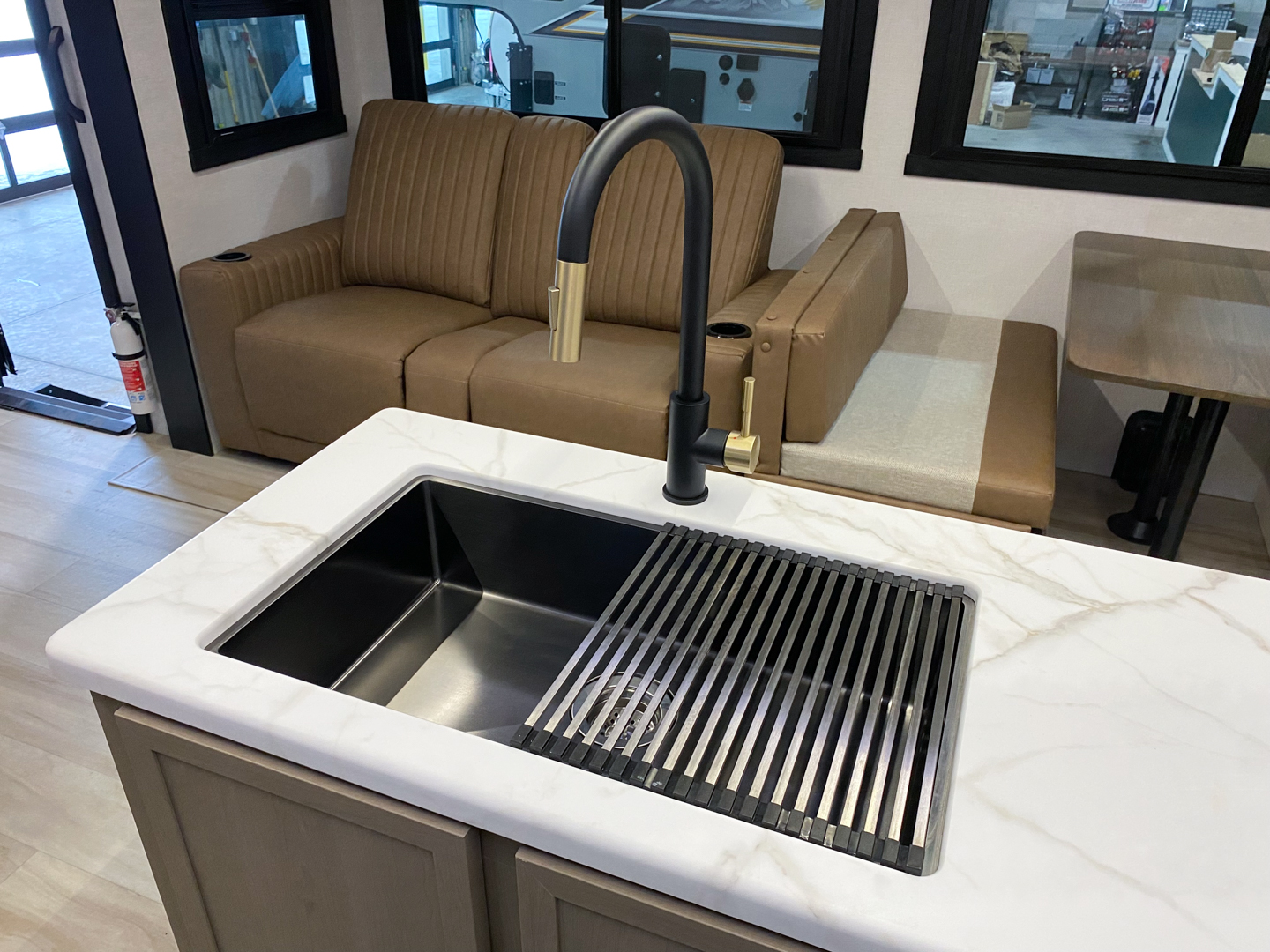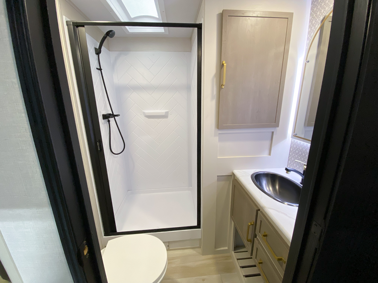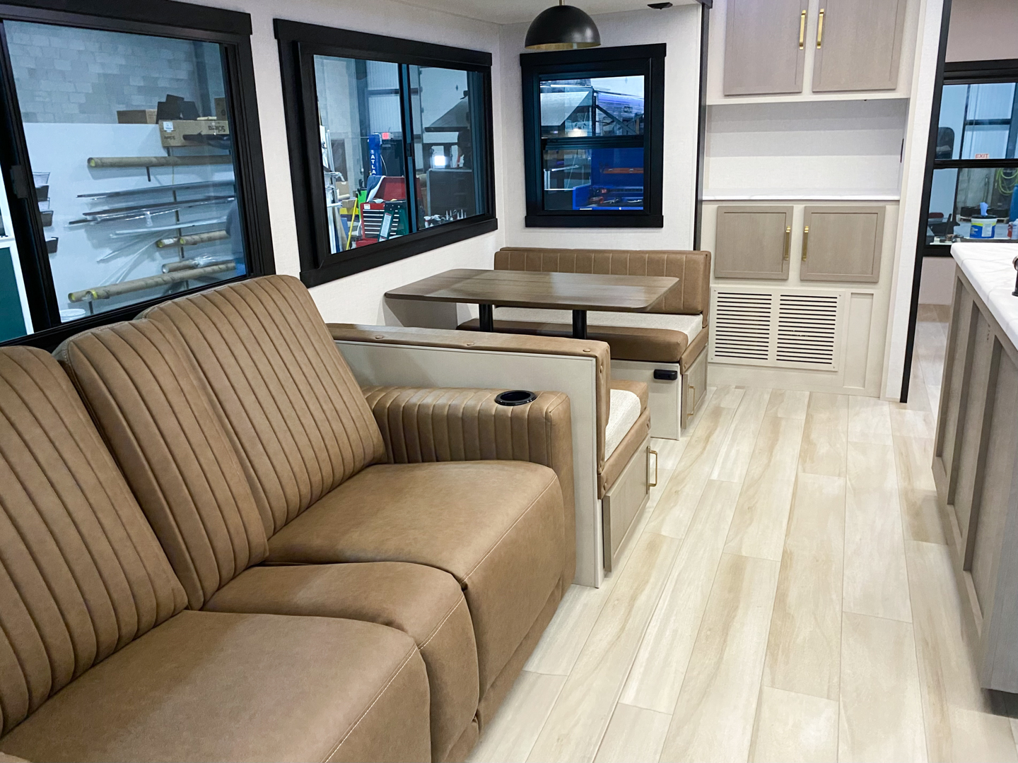 Camping with your family shouldn’t require you to sacrifice your living space. With the 310BHI, you don’t have to. This floorplan offers a MASSIVE outside kitchen, direct viewing of your campsite, a standard 50″ TV, and a pantry most houses would dream of. If that wasn’t enough, the 310BHI comes standard with stackable washer/dryer prep thoughtfully located in the bedroom closet/wardrobe.