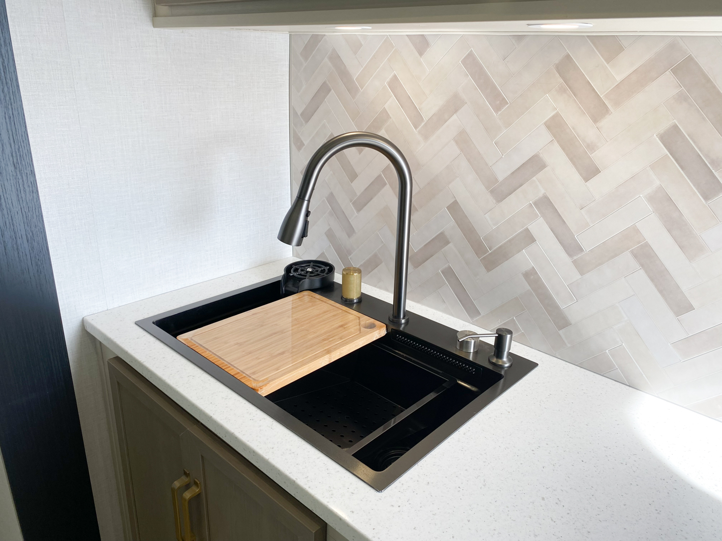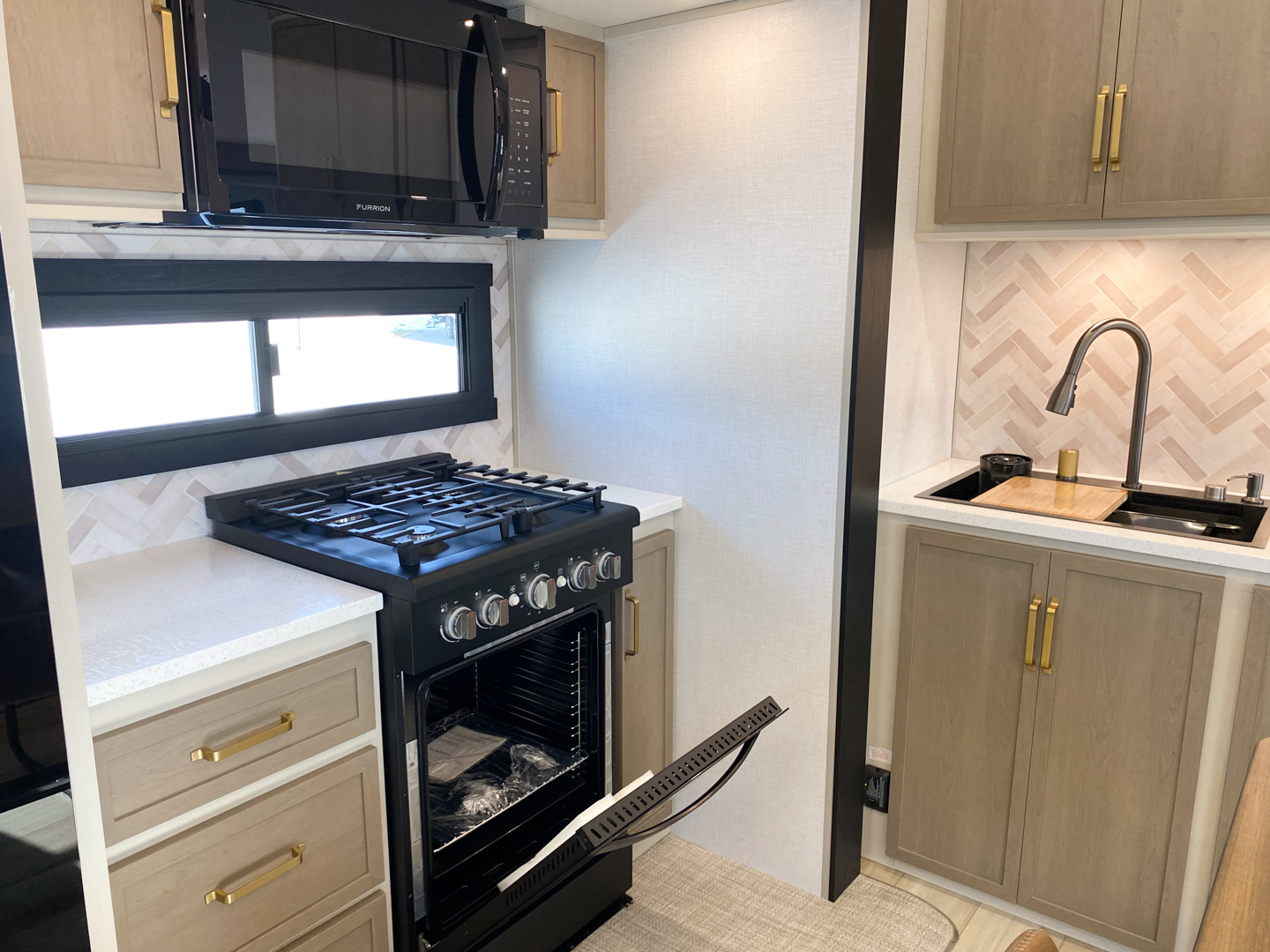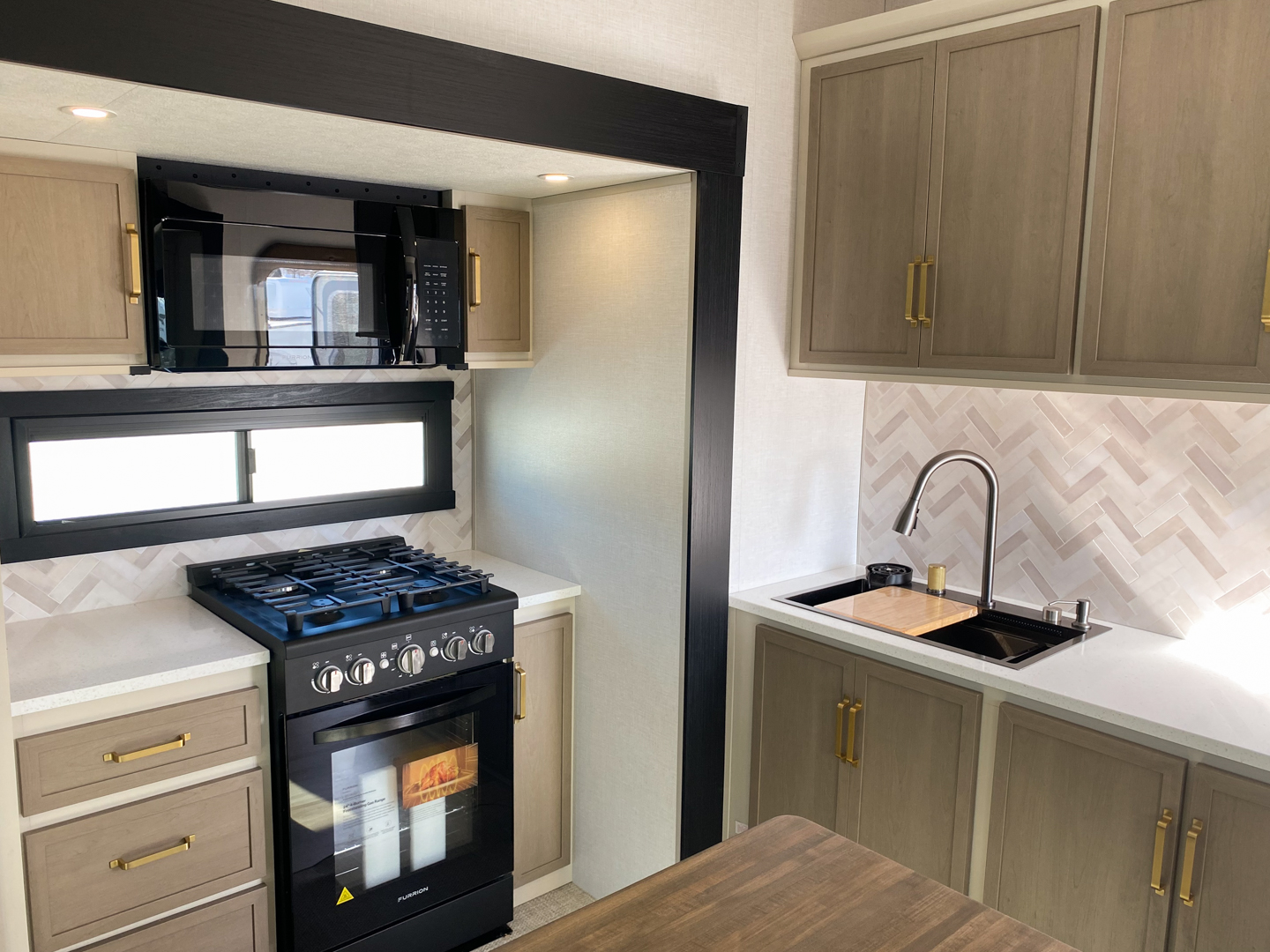 - Temple Cherry Cabinetry with Matte Gold Hardware
