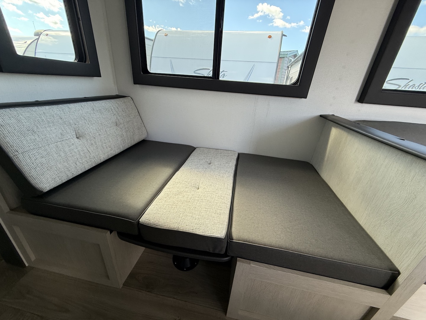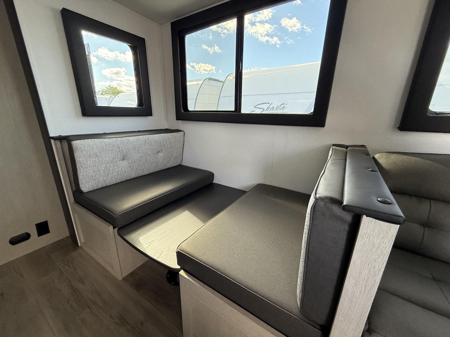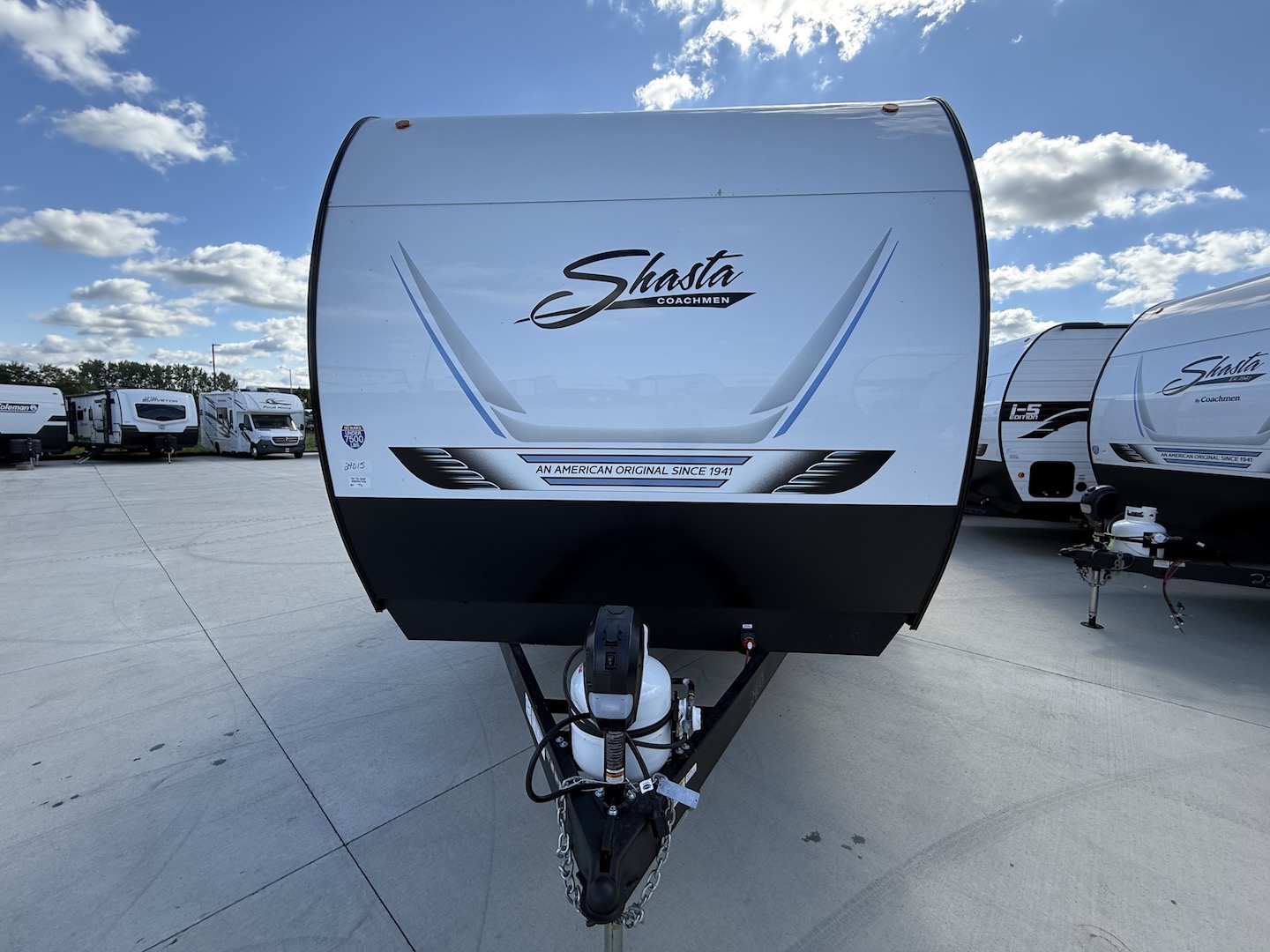 Shasta offers a wide variety of quality affordable lighter weight floorplans that are packed with convenience and value. Designed for couples and families to get away from it all and enjoy some well-deserved rest and relaxation. Shasta has been providing memories to campers for generations. Our well laid out interiors are bright and airy with modern woodgrain cabinetry, LED interior lights and residential styling countertops. You will absolutely love the large stainless steel residential refrigerator. You may want to add the optional free standing dinette with 4 chairs or LED fireplace to spark up your interior.