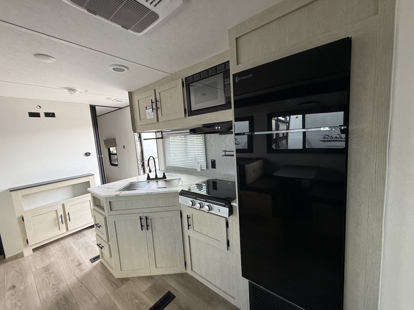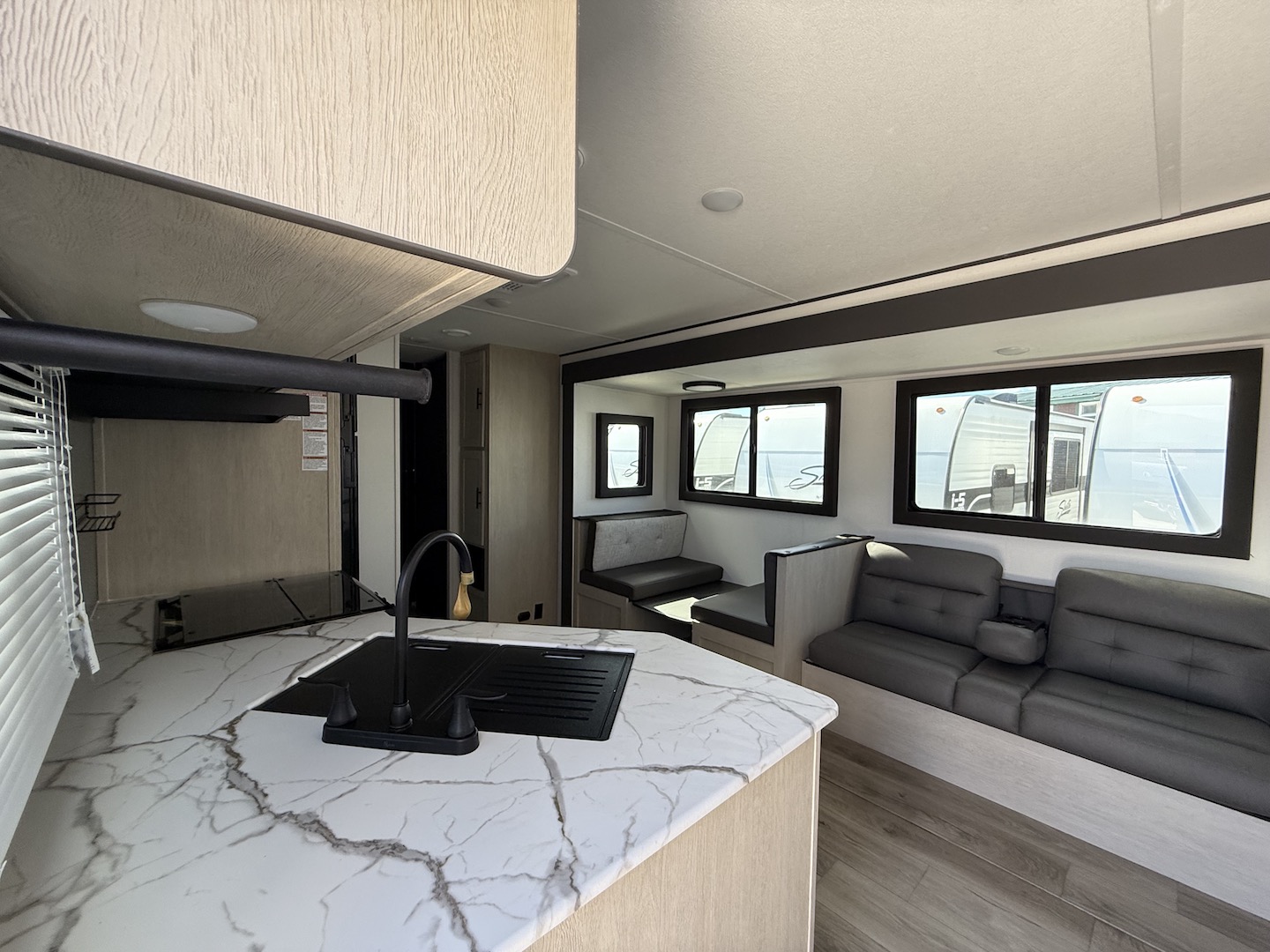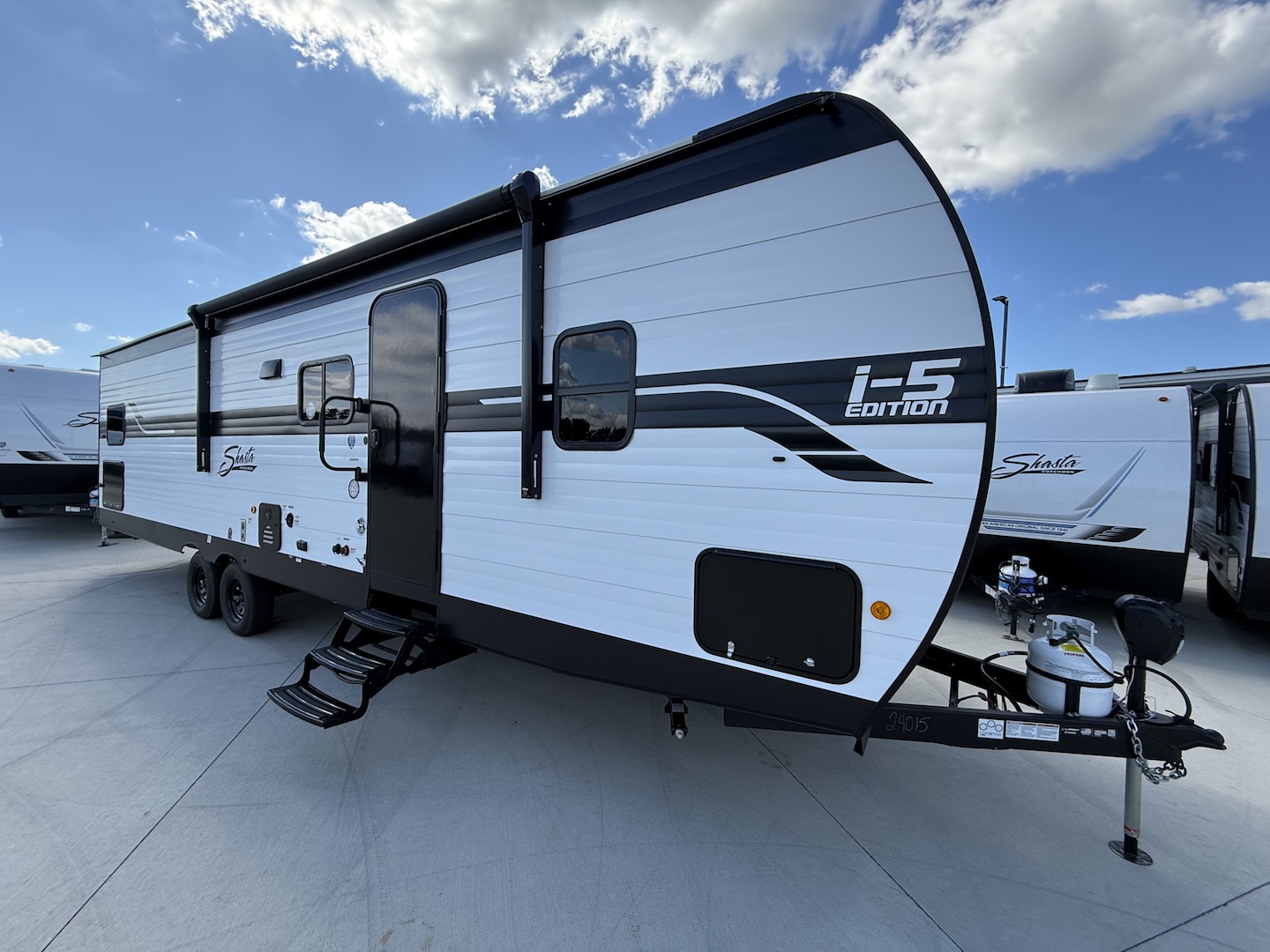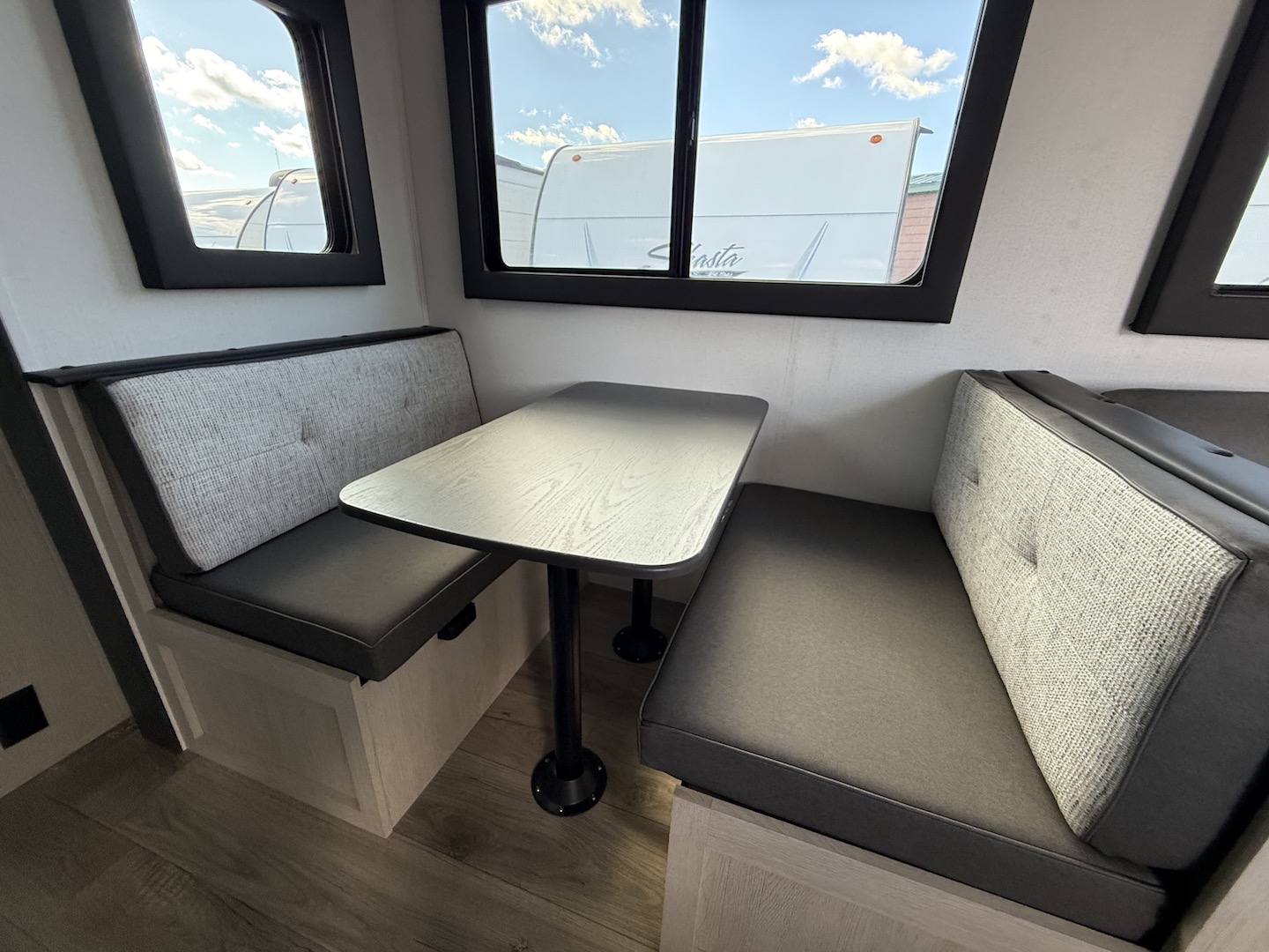 Shasta offers a wide variety of quality affordable lighter weight floorplans that are packed with convenience and value. Designed for couples and families to get away from it all and enjoy some well-deserved rest and relaxation. Shasta has been providing memories to campers for generations. Our well laid out interiors are bright and airy with modern woodgrain cabinetry, LED interior lights and residential styling countertops. You will absolutely love the large stainless steel residential refrigerator. You may want to add the optional free standing dinette with 4 chairs or LED fireplace to spark up your interior.