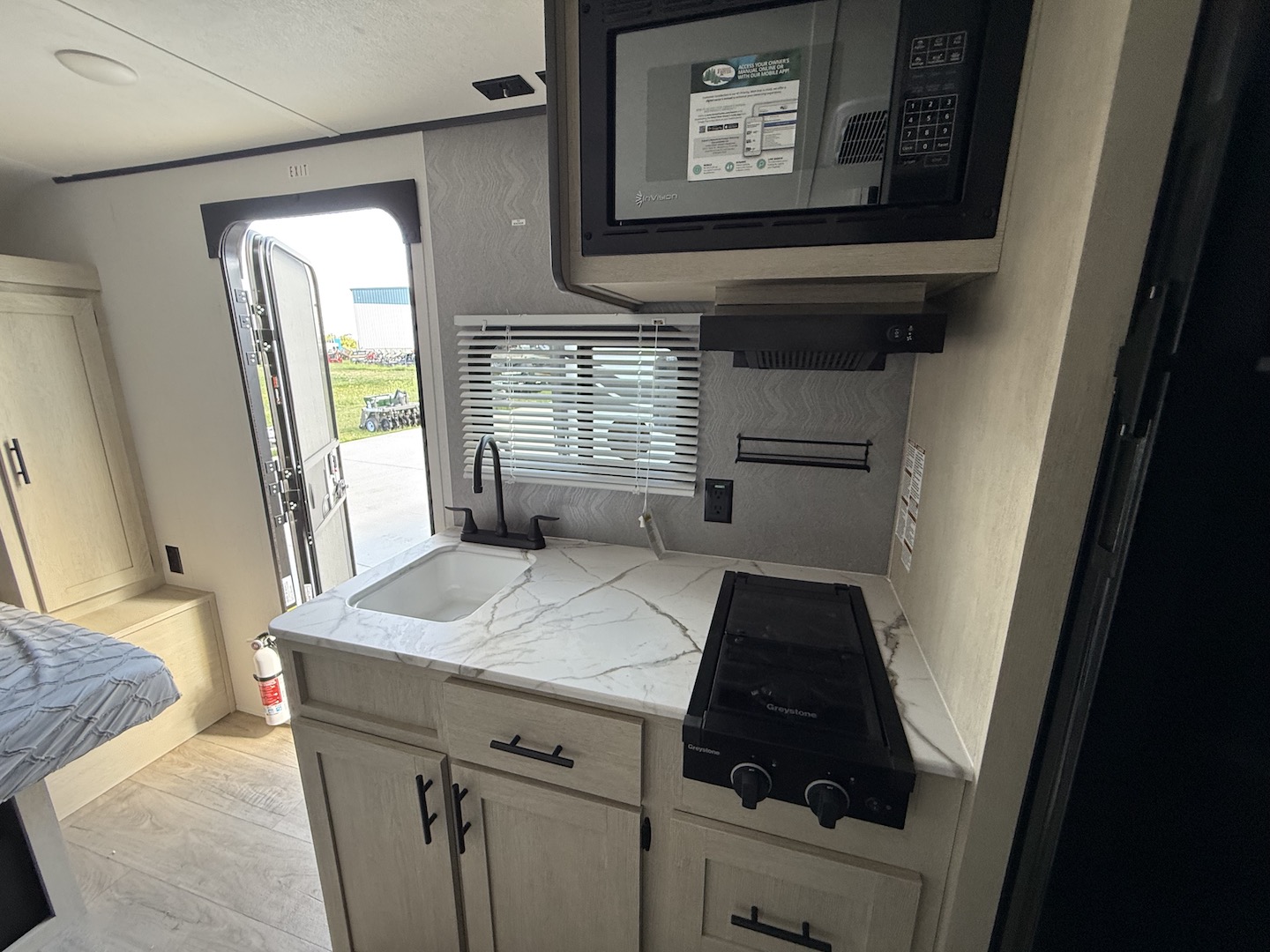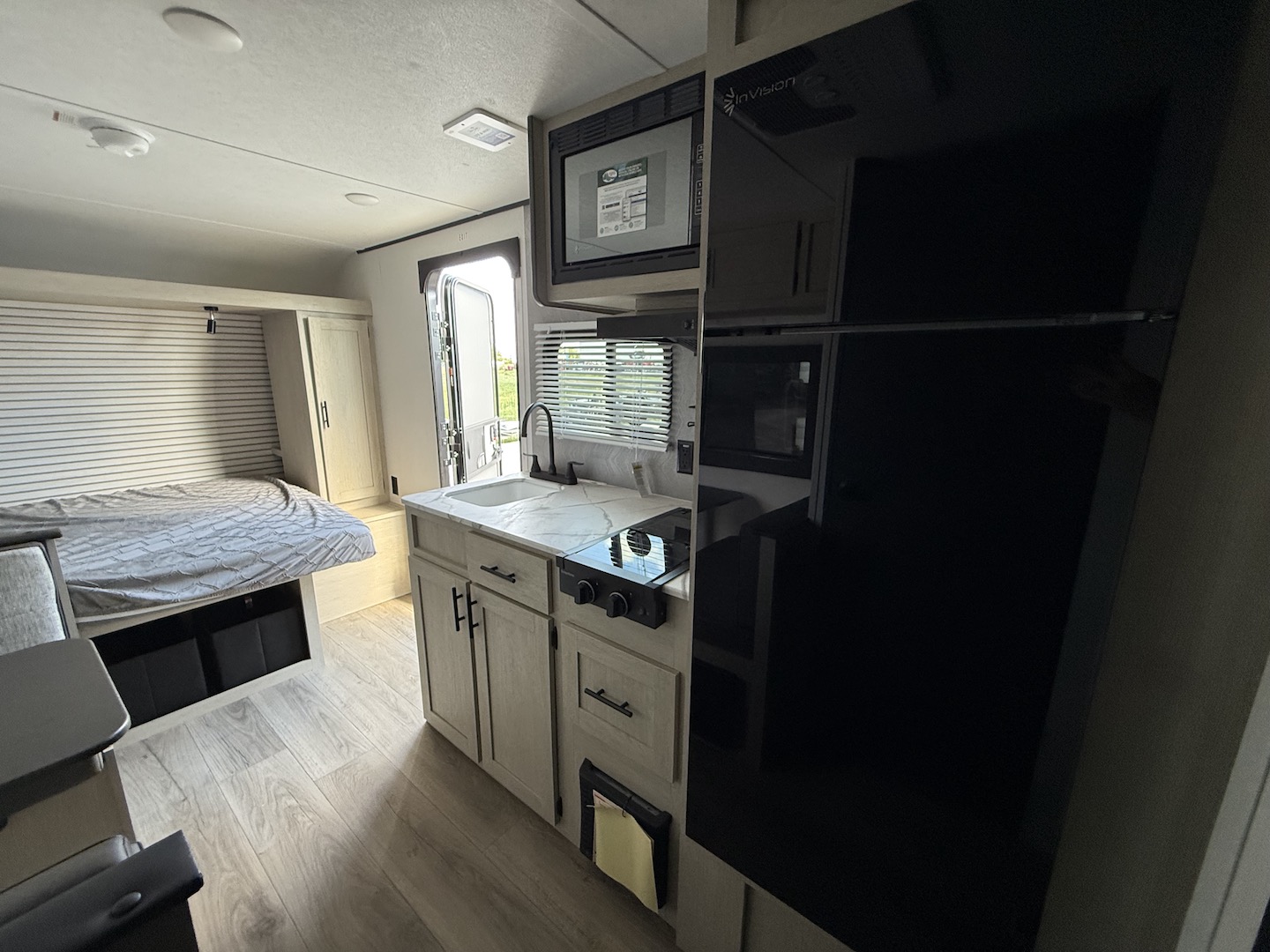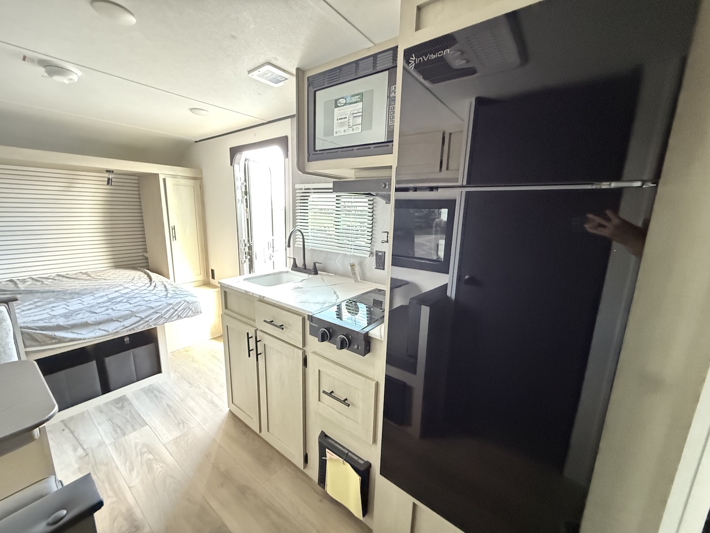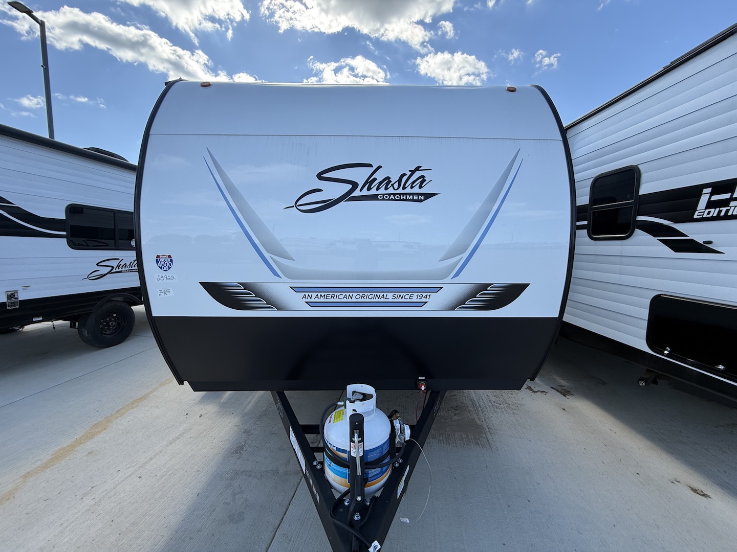 Shasta offers a wide variety of quality affordable lighter weight floorplans that are packed with convenience and value. Designed for couples and families to get away from it all and enjoy some well-deserved rest and relaxation. Shasta has been providing memories to campers for generations. Our well laid out interiors are bright and airy with modern woodgrain cabinetry, LED interior lights and residential styling countertops. You will absolutely love the large stainless steel residential refrigerator. You may want to add the optional free standing dinette with 4 chairs or LED fireplace to spark up your interior.